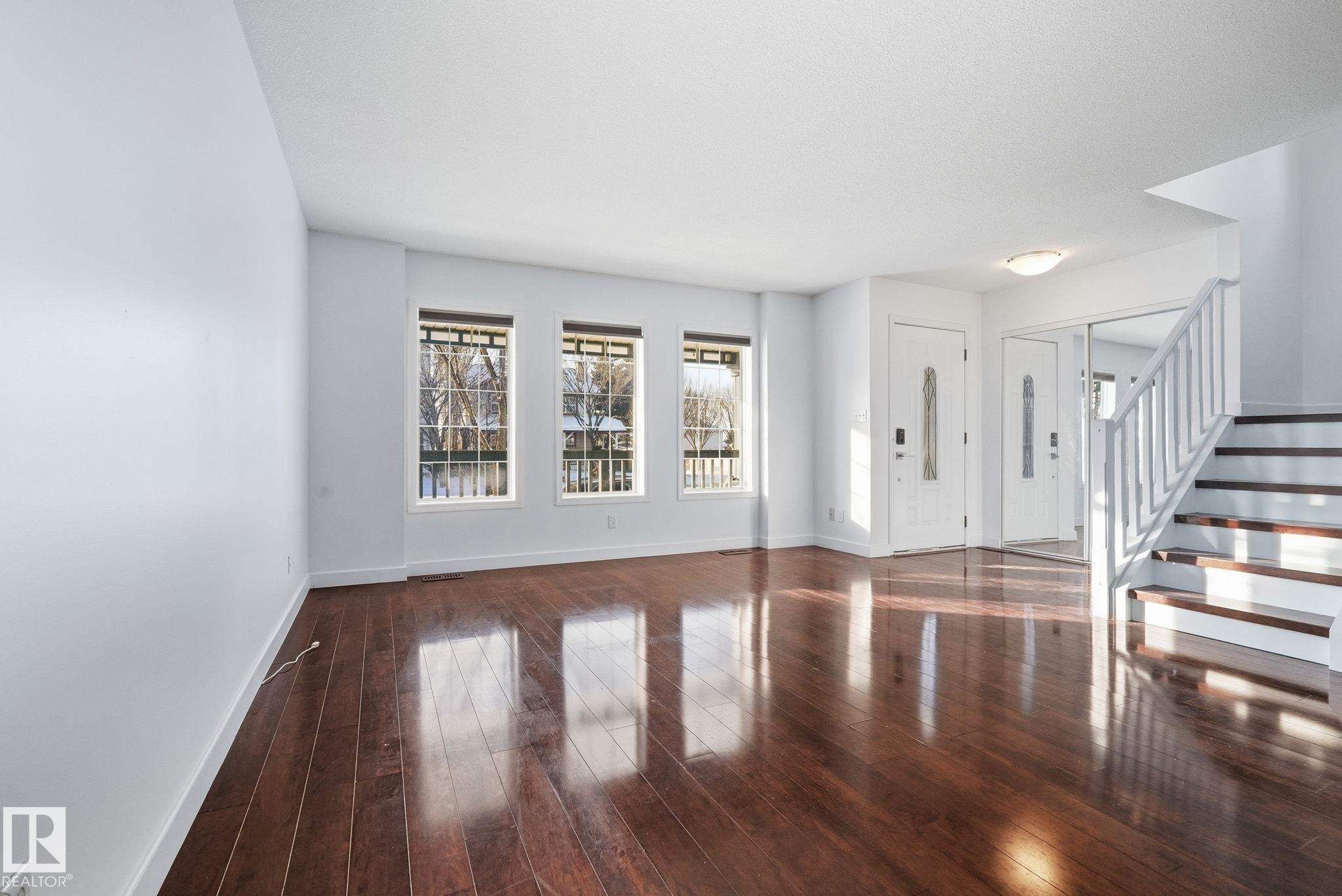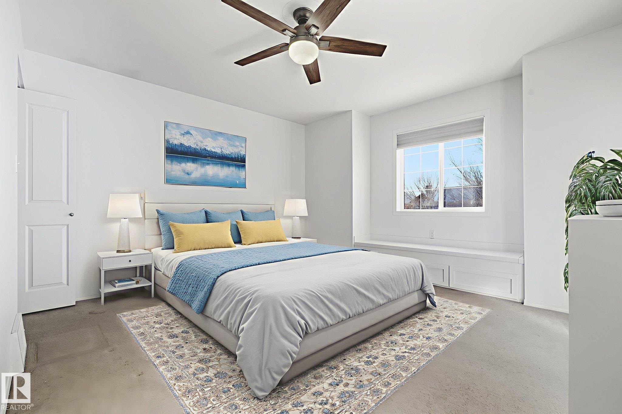 Welcome to this exceptional opportunity in the heart of Terwillegar Towne. This two storey home offers 1,431 sq ft of comfortable living space with 4 bedrooms and 3.5 baths, making it ideal for families, first time buyers, or investors. The main floor features a bright and spacious kitchen with a charming bay window and eating bar, an efficient layout with main floor laundry, a convenient two piece bath, and an open concept living and dining area. Upstairs you will find a generous primary suite complete with a walk in closet and ensuite, along with two additional bedrooms with BRAND NEW carpet. The fully finished basement provides extra living space with a recreation room, a cozy computer nook or den, a fourth bedroom, and another full bath. Outside, the east facing backyard offers a lovely setting for morning sunlight and includes a double detached garage. The home has been freshly painted throughout, making it move in ready. Some photos are virtually staged.