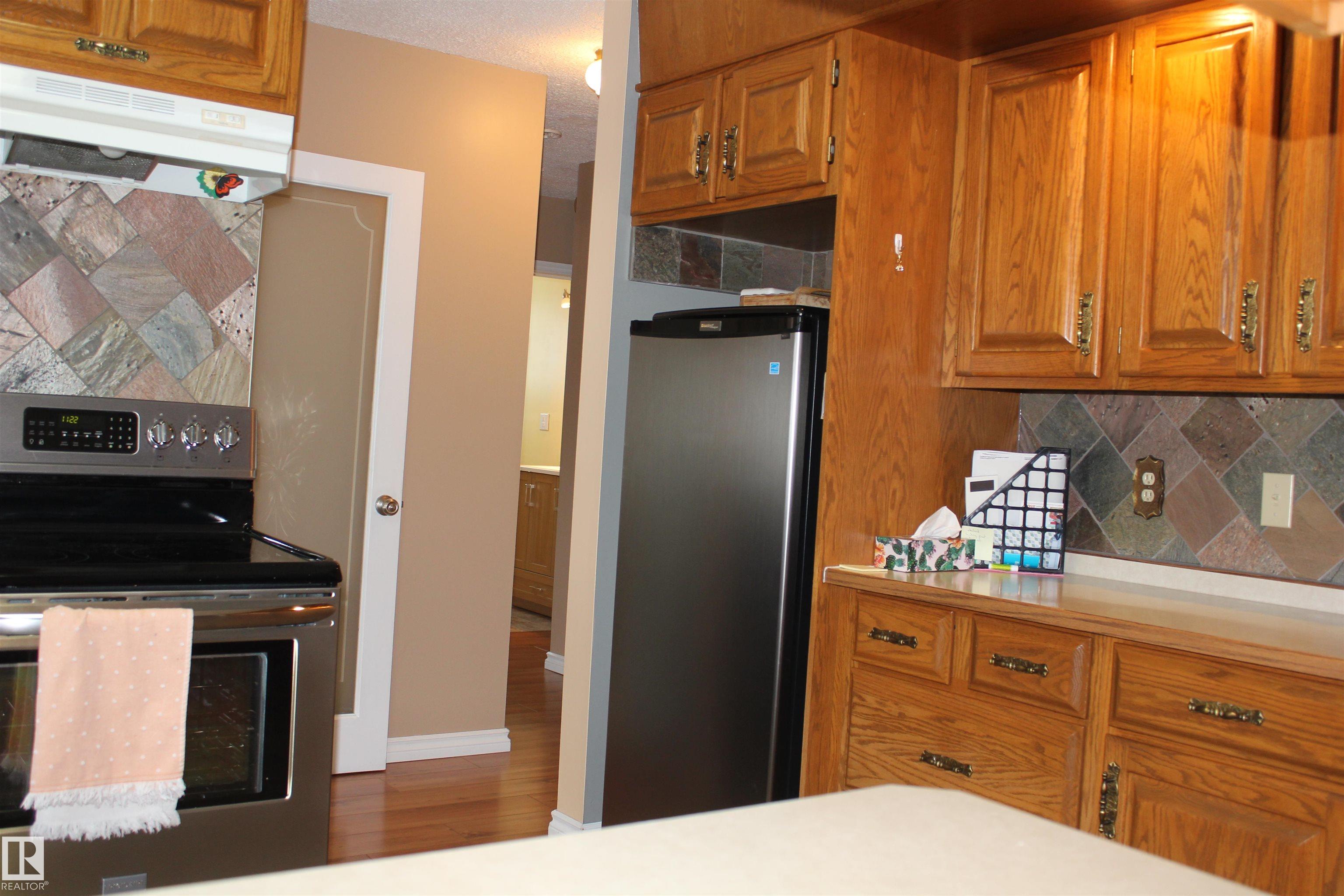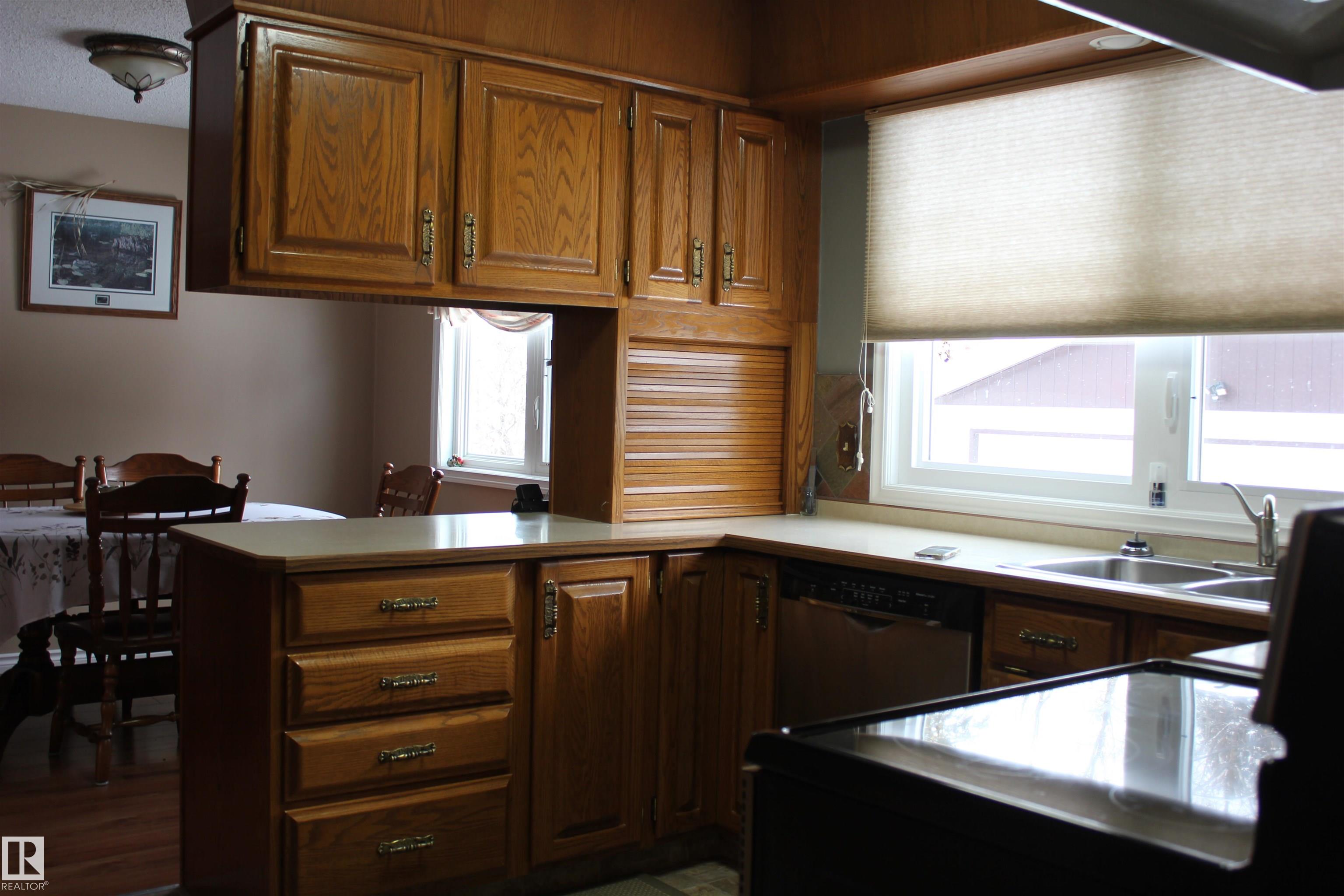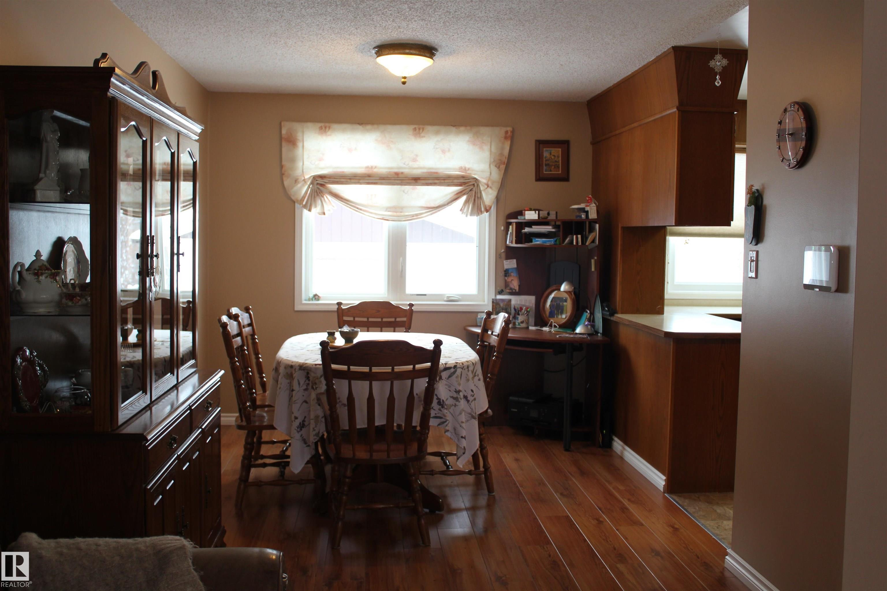 Perfect starter home for a young family or a great home for retirees in Elk Point. This very well maintained bungalow is located in a quiet area near the schools, arena and spray park and very close to the hospital and extended care. Built in 1966 and always looked after - its moved in ready. With 2 good sized bedrooms up and 1 down and 2 bathrooms there's room for everyone. Enjoy the park like view and the garden from the kitchen window or the treed area across the street from the livingroom - you always feel like you are living in peace and quiet. The basement family room is complete with a wood stove and lots of storage and that added little extra - a good sized cold room. The windows are vinyl and the furnace is newer and the HWT was replaced last year. This property is tidy and ready for its new owners. Remaining furniture can be negotiated. Alarm system contract can be transfered. Taxes 2025 2,305.00