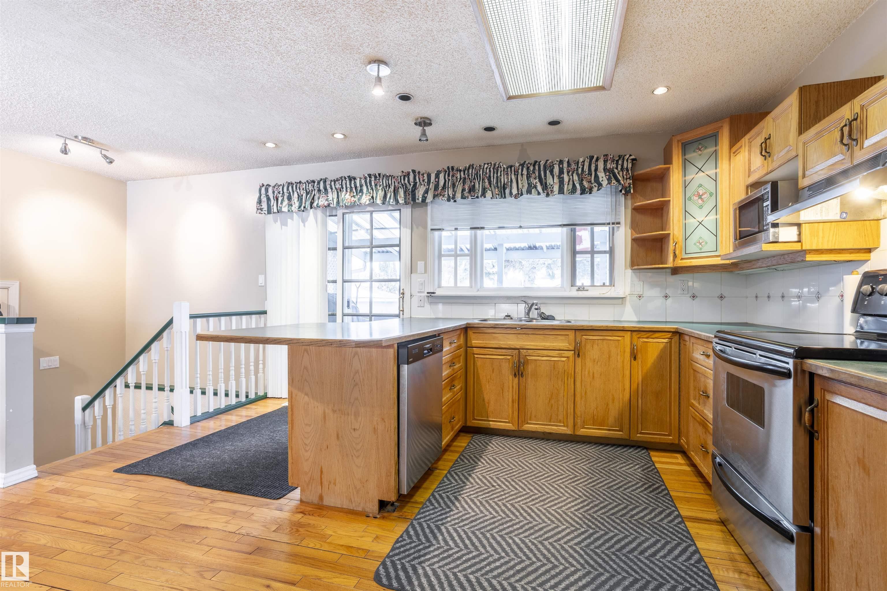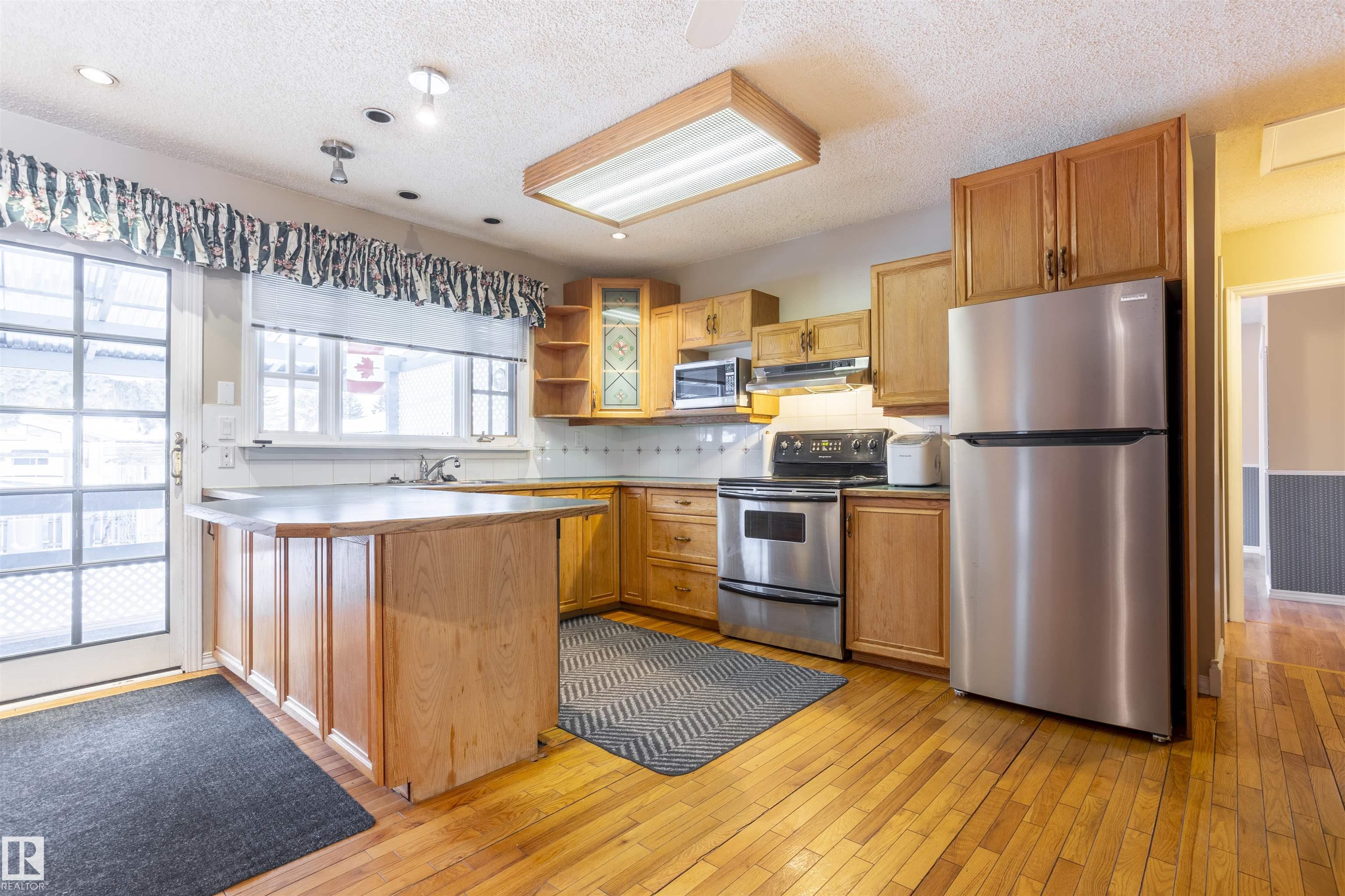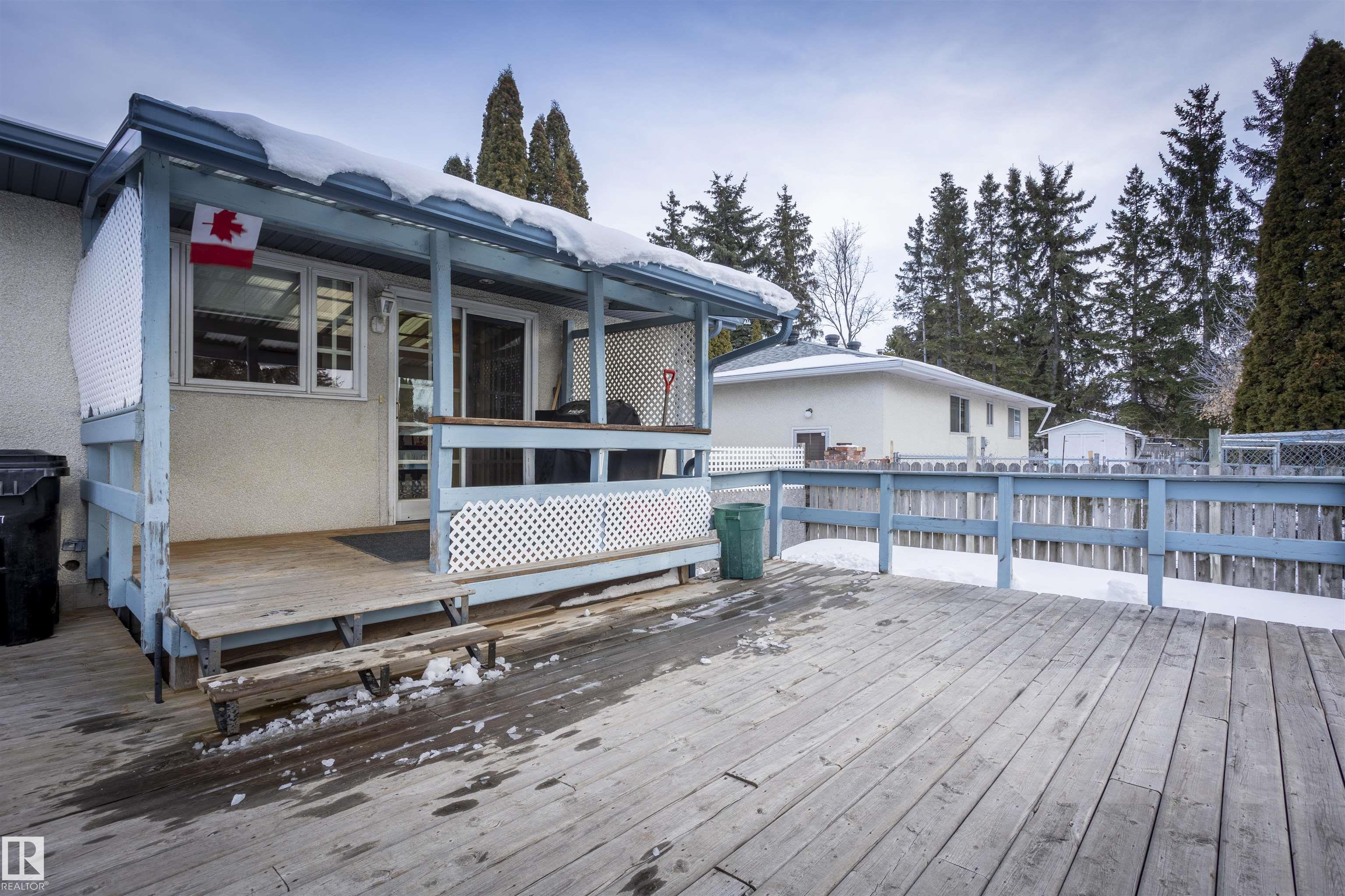 Tired of hunting for a home that fits your vehicles, work trailer, boat, RV, and all the toys, at a price that makes sense? This could be it! Sprawling front driveway off the main road + double car garage + back alley access = endless parking/storage options. Incredibly rare at this price point! Inside, a generous 3-bedroom bungalow awaits: oversized bedrooms, open main floor layout and a large kitchen boasting plenty of storage and countertop space. Basement is partially finished and ready for your personal touches. Backyard entertainer's dream: huge 2-tiered covered deck steps right off the kitchen, with still-plenty of green space despite the parking perks. Quiet location, close to everything Spruce Grove offers. The parking and storage of this property elevates it to Unicorn status and will make someone very happy.