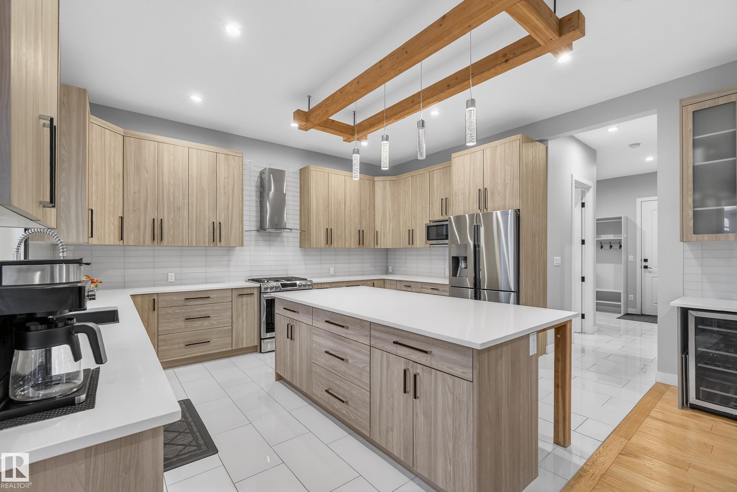 Stunning custom built executive home tucked away on a quiet cul-de-sac in sought-after Kenton Woods. Featuring dramatic open to below ceilings and massive windows, this home is filled with incredible natural light and showcases a beautiful custom Douglas Fir staircase with matching wood accents throughout. The impressive chef?s kitchen offers a massive island, extensive cabinetry, and an ideal layout for entertaining. Upstairs, the primary retreat features a private balcony and a spa-inspired ensuite with infloor heating for year round comfort. Built with quality and efficiency in mind, this home features 2"x6" construction, an ICF foundation, central A/C, and a smart thermostat. The striking exterior combines stucco, cedar, and stone accents with programmable soffit lighting and a beautiful exposed aggregate driveway leading to the oversized heated triple garage. Enjoy the private fully fenced yard with mature trees and a custom-built deck perfect for relaxing or entertaining.