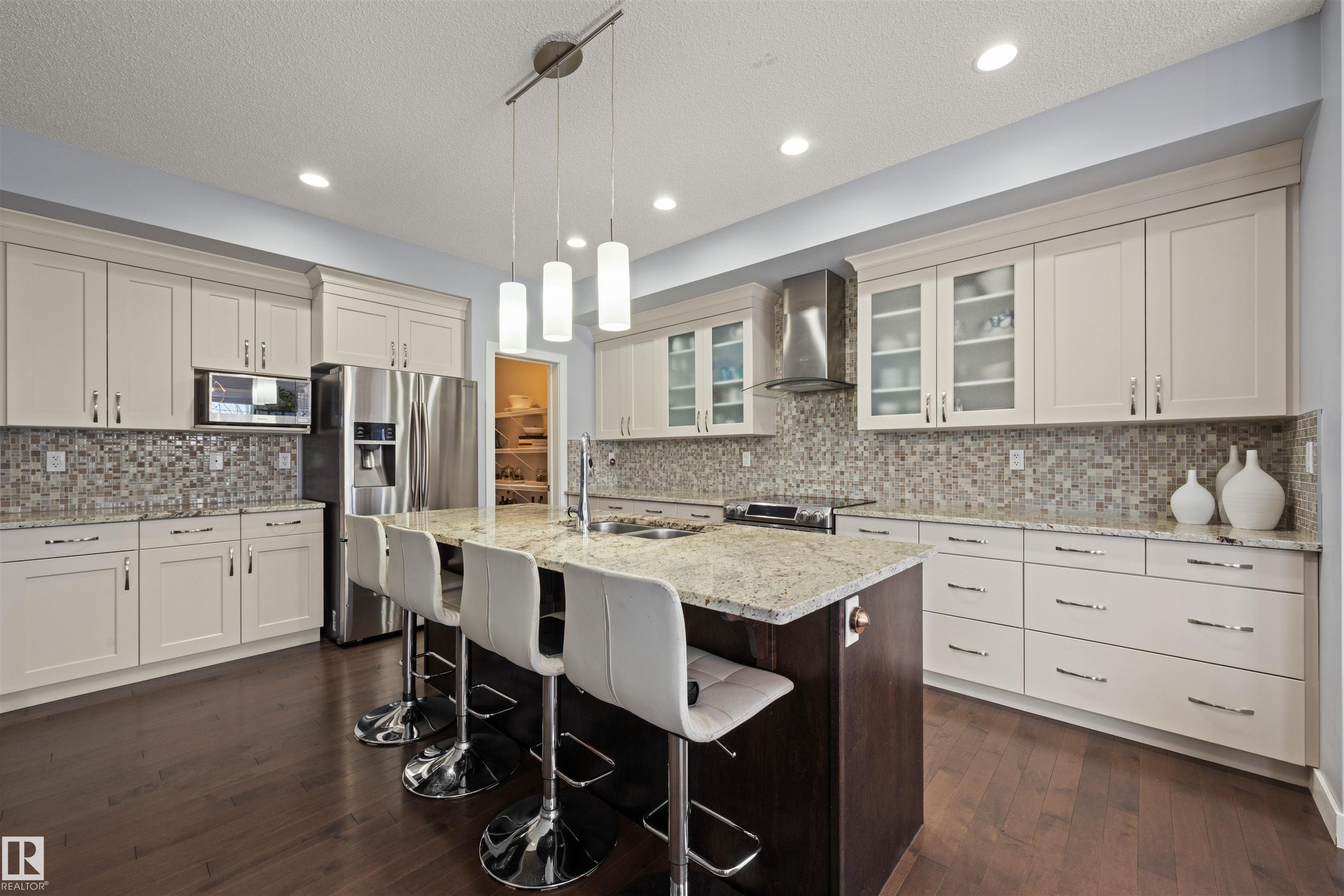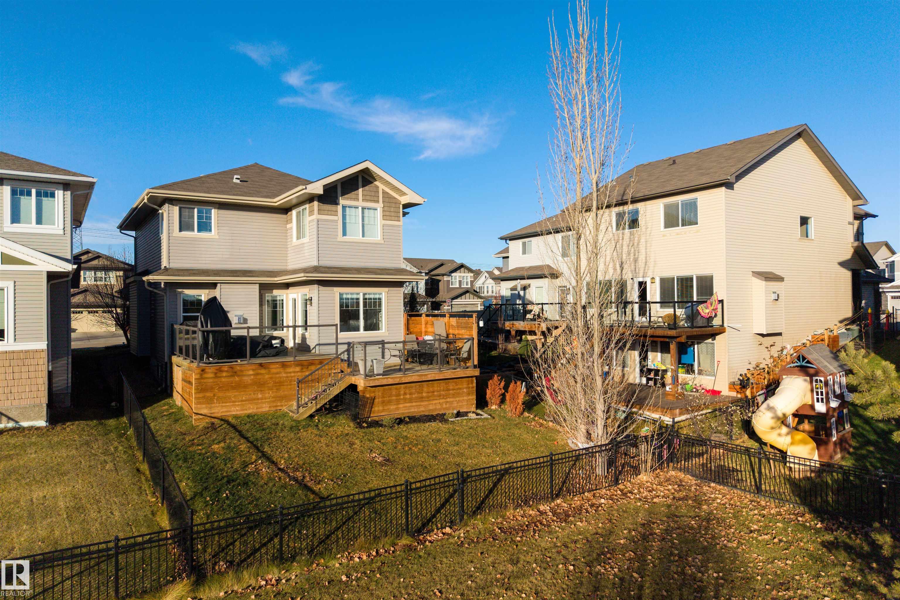 BACKING THE POND IN CHAPPELLE! A rare opportunity to own a true greenspace-backing home with no rear neighbors and tranquil water views. The elevated two-tier deck offers a private setting for morning coffee, summer evenings, or entertaining while enjoying the open backdrop and sunrise exposure. Inside, this immaculately maintained home reflects pride of ownership throughout. The open-concept main floor is bright and functional, with the kitchen flowing seamlessly into the dining and living areas to create an inviting space filled with natural light. Upstairs, the spacious primary suite features desirable east exposure and a versatile flex nook ideal for reading, working from home, or fitness. A cozy bonus room, two additional bedrooms, and a full bath complete the upper level. The unspoiled basement provides outstanding potential for future development and awaits your creative vision. Situated on a quiet, walkable street near parks, trails, schools, shopping, and quick access to the Henday. A rare find!