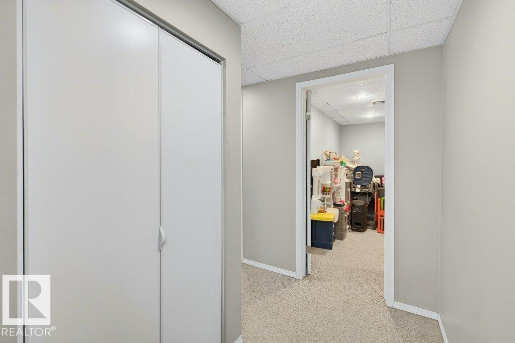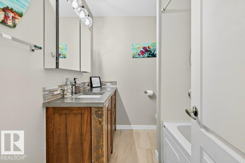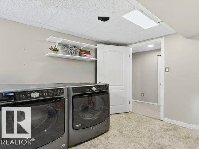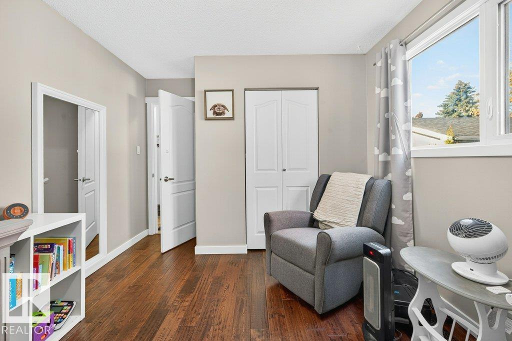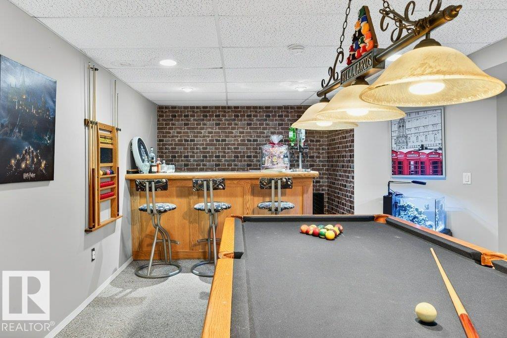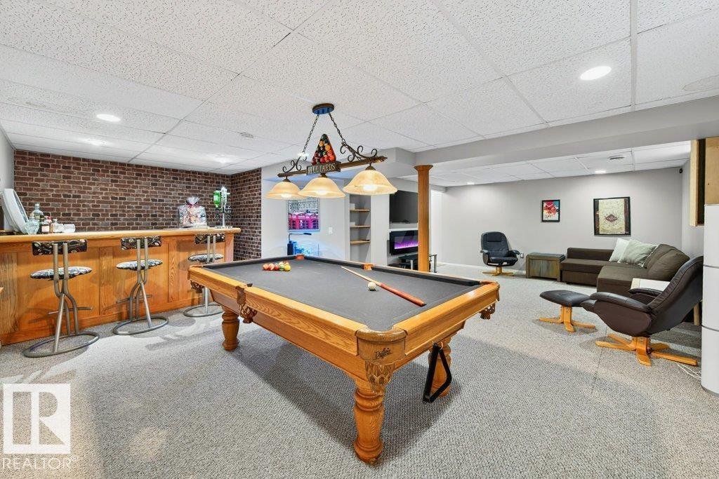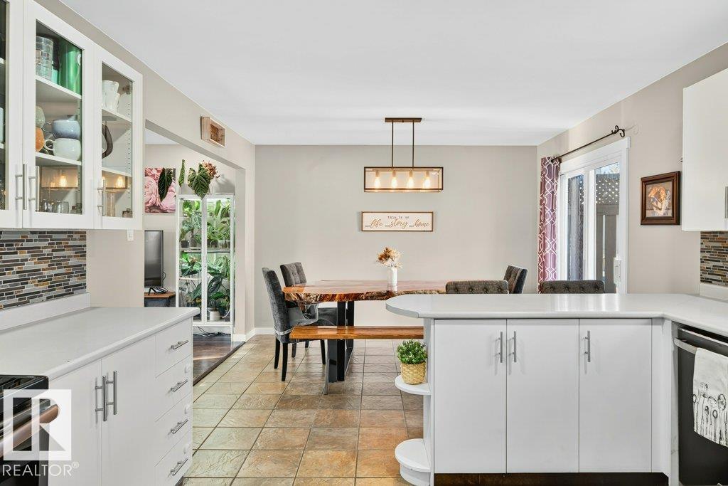 The kind of home families wait for?warm, updated, and close to schools in the heart of Callingwood. A fully finished, 1305 Sq Ft bungalow welcomes you with an open main floor, engineered wood plank flooring, pot lights, and updated vinyl windows. A sun-filled bay window frames the rustic stone-faced wood fireplace, creating the perfect cozy hub for everyday living. Modern kitchen is designed for real life with S/S appliances, ample storage, and space to gather. Generous bedrooms include a primary with its own 2-piece ensuite, plus a beautifully updated 4-piece bath with durable concrete counters. Downstairs offers a large rec room with WET BAR and mini fridge, a 3-piece bath, extra bedroom, and flexible space for work or play. Outside, enjoy a PRIVATE fenced yard, large deck with hot tub, and an OVERSIZED insulated double garage with new opener. New A/C, furnace (2019) screened eaves, spray foam insulation, and permanent GOVEE LIGHTS! Easy access to transit, YMCA, Twin Arenas, the Whitemud and Henday!