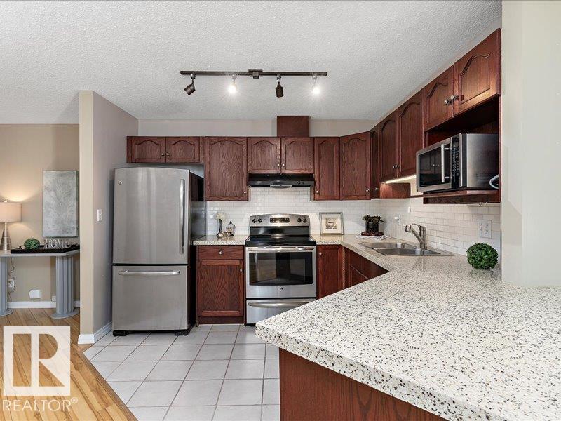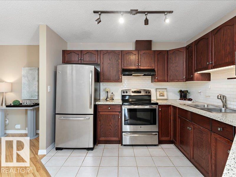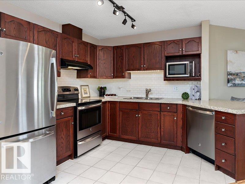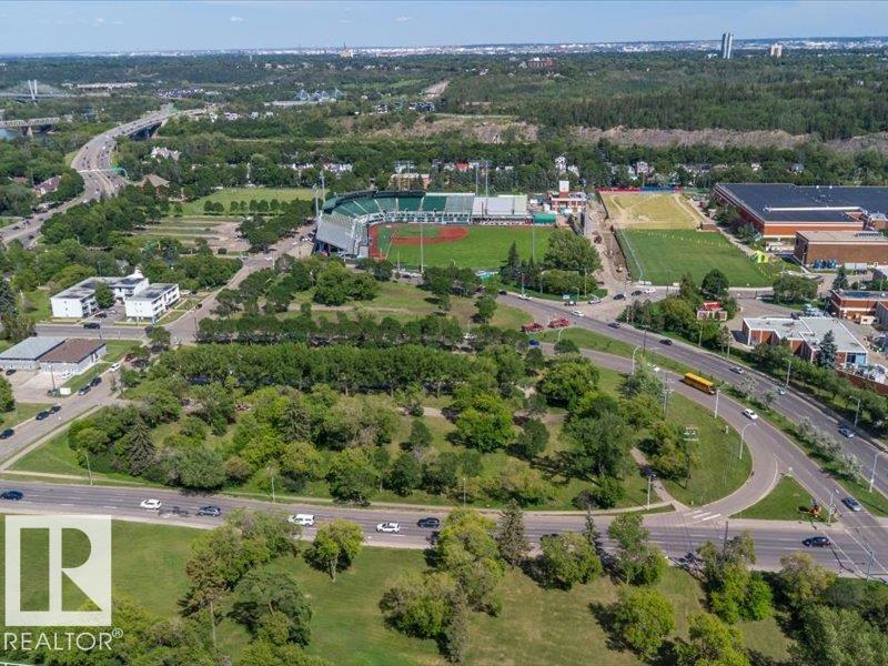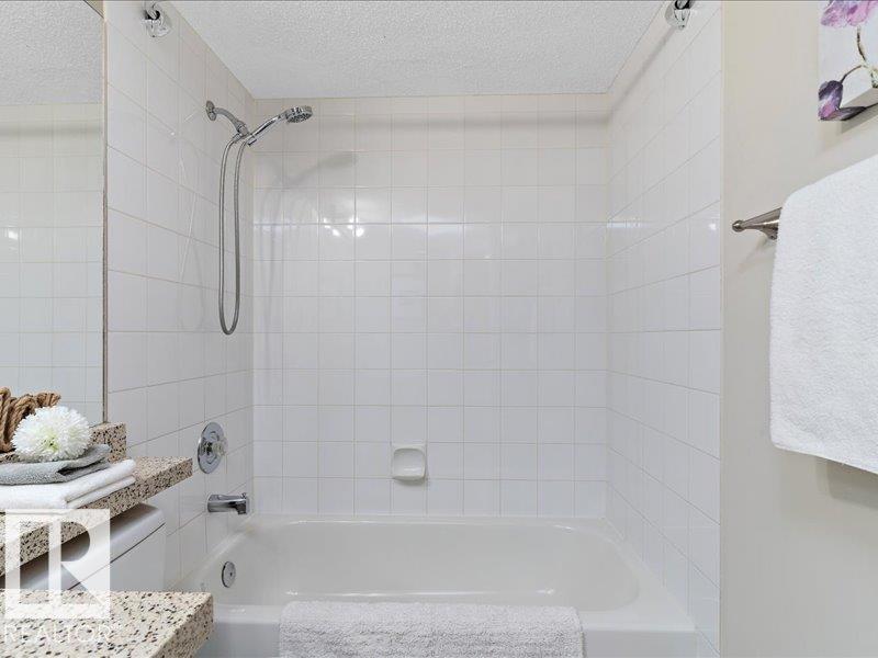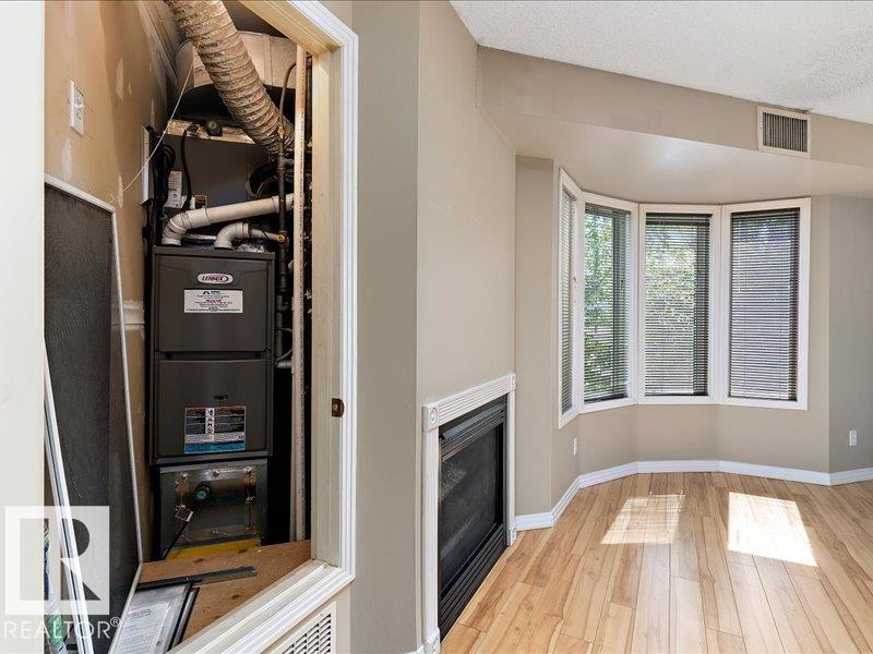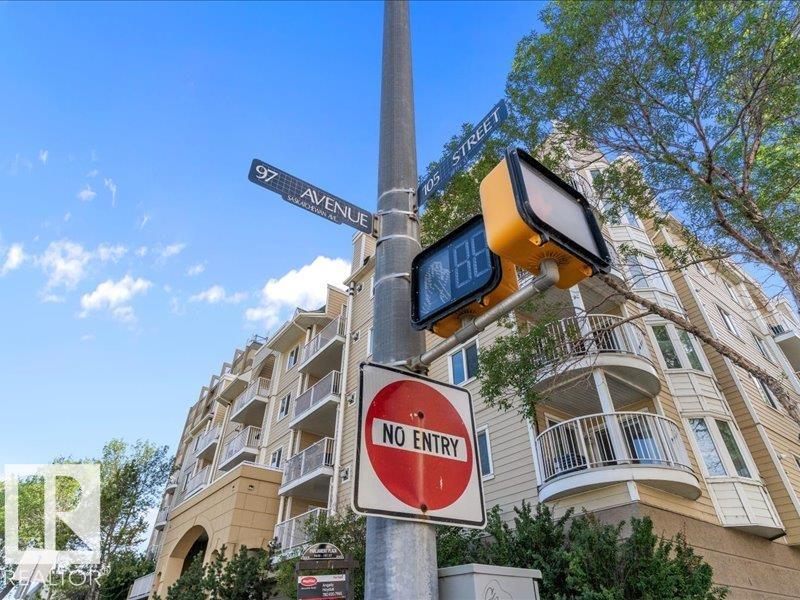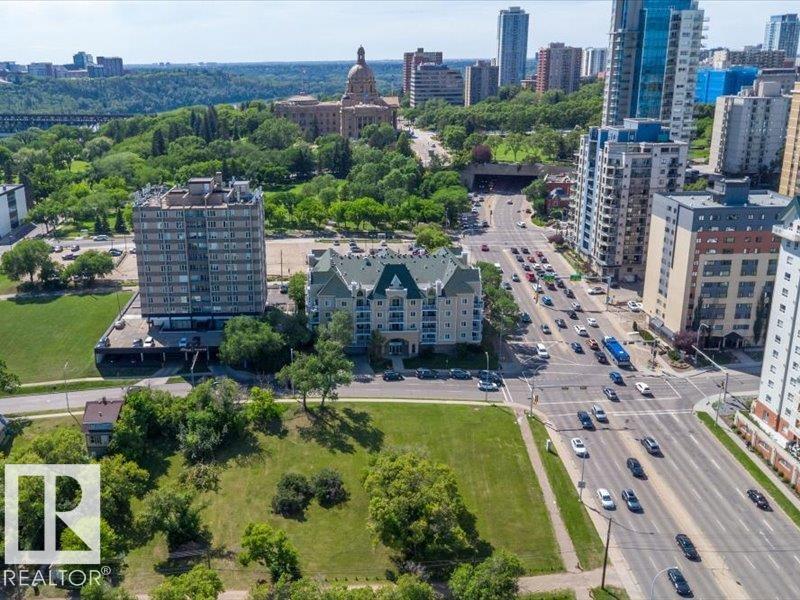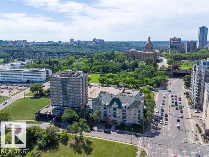 Priced to Sell! Located in the heart of Rossdale, stones throw to our iconic River Valley & Legislative Grounds you'll find this gorgeous condo. Featuring 2 bedrooms , 2 full bathrooms, large peninsula style kitchen with loads of cabinets, breakfast bar, newer Corian countertops (also done in both bathrooms), ceramic flooring & spacious dining area. The livingroom has a cozy gas fireplace, upgraded laminate flooring, numerous SW windows that provide much sunlight and access to spacious circular balcony. Good sized bedrooms, ample storage , newer central air-conditioner/furnace, 6 appliances and 1 underground parking stall (53). Just minutes to many of Edmonton's finest attractions including Rogers Arena, Folkfest, Accidental Beach, dining, grocery as well as the University & LRT System. In 2015 the building went through a major upgrade: stucco off to 40 year "Hardie Plank" board, roof, attic insulation, windows, balconies/railings & dura-decking. Reasonable condo fee's incl heat and water. See today!