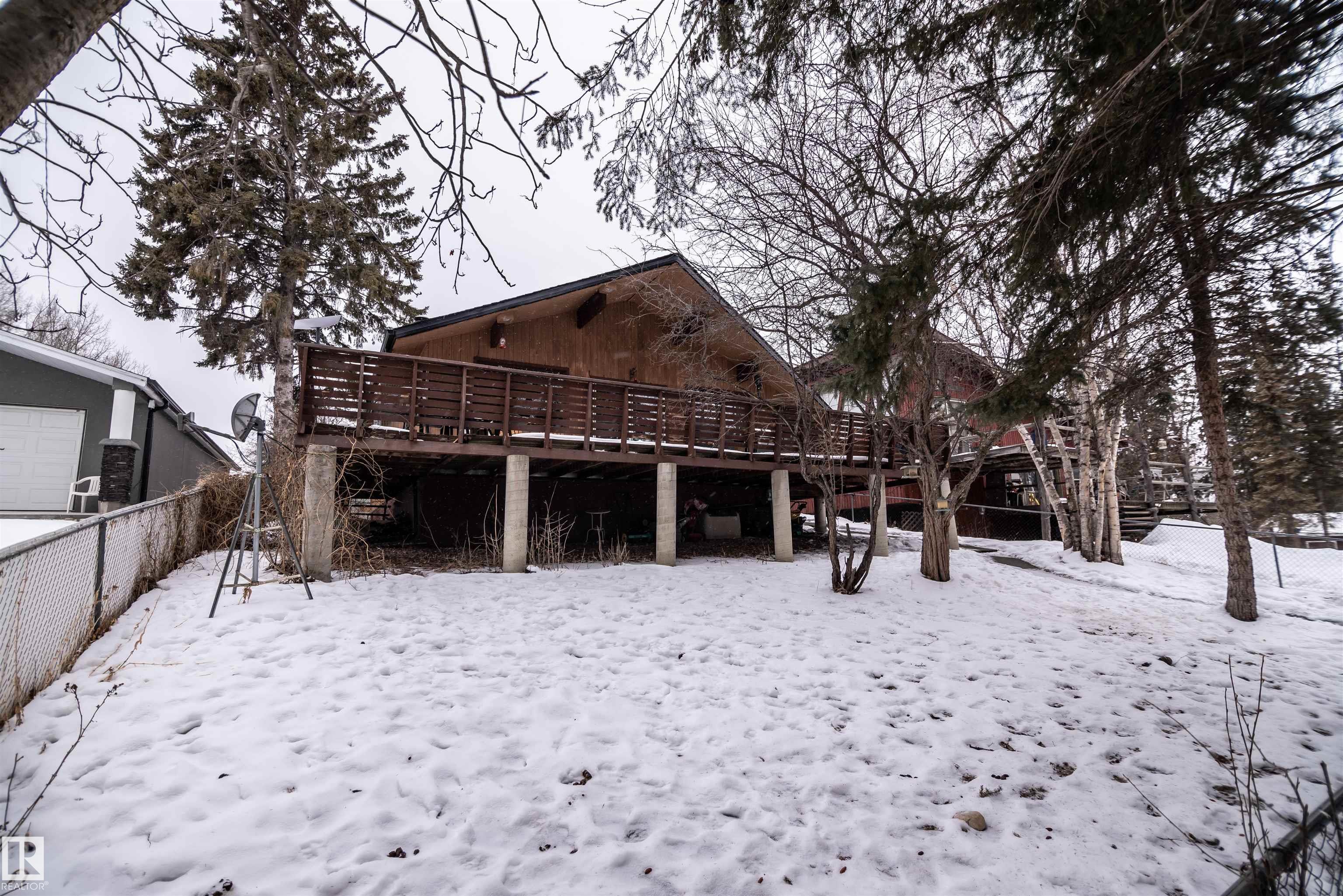 Cedar Bungalow with a double detached garage, fenced yard, Wrap around deck and a screened in porch area. Recent upgrades to new roof (sheathing and shingles), eaves and soffits. Inside the home you will find that country flair with cedar vaulted ceiling, a spacious living room with feature rock wall and wood burning fireplace, large kitchen with loads of cabinets, built in oven and countertop stove, and a dining area. Patio doors leads to the front deck for summer enjoyment. 2 bedrooms and a full bath and laundry area off the back. A Front Drive access for additional parking can easily be added. This home is located in the Summer Village of West Cove, off the shores of Lac Ste Anne, and only blocks to the large park/playground and boat launch area. 40 minutes to West Edmonton. Enjoy recreational living year round.