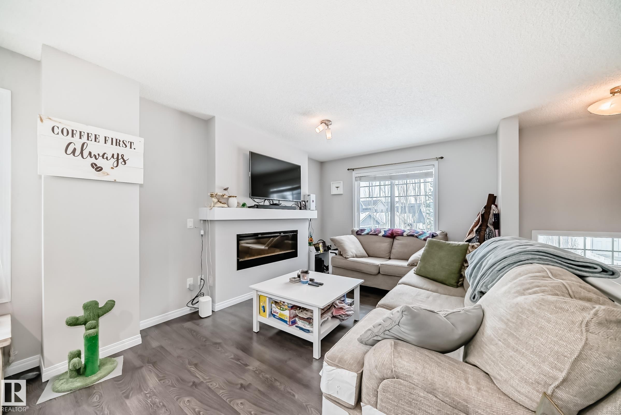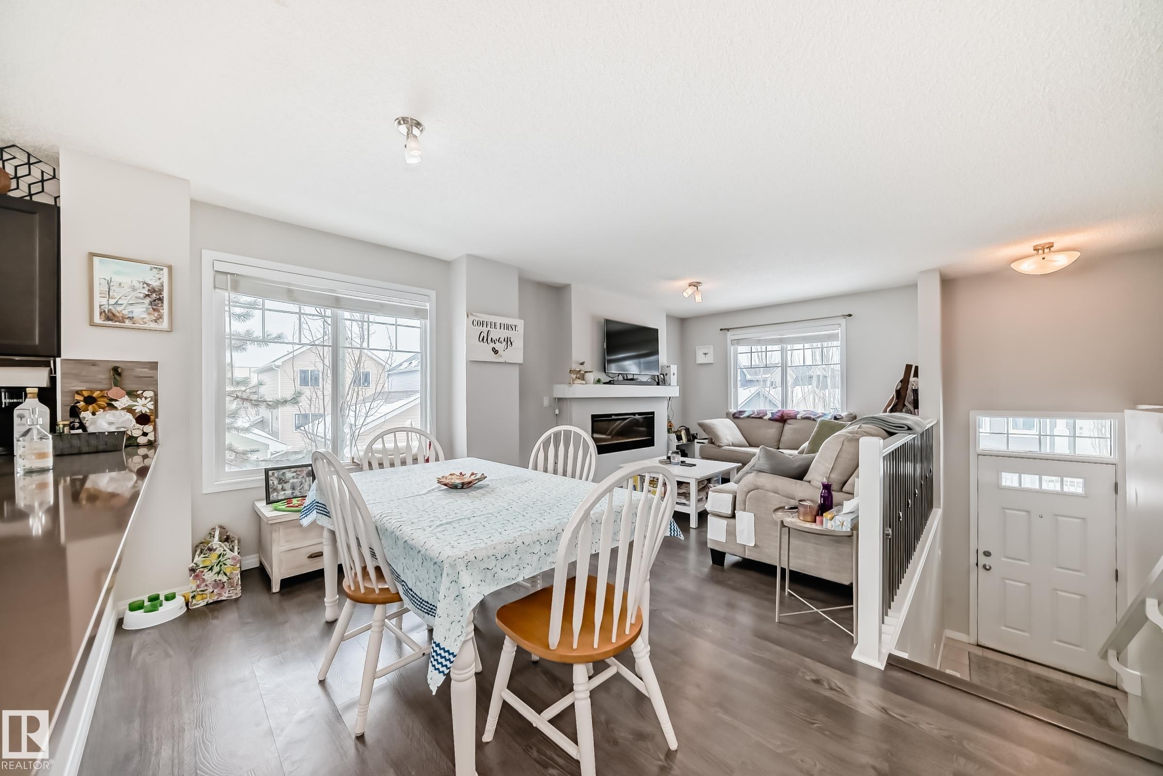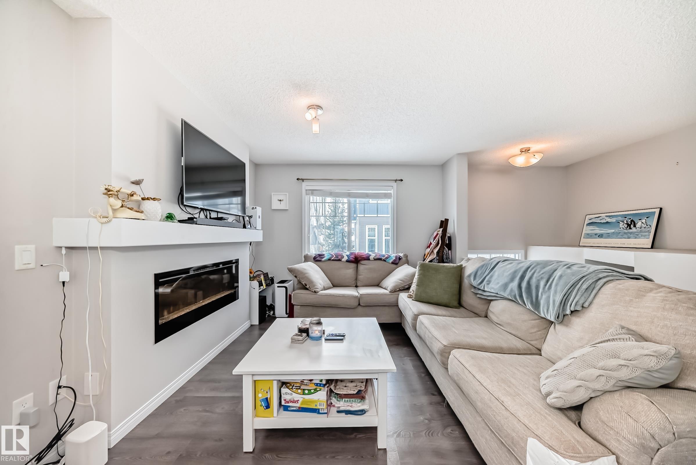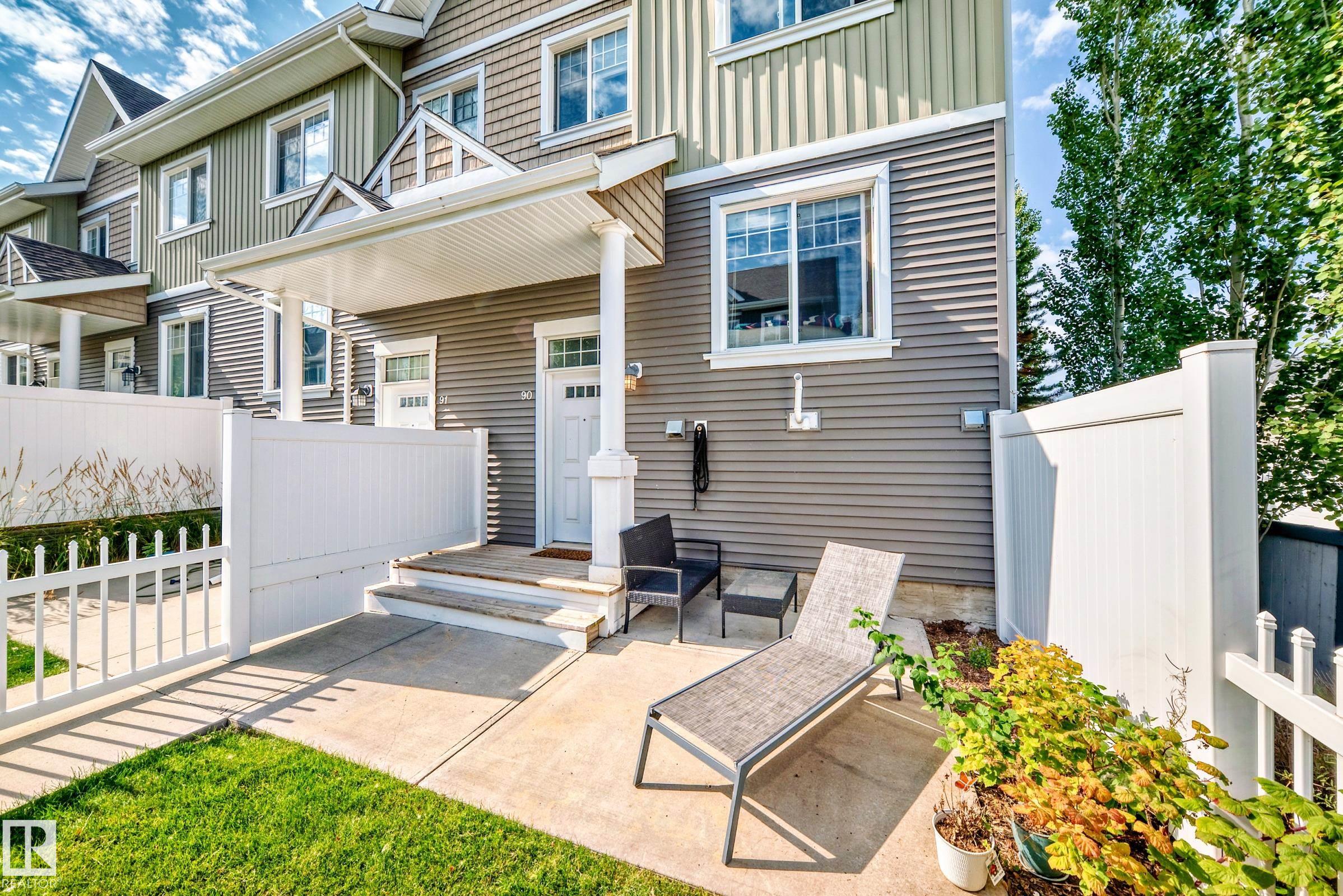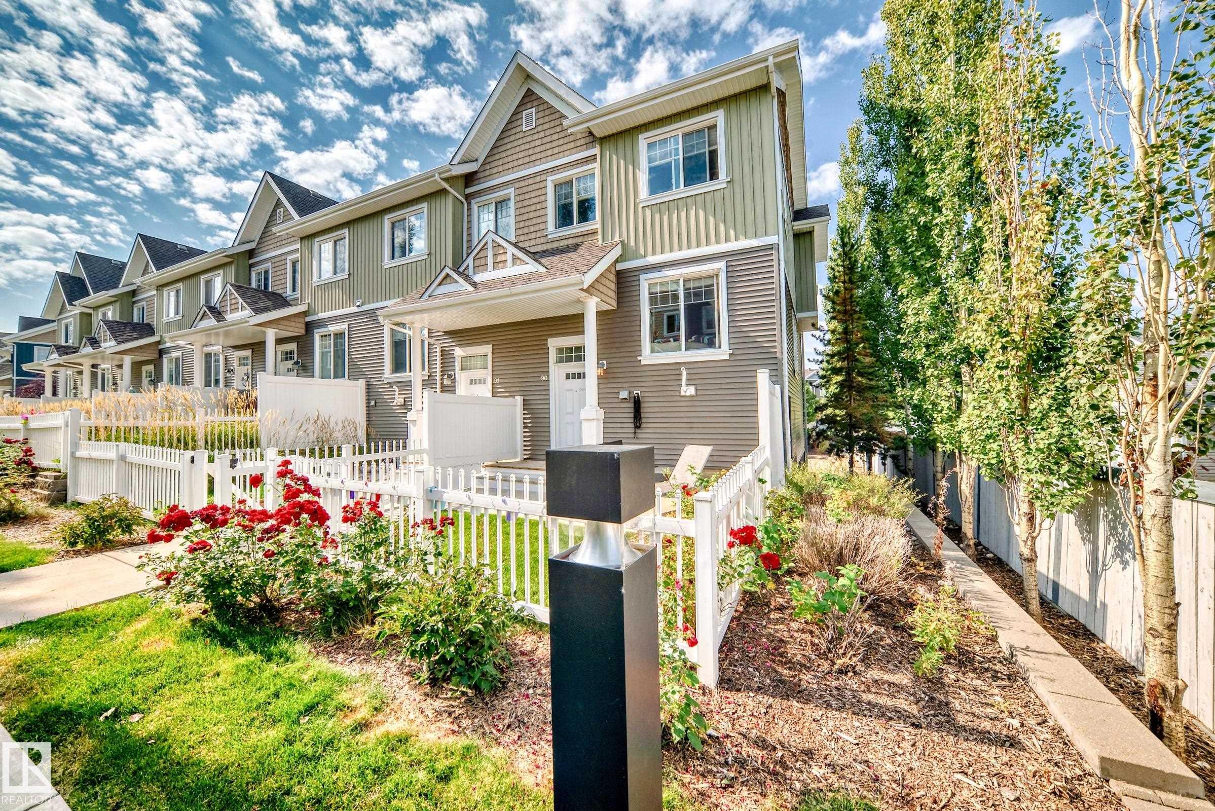Welcome to this immaculate end-unit townhouse in the sought-after lake community of Summerside! Enjoy exclusive access to Lake Summerside, tennis courts, rinks, and more. This bright and airy 3-bedroom, 2.5-bath home features an open-concept main floor with stylish dark laminate flooring, quartz countertops, stainless steel appliances, a corner pantry, and a cozy electric fireplace. The spacious kitchen opens to a balcony perfect for entertaining. Upstairs offers a large primary bedroom with walk-in closet and ensuite, two additional bedrooms, a full bath, and upper laundry. Massive windows and an east-facing fenced yard flood the home with natural light. The unfinished basement provides excellent storage and access to the double attached garage. Walking distance to Michael Strembitsky School, parks, and just 15 minutes to the airport?this turnkey unit is perfect for first-time buyers or investors!