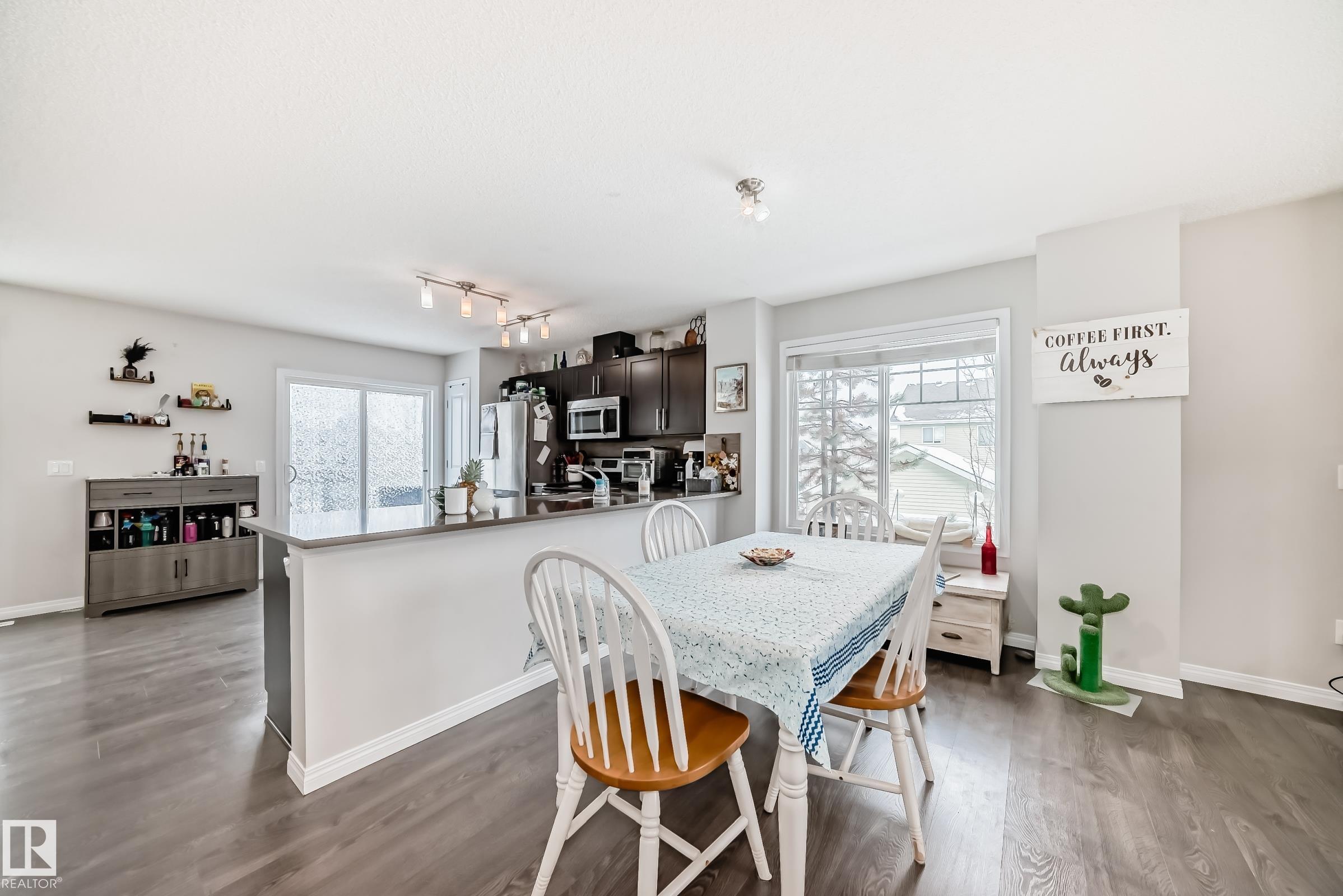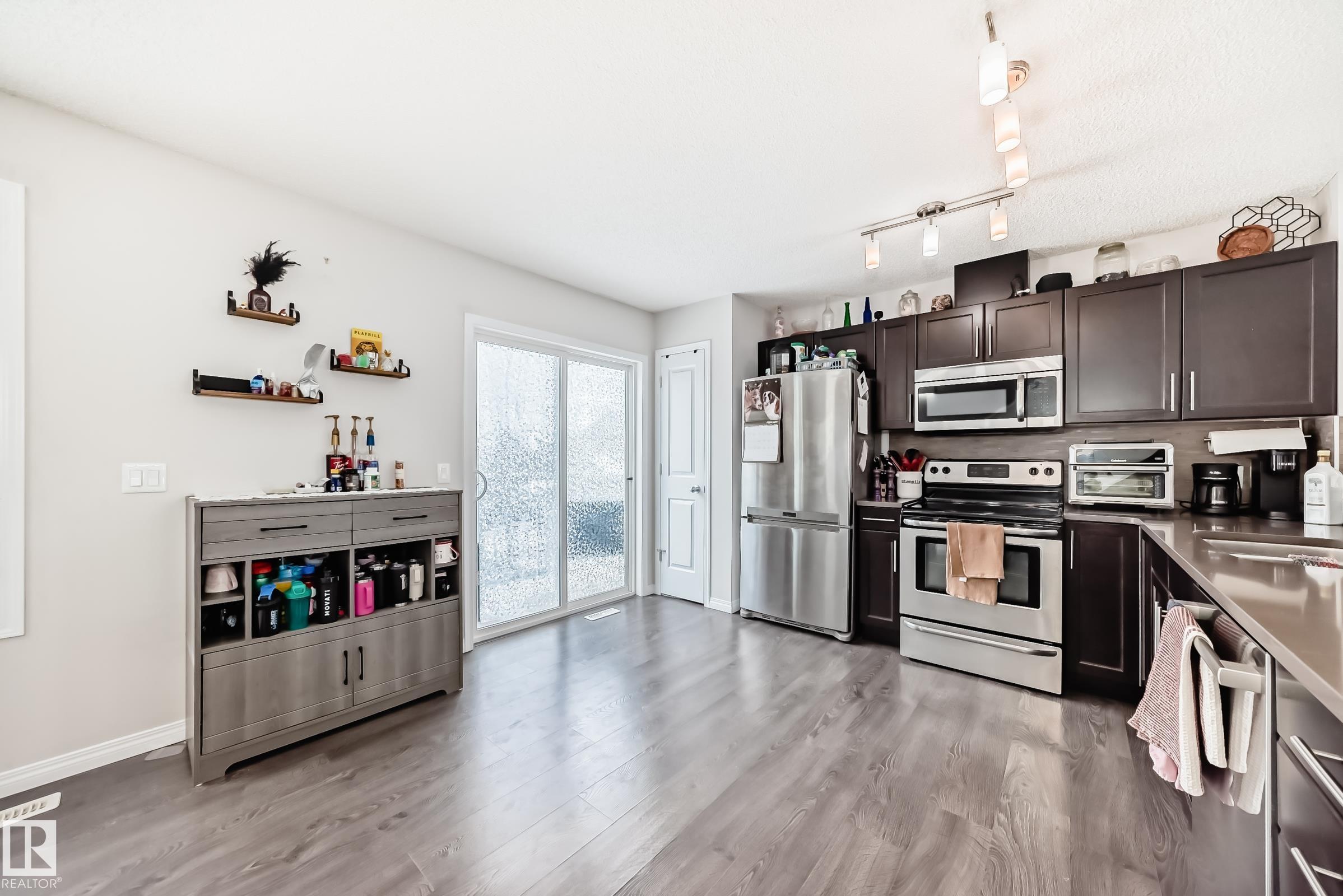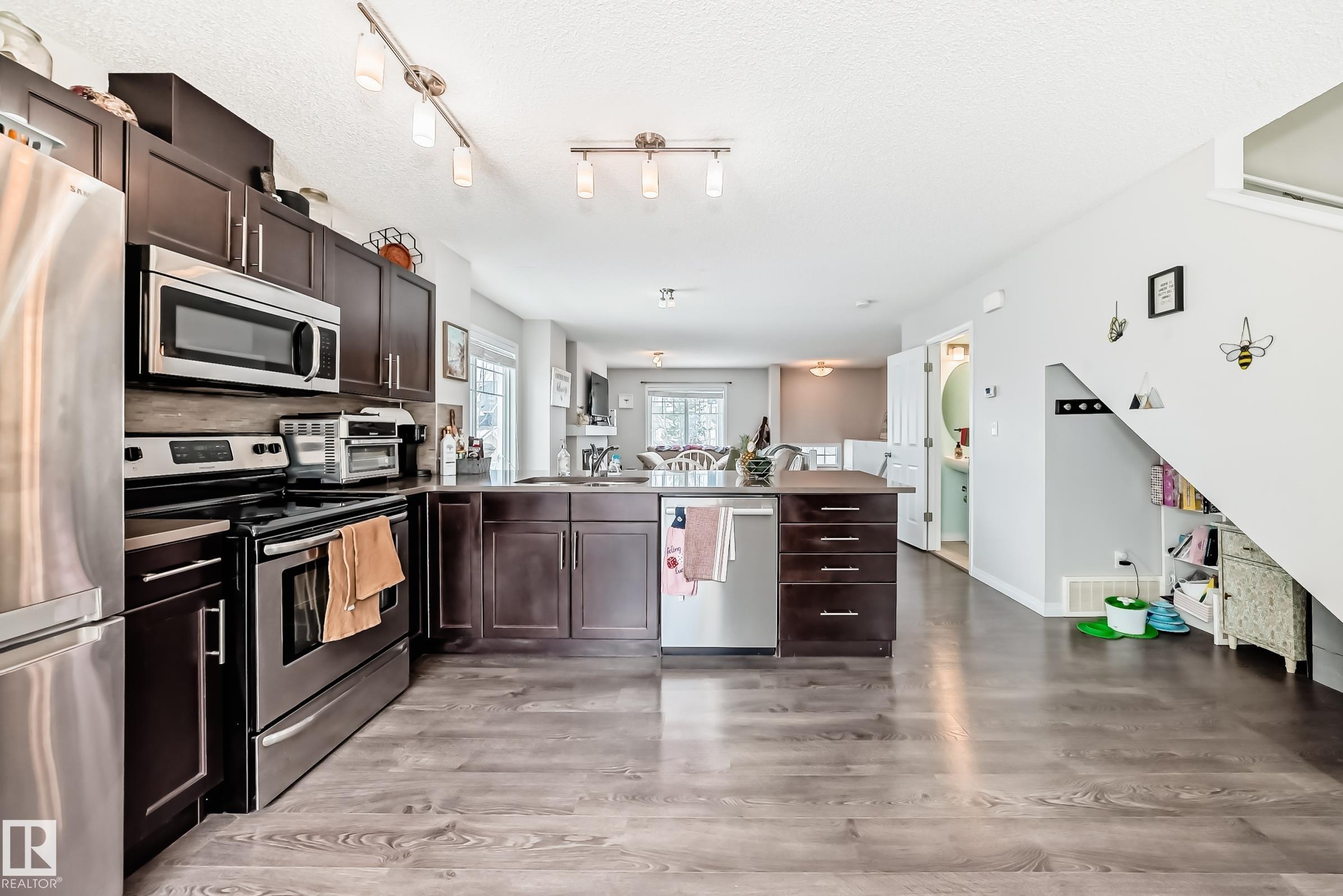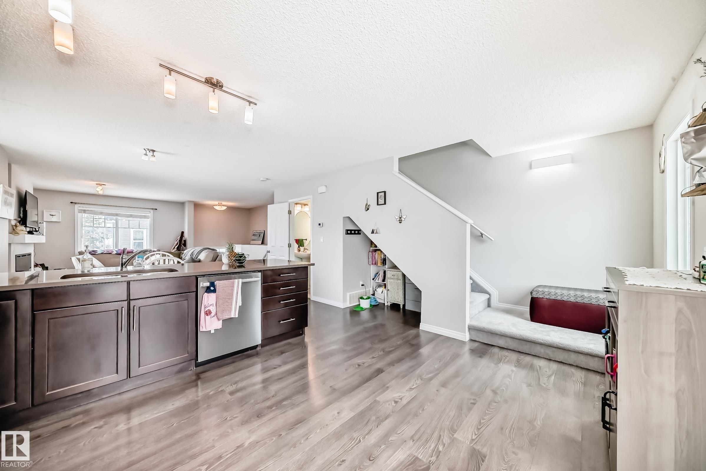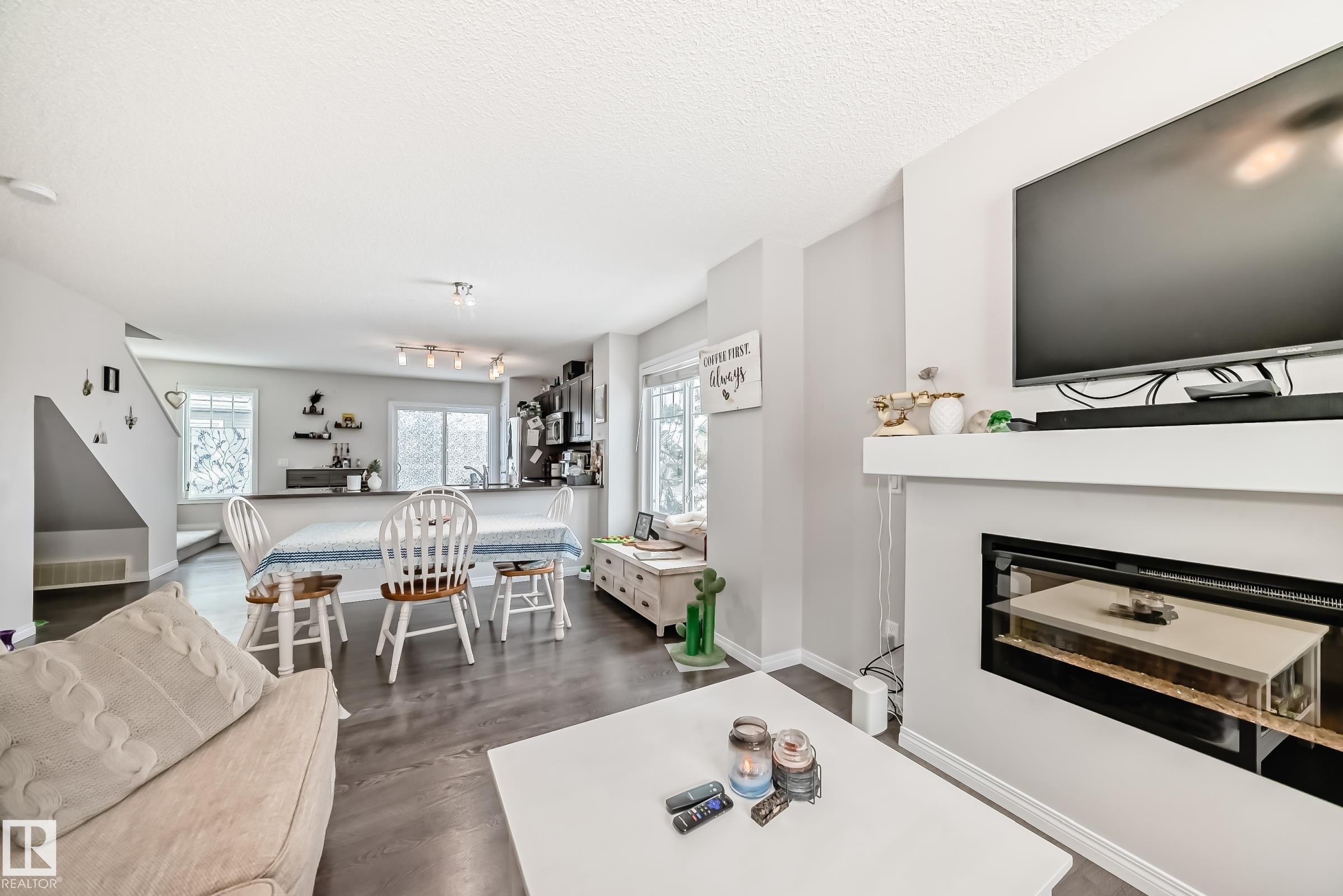 Welcome to this immaculate end-unit townhouse in the sought-after lake community of Summerside! Enjoy exclusive access to Lake Summerside, tennis courts, rinks, and more. This bright and airy 3-bedroom, 2.5-bath home features an open-concept main floor with stylish dark laminate flooring, quartz countertops, stainless steel appliances, a corner pantry, and a cozy electric fireplace. The spacious kitchen opens to a balcony perfect for entertaining. Upstairs offers a large primary bedroom with walk-in closet and ensuite, two additional bedrooms, a full bath, and upper laundry. Massive windows and an east-facing fenced yard flood the home with natural light. The unfinished basement provides excellent storage and access to the double attached garage. Walking distance to Michael Strembitsky School, parks, and just 15 minutes to the airport?this turnkey unit is perfect for first-time buyers or investors!