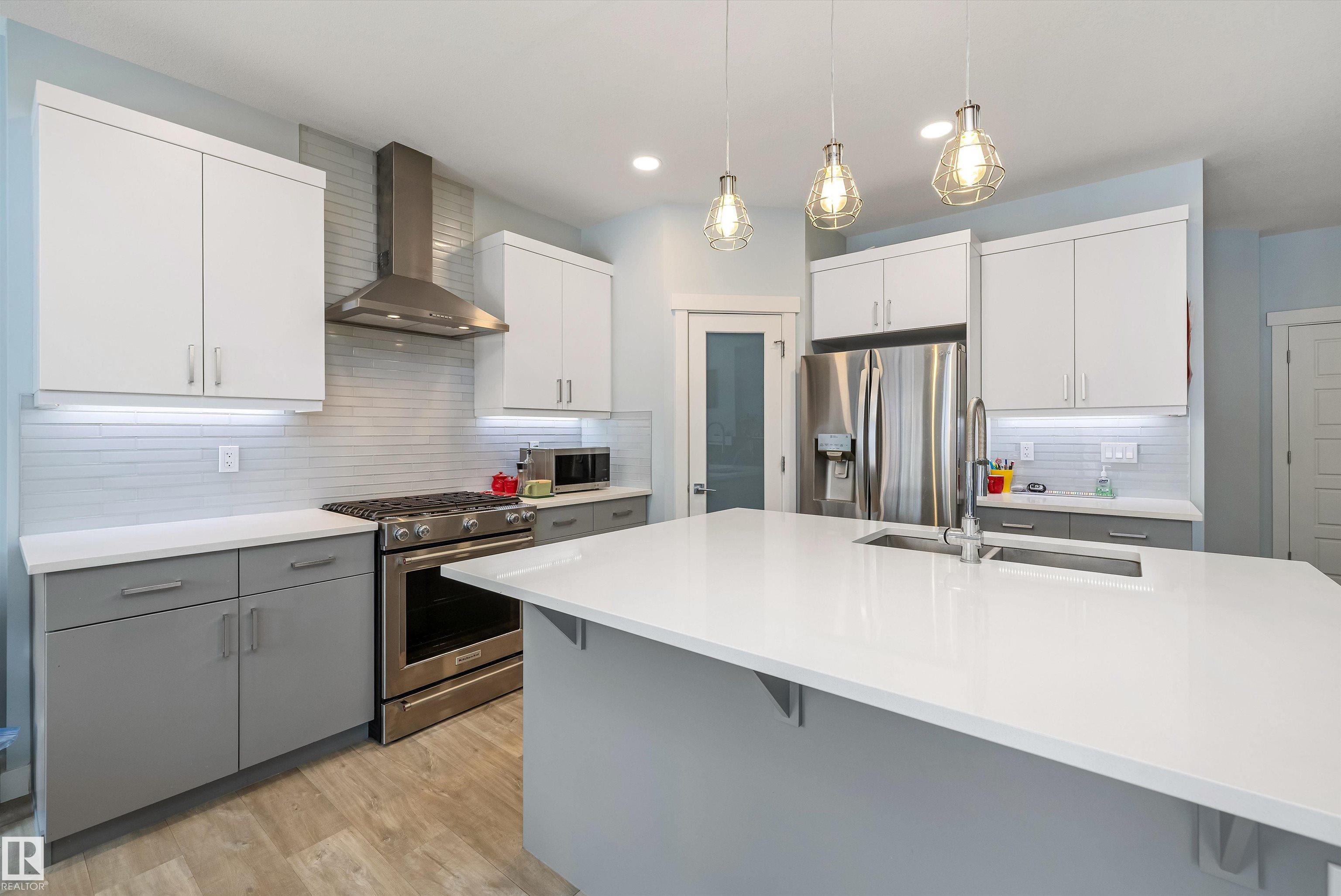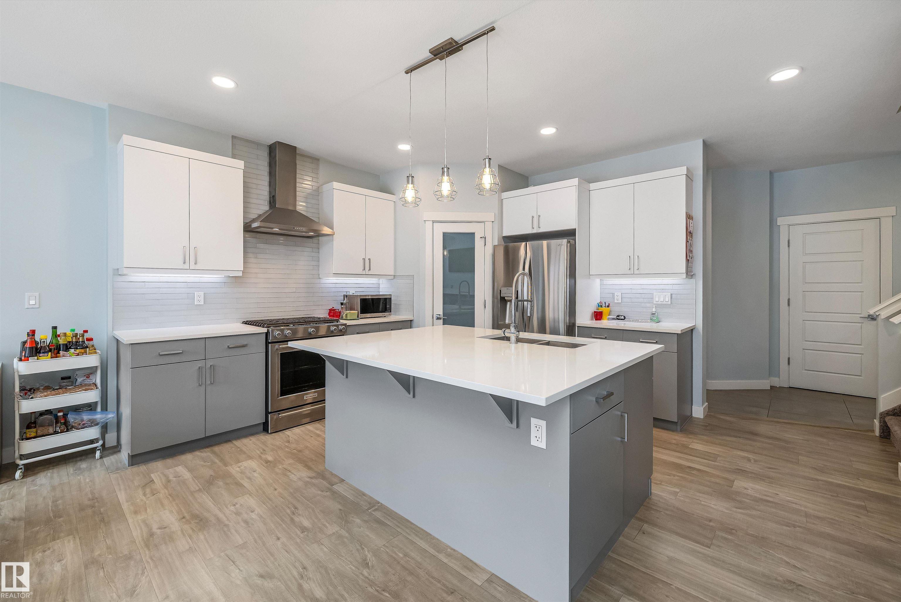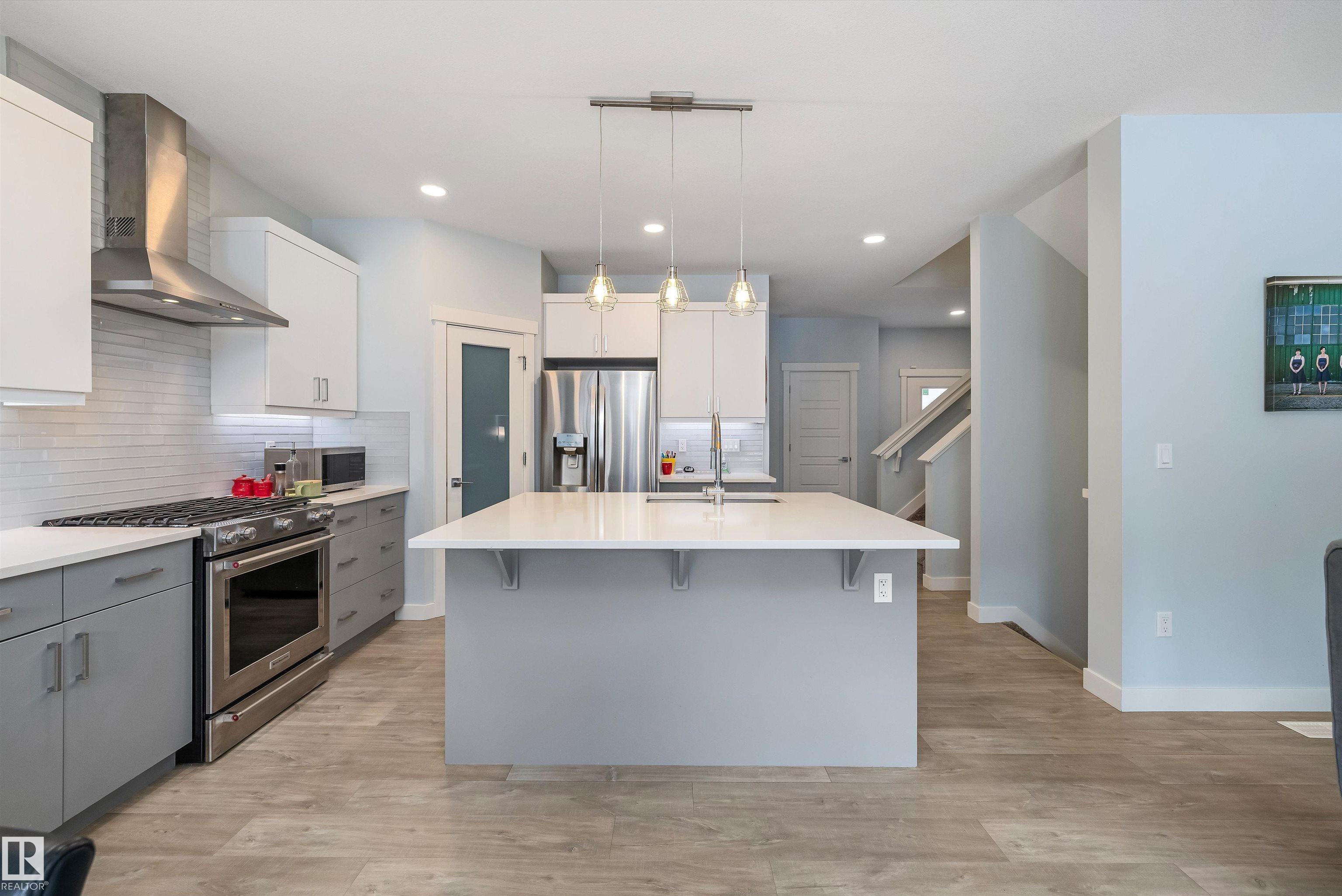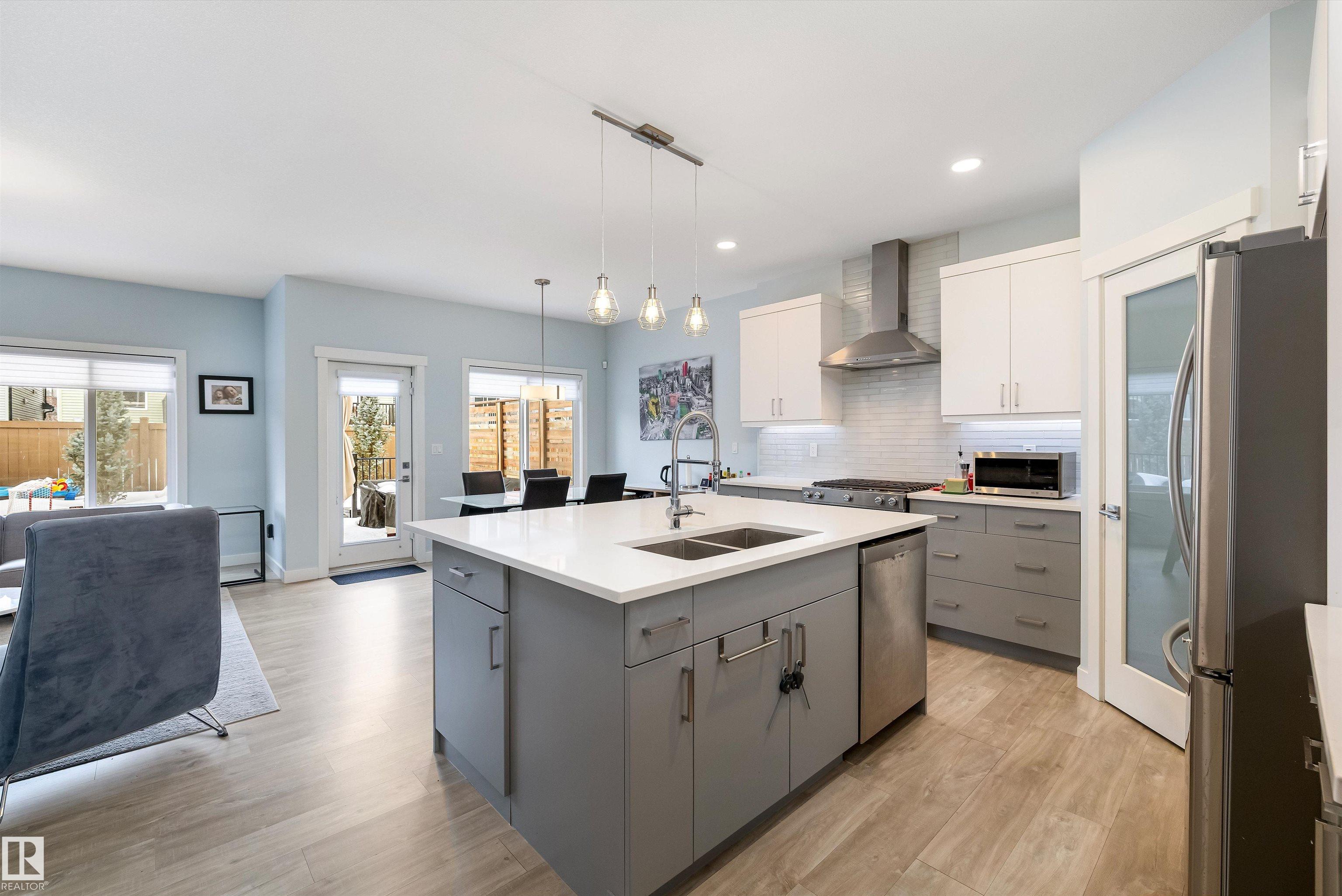 This beautifully maintained Graydon Hill home blends modern upgrades with family-focused design. The main floor features an open layout with laminate and ceramic tile flooring, quartz countertops, and a brand-new gas stove (2025). The upper level includes a convenient laundry room with a new washer and dryer (2025) and 3 spacious bedrooms, including a HUGE primary retreat with a 5pc ensuite and walk in closet. The BUILDER FINISHED basement adds a large rec room, a 4th bedroom, and a full 4-piece bathroom. The outdoor space is an entertainer?s dream: a fully fenced, spacious backyard features a huge deck with a gas BBQ line and an included fire table. Perfect for summer BBQs with family and friends! High-value mechanical upgrades include A/C (2020), a tankless water heater (2023), and a radon abatement fan. This move-in-ready home is conveniently located close to Ellerslie road, the Anthony Henday and several parks and ponds, making it the ideal location to raise a family!
