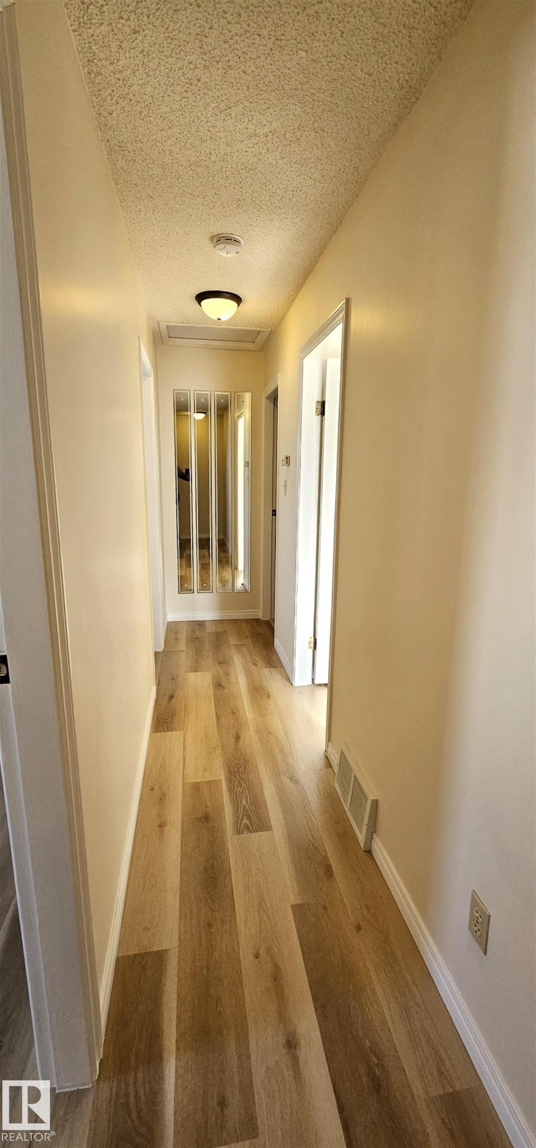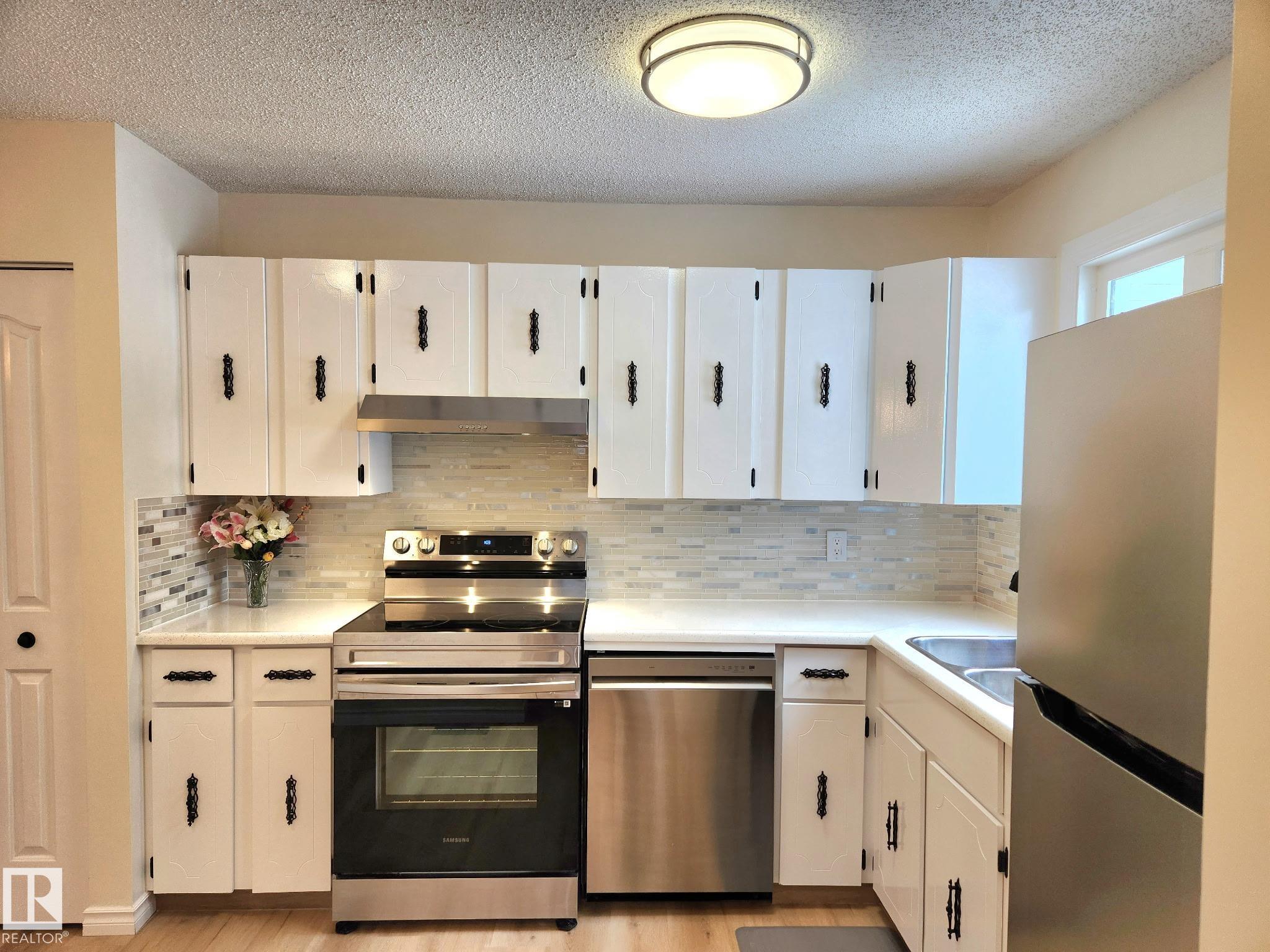 Beautiful and spotless this 3 bedroom 1.5 Bath Townhouse is perfectly located in a mature FAMILY focused COMMUNITY with a fully fenced southwest facing yard backing the walking trail to schools, playgrounds, ball fields and parks. The main floor features an open living room / dining area, spacious kitchen with ample counter / cabinet space, and a 2 piece powder room. Radiating with natural light, New flooring, new paint and plenty of other touches that make the condo feel like home the upper floor offers 3 sizeable bedrooms with plenty of closet space and a full 4 piece bathroom. Additionally, the finished basement boasts a large rec room, workshop area and laundry room. Complex has LOW CONDO FEES, and is well run with many upgrades including vinyl siding, vinyl windows, and a well maintained complex...this private, corner unit in Castle Terrace is waiting for you to call it home