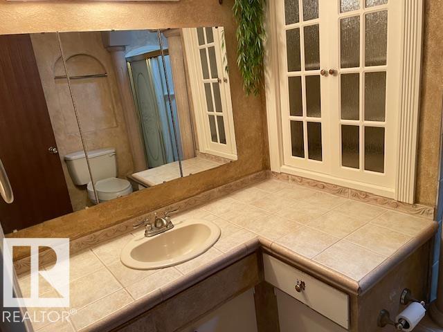 This bungalow in Stony Plain has a great location- backing onto reserve area and in a private cul de sac. 3 bedrooms up and one in the basement. Kids will enjoy the log cabin rec room in t he basement along with two other rec areas. The living room has a large bay window and the dining opens to a large deck . Schools arent far away. There is also a front drive concrete pad.