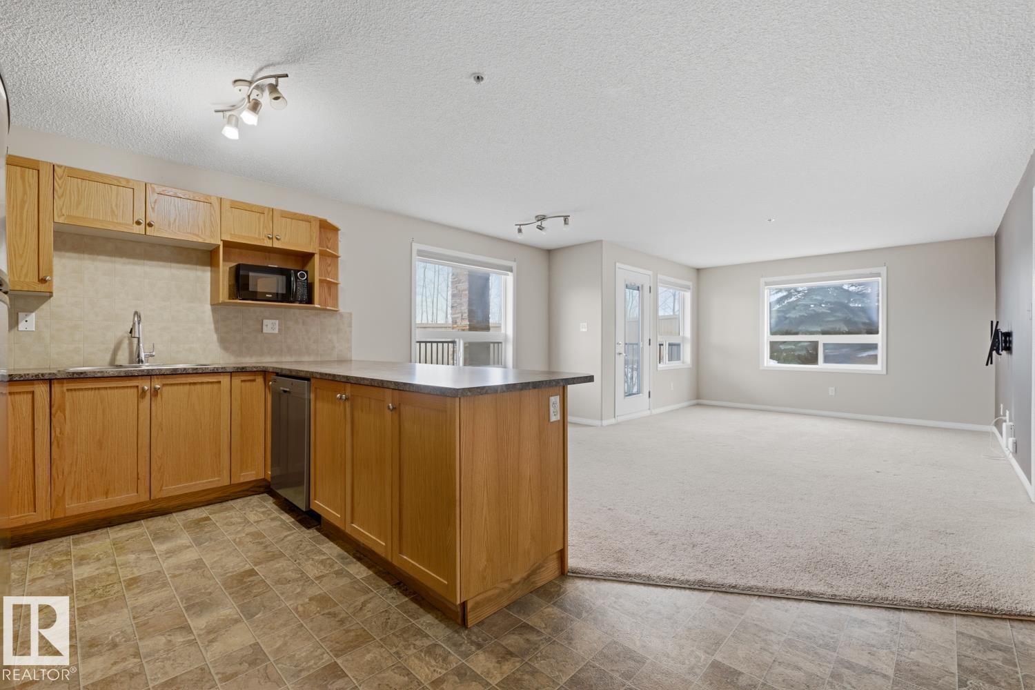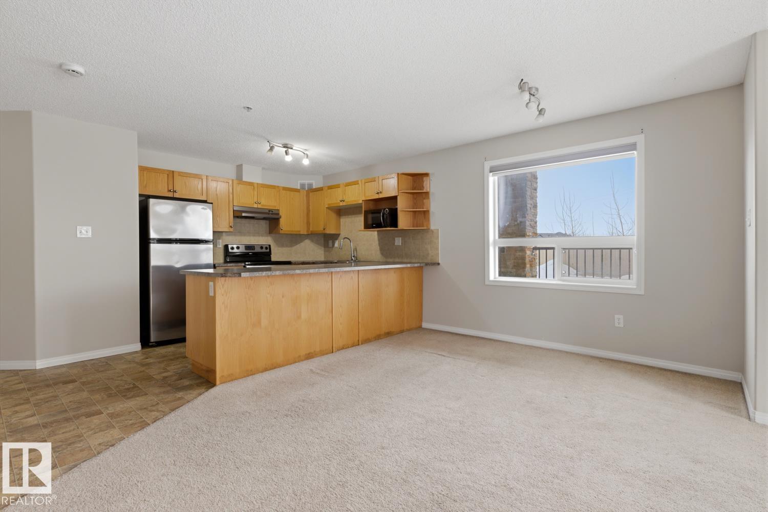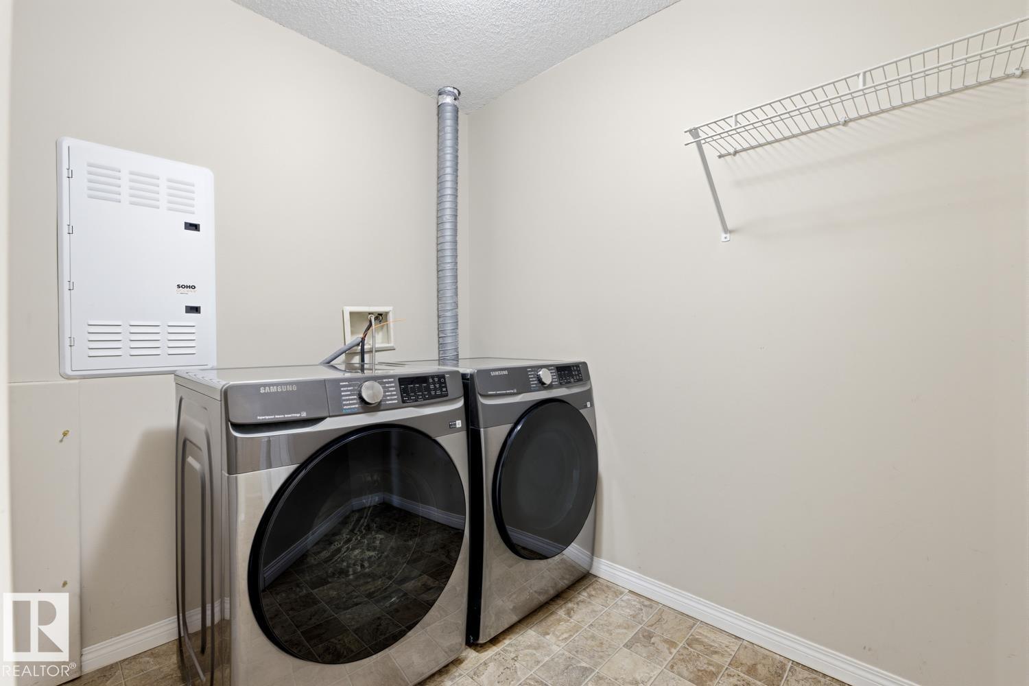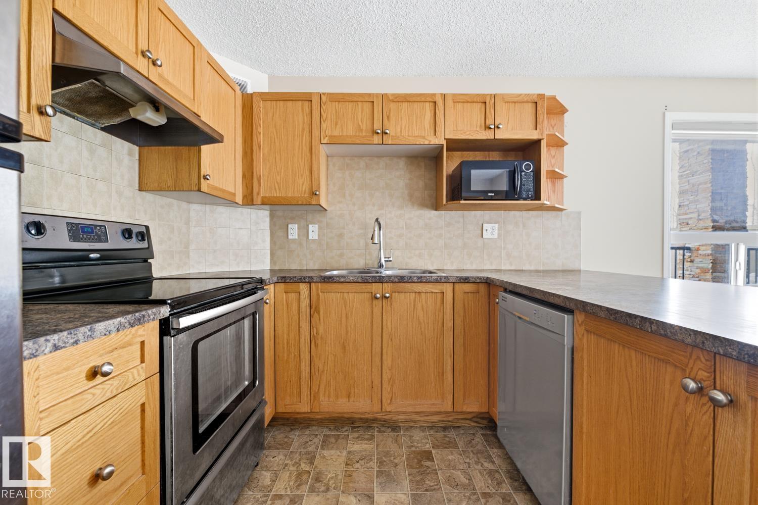 Bright & Spacious Corner Unit! Welcome to this stunning 1,050 Sqft 2-bedroom, 2-bathroom corner unit that combines space and style. This large condo is filled with natural light thanks to its expansive windows. The open-concept layout creates a warm and welcoming atmosphere, while the spacious kitchen features a large island with sleek stainless steel appliances. Step out onto the oversized balcony ? perfect for morning coffee or evening relaxation. You'll also love the massive in-suite storage room with laundry and a brand-new washer and dryer, offering both convenience and functionality. Enjoy the comfort of heated underground parking, keeping your vehicle safe and warm all year round. Tucked away just minutes from the Anthony Henday, this prime location provides easy access to major routes and scenic walking paths ? ideal for outdoor lovers.