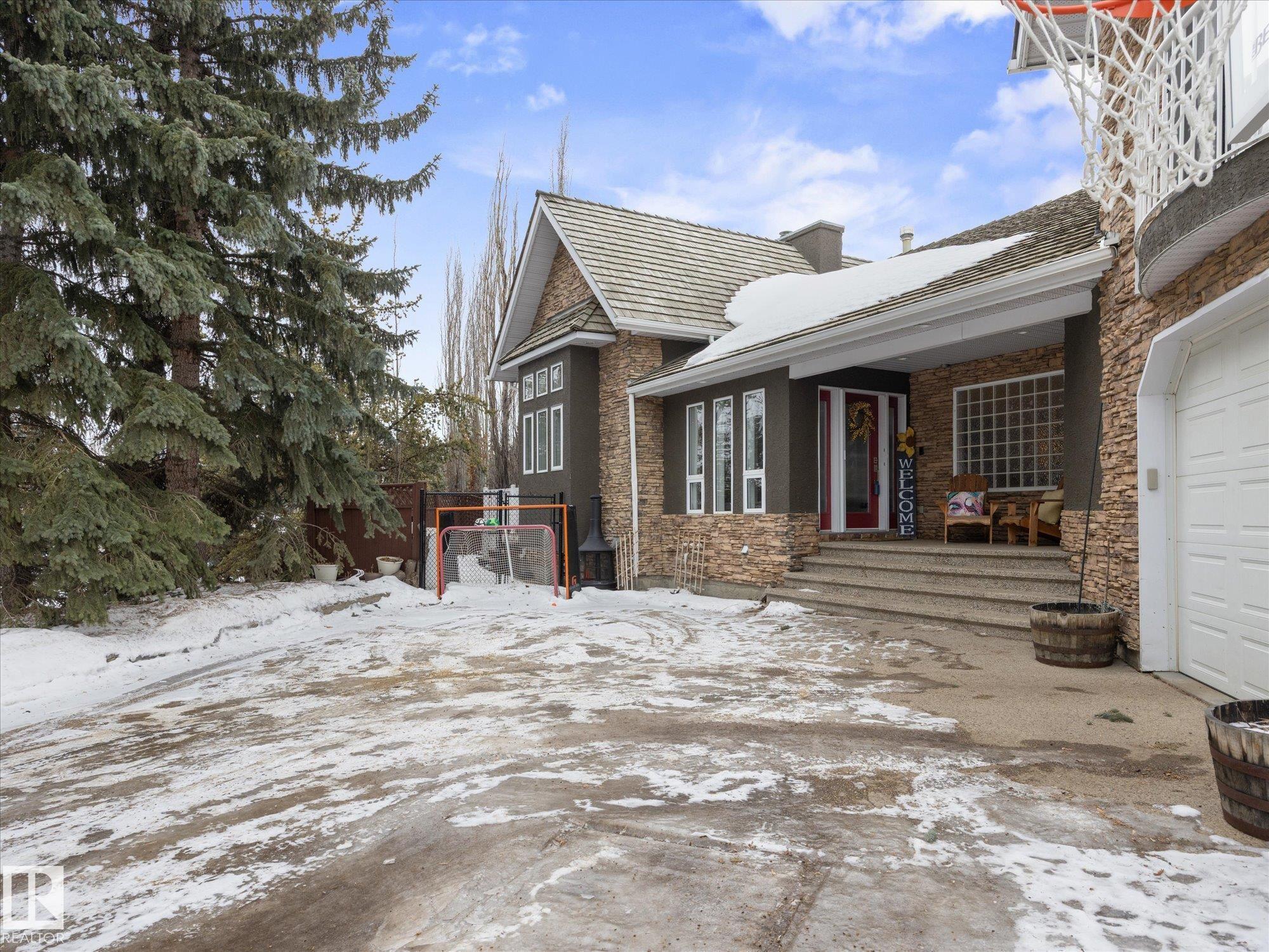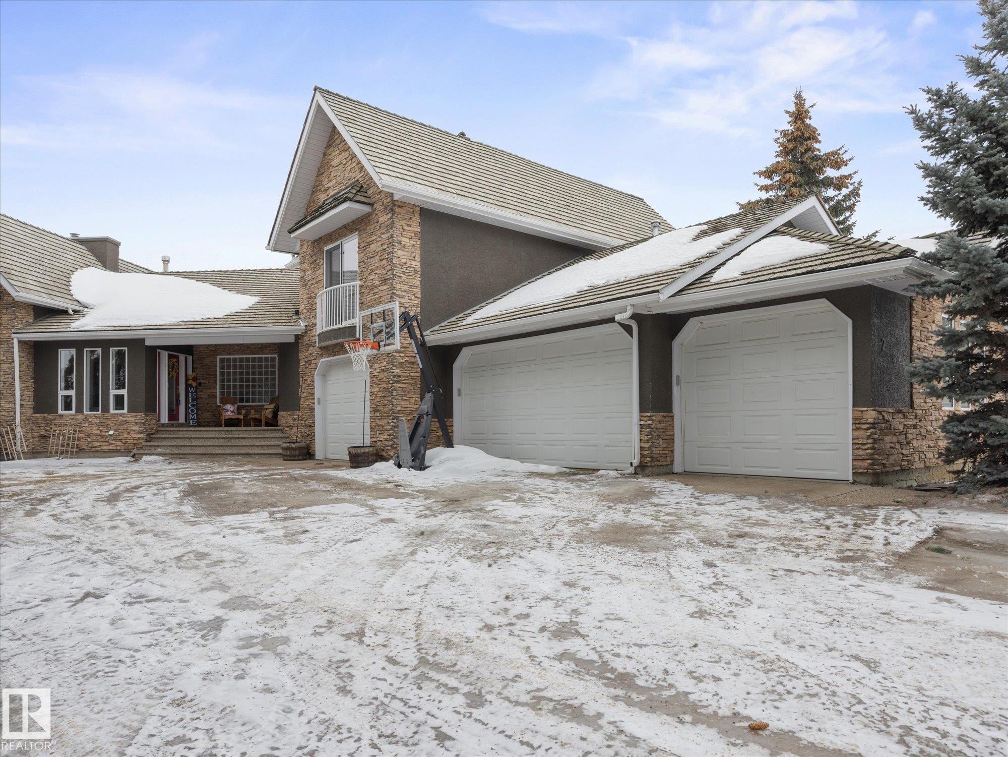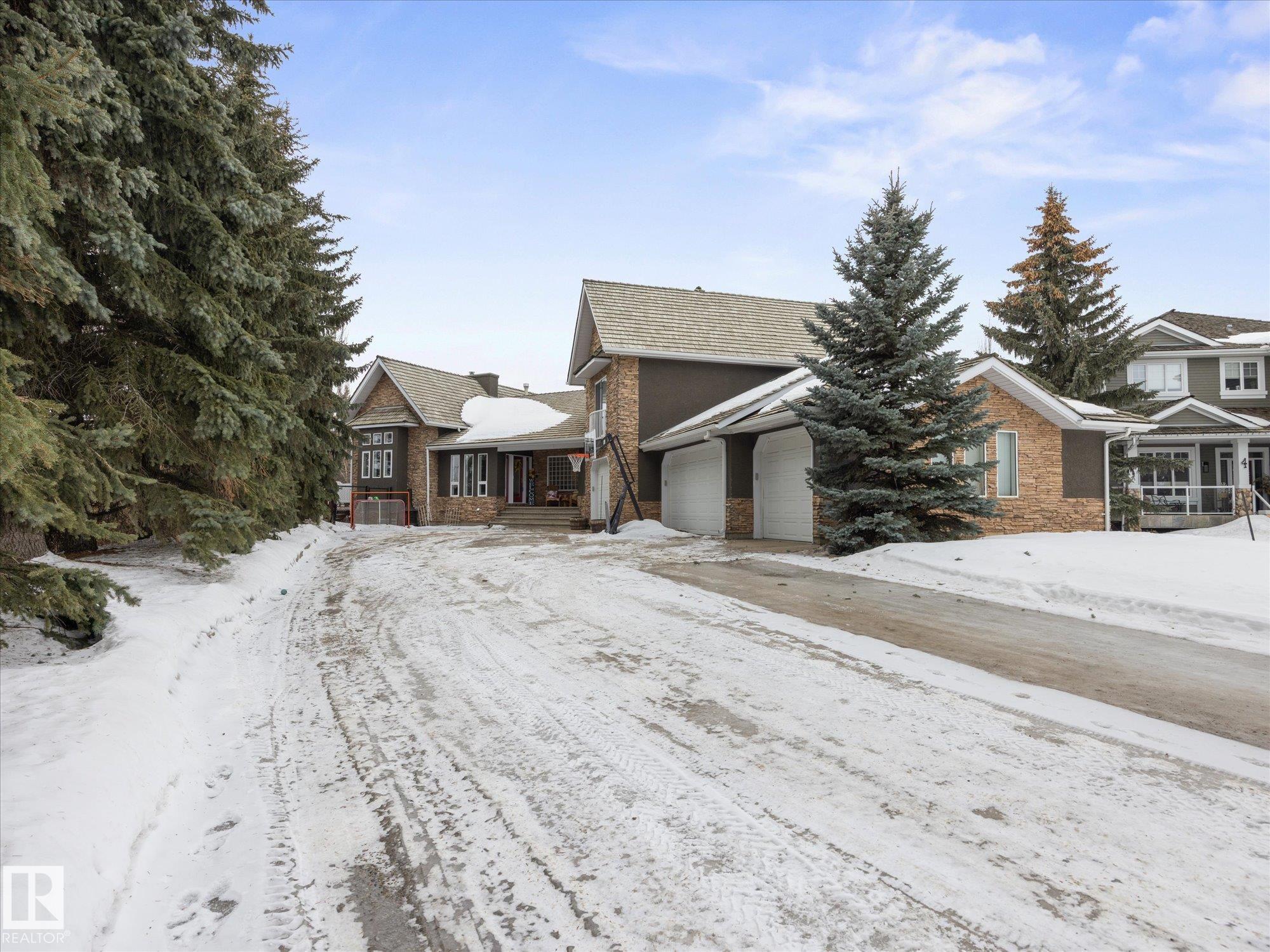 Stunning modern home in gorgeous Allin Ridge Estates. This beautiful home has over 2700 sq ft plus a fully finished basement, 6 bedrooms, 5 bathrooms, and a FIVE CAR GARAGE situated on 0.6 acres WITH FULL CITY SERVICES. The main floor offers 20' soaring ceilings and high-end finishings. Chef's gourmet kitchen has stunning quartz countertops, 10' island, WOLF GAS COUNTERTOP STOVE, and expansive countertops. Large eating nook and adj. family room with 2 way gas fireplace are perfect for cozy family activities. Main floor offers 3 bedrooms, 3 bathrooms, and laundry. Primary bedroom is on its own level for maximum privacy with it's own gas fireplace and hotel styled-ensuite. Fully dvp basement has 2 bedrooms, full bathroom w. steam shower, media room, and rec room. Extra large garage can house 5 or 6 vehicles! 0.6 acres has private, fenced yard w. deck and BBQ area.