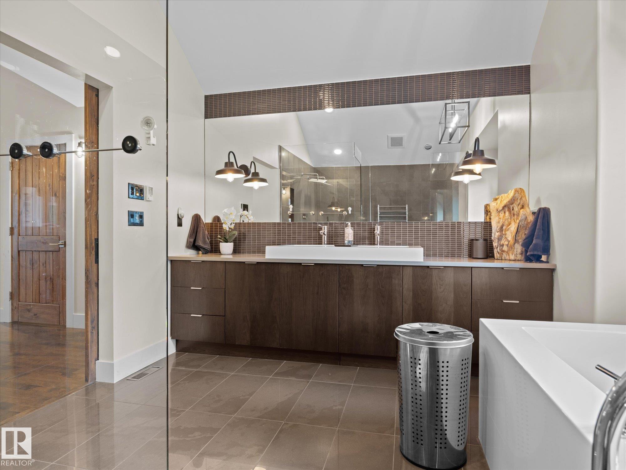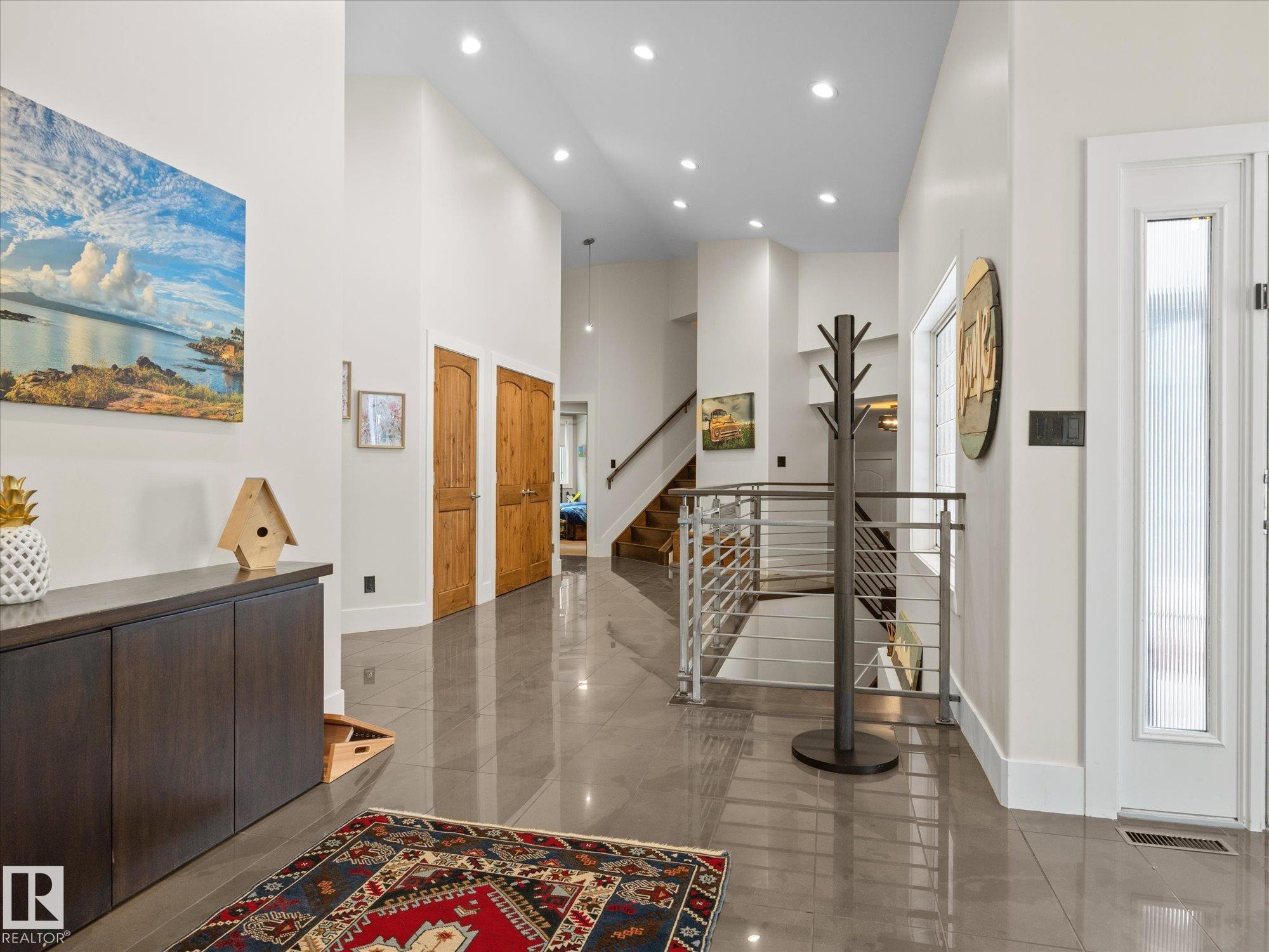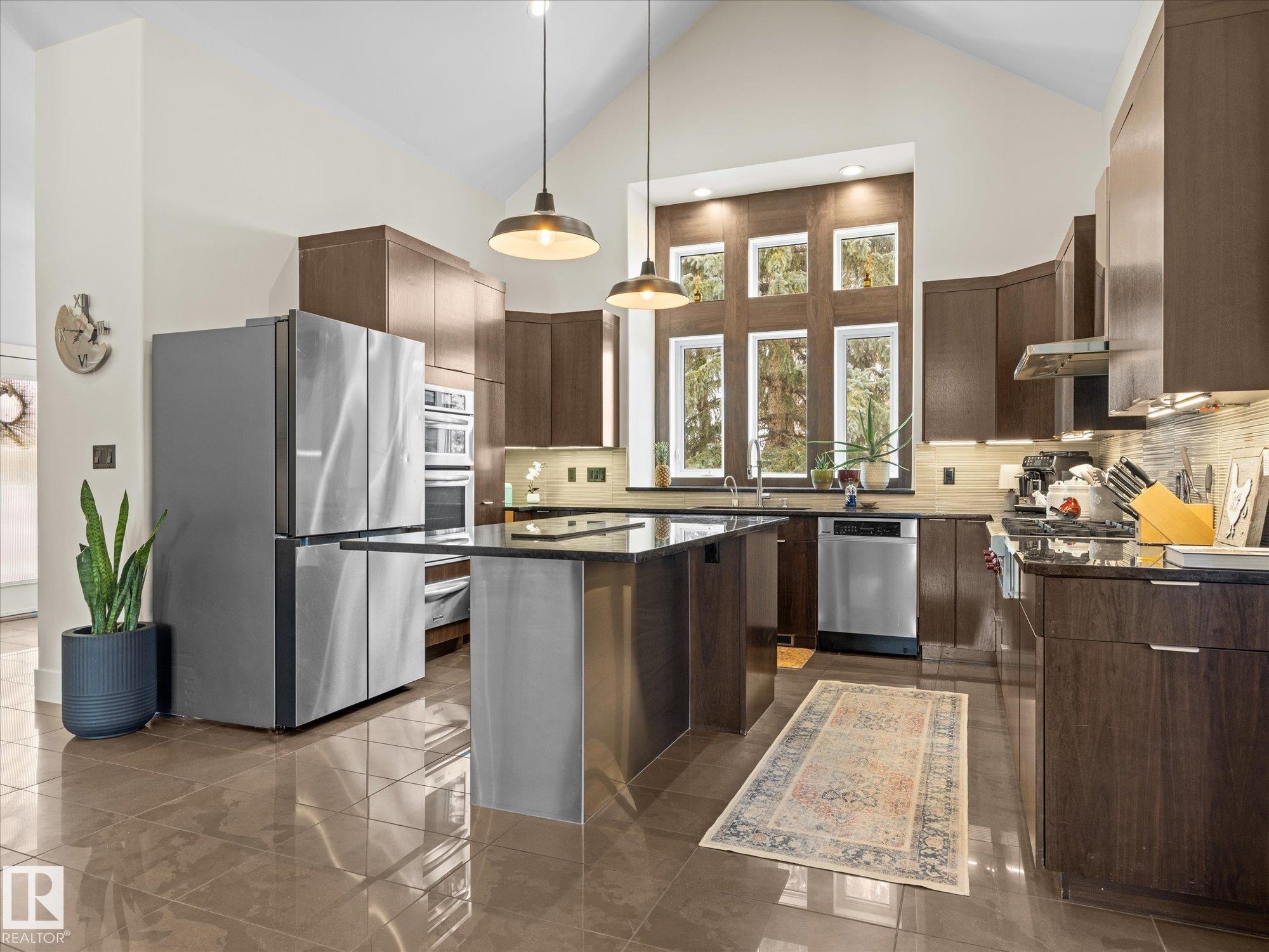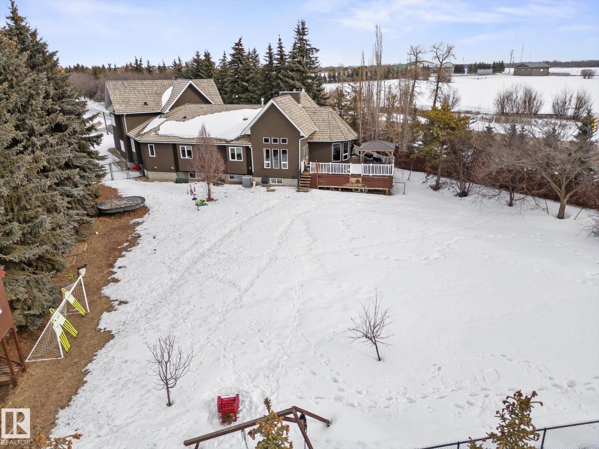 Stunning modern home in gorgeous Allin Ridge Estates. This beautiful home has over 2700 sq ft plus a fully finished basement, 6 bedrooms, 5 bathrooms, and a FIVE CAR GARAGE situated on 0.6 acres WITH FULL CITY SERVICES. The main floor offers 20' soaring ceilings and high-end finishings. Chef's gourmet kitchen has stunning quartz countertops, 10' island, WOLF GAS COUNTERTOP STOVE, and expansive countertops. Large eating nook and adj. family room with 2 way gas fireplace are perfect for cozy family activities. Main floor offers 3 bedrooms, 3 bathrooms, and laundry. Primary bedroom is on its own level for maximum privacy with it's own gas fireplace and hotel styled-ensuite. Fully dvp basement has 2 bedrooms, full bathroom w. steam shower, media room, and rec room. Extra large garage can house 5 or 6 vehicles! 0.6 acres has private, fenced yard w. deck and BBQ area.