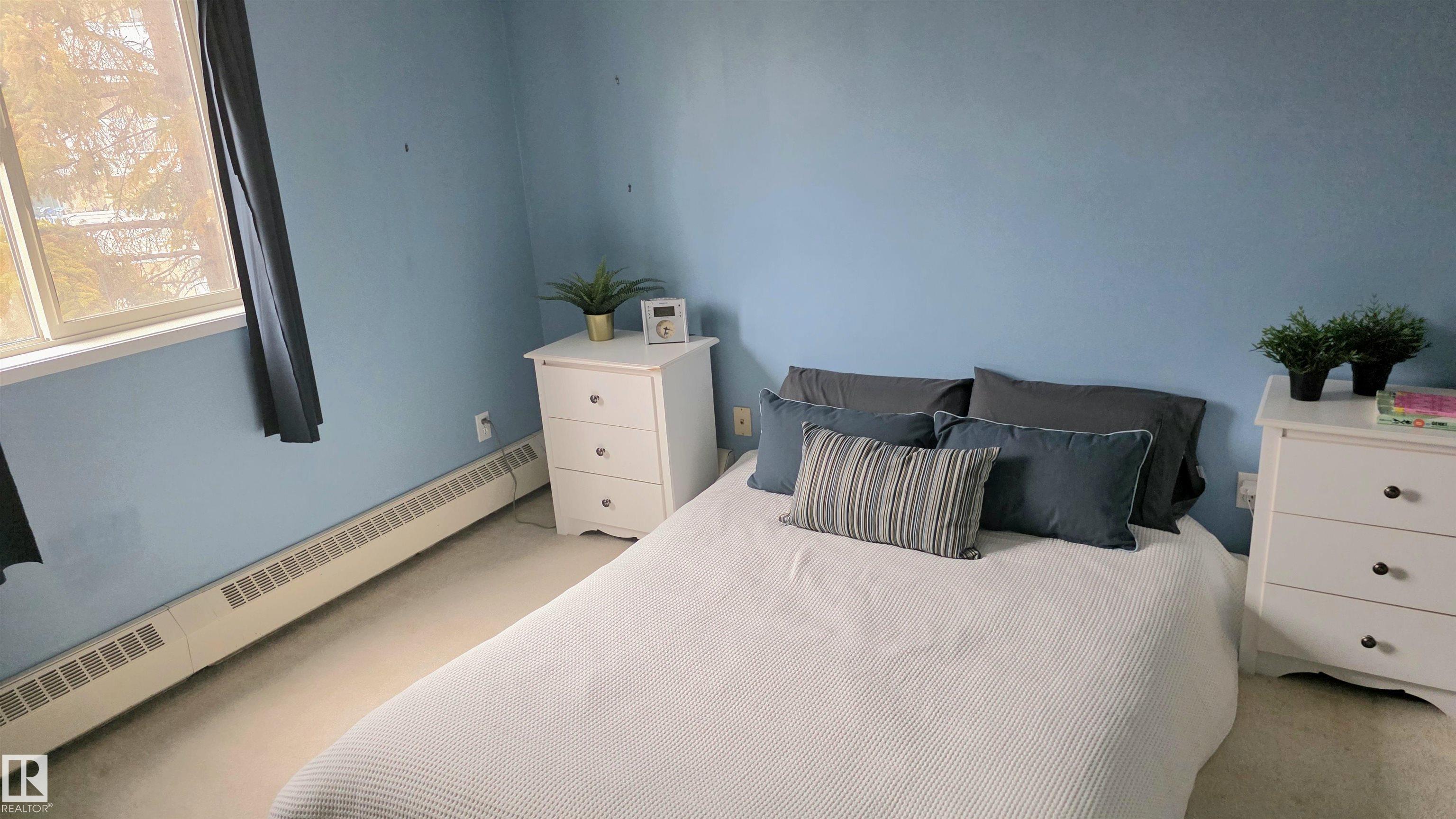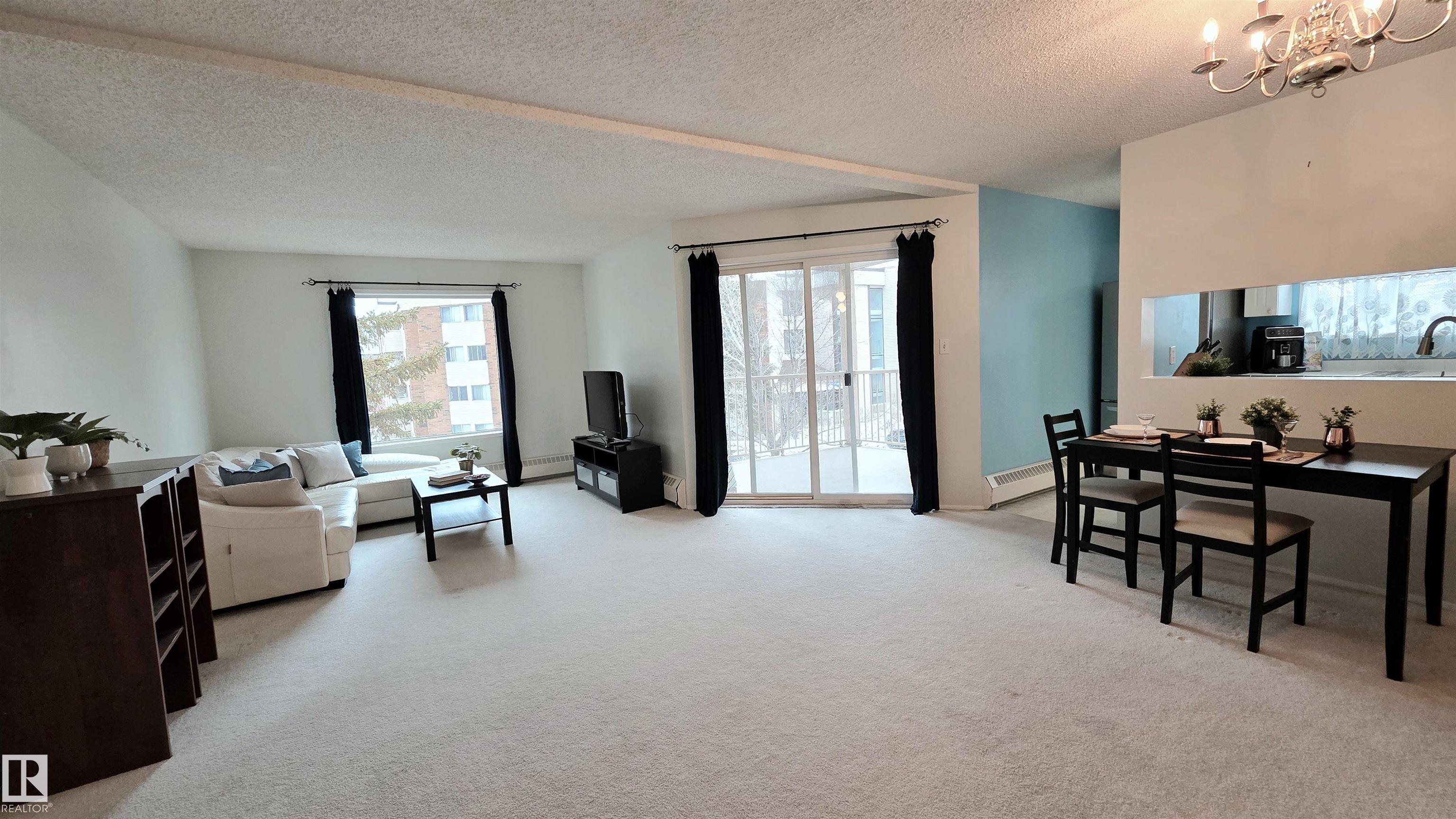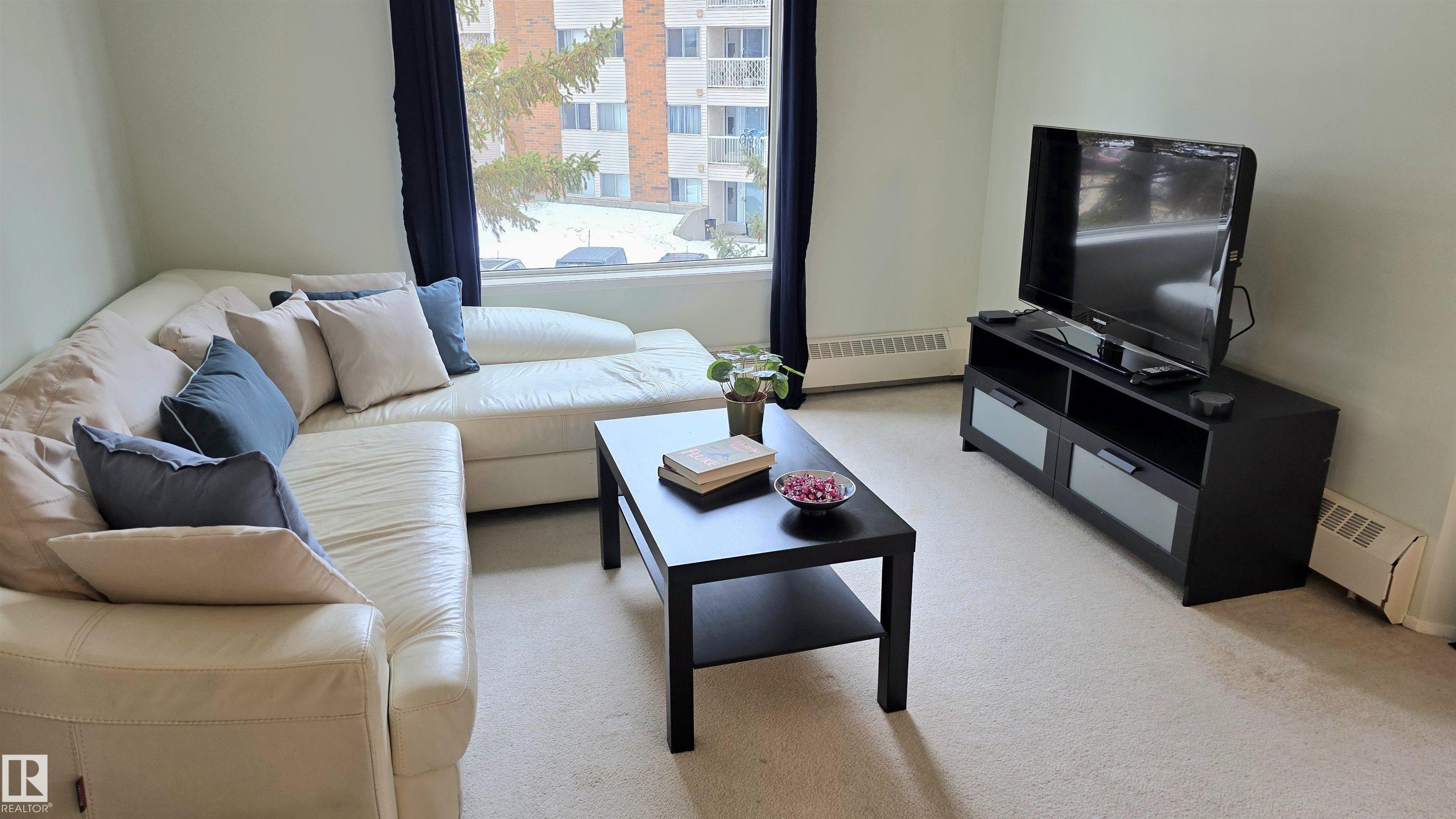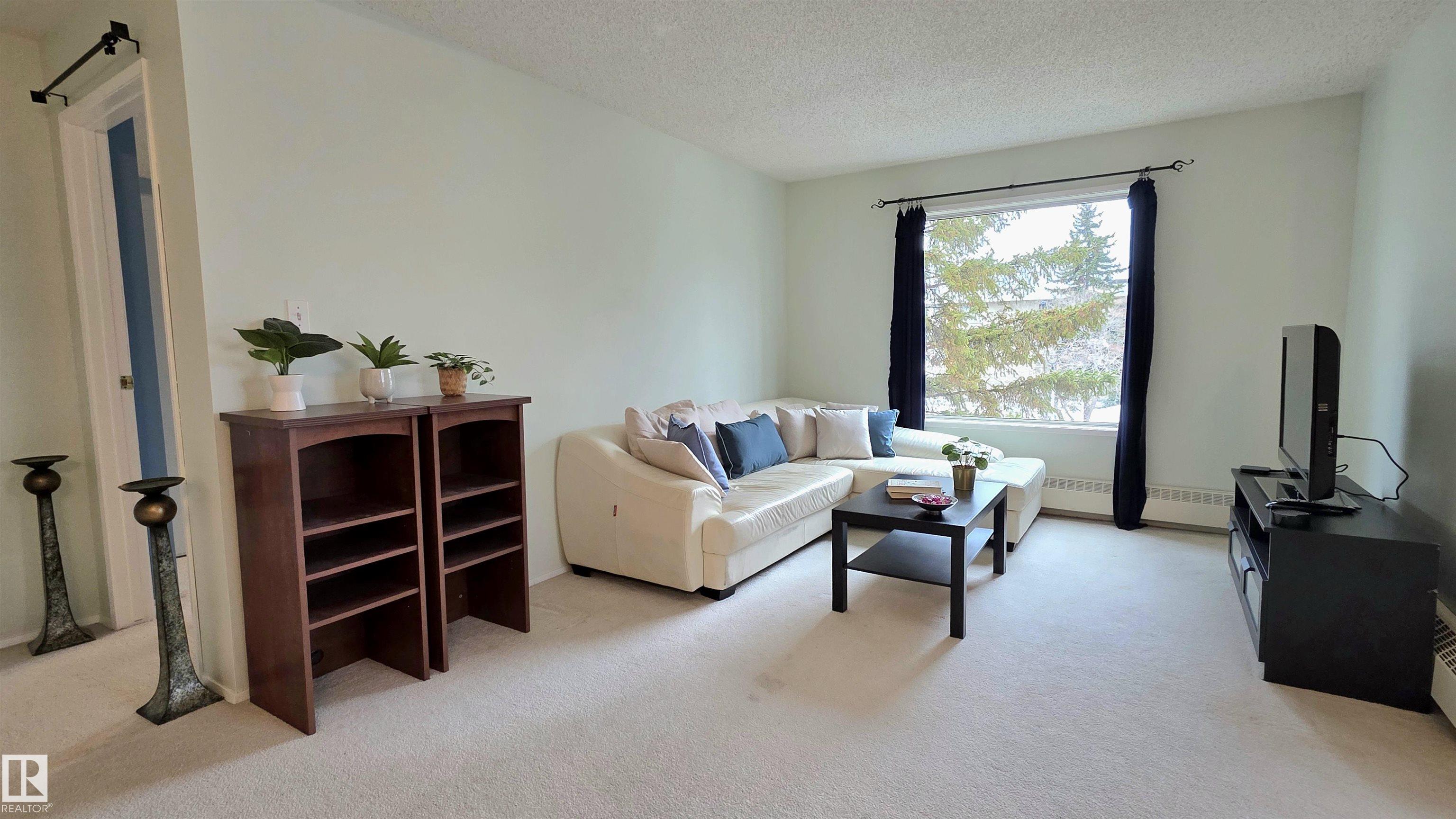 This unit comes with TWO 4-piece bathrooms and TWO large bedrooms. The unit has undergone fairly extensive refurbishment including upgraded mosaic countertops, new piping under bathroom sinks, new sink faucets, and new paint on all major surfaces. The balcony is corner situated and discrete. The building is conveniently located next to several shopping centres that host a number of grocery stores, registry services, a library, a YMCA, schools, a hospital, and of course the unit is also near the largest mall in Canada (roughly 30 minute walking distance or 5 minutes by car). The unit comes with one assigned parking stall. Condo fees include heat, water/sewer, garbage disposal, and exterior insurance. Units like this are rarely available and this one might be perfect for an investor, first time buyer, or someone looking to downsize. Light rail accessible soon from West Edmonton Mall and ETS bus stop very close by.