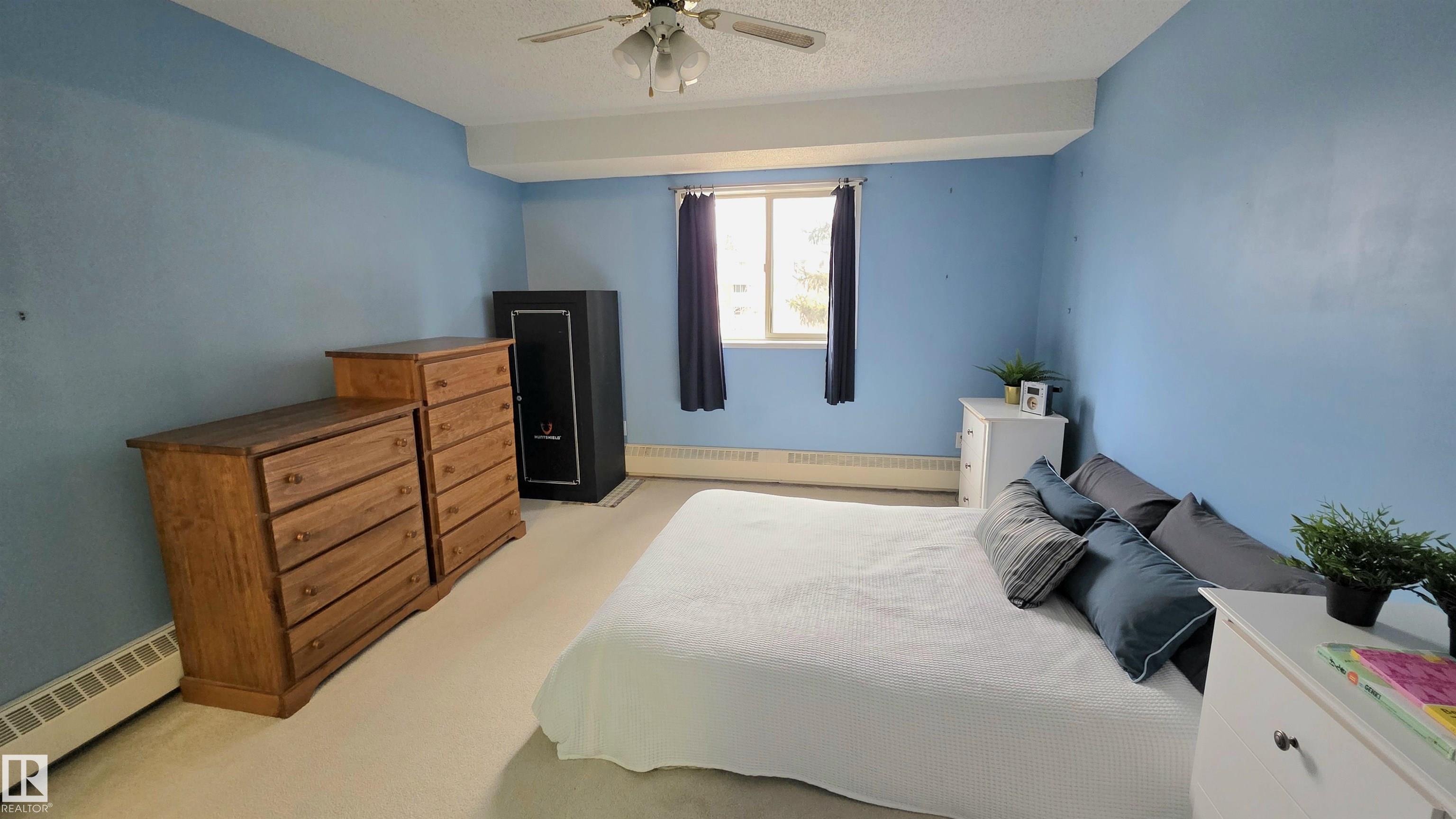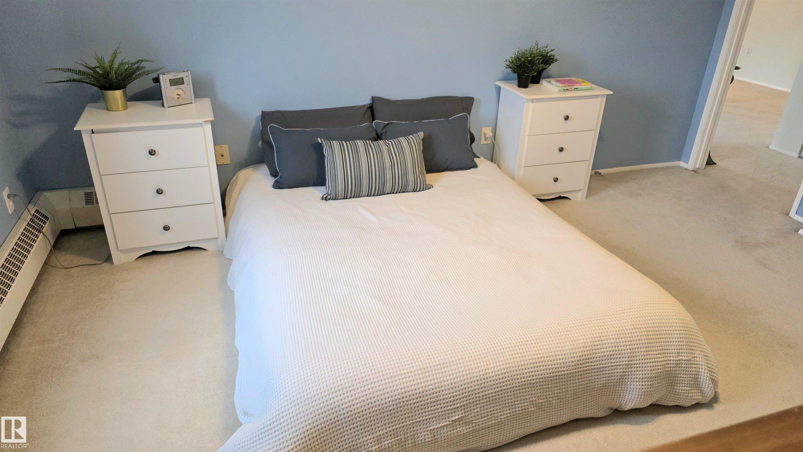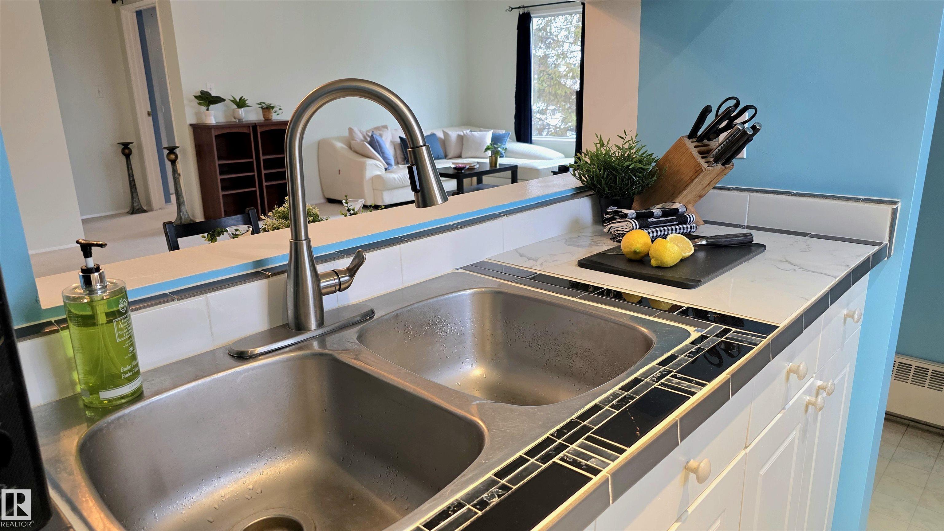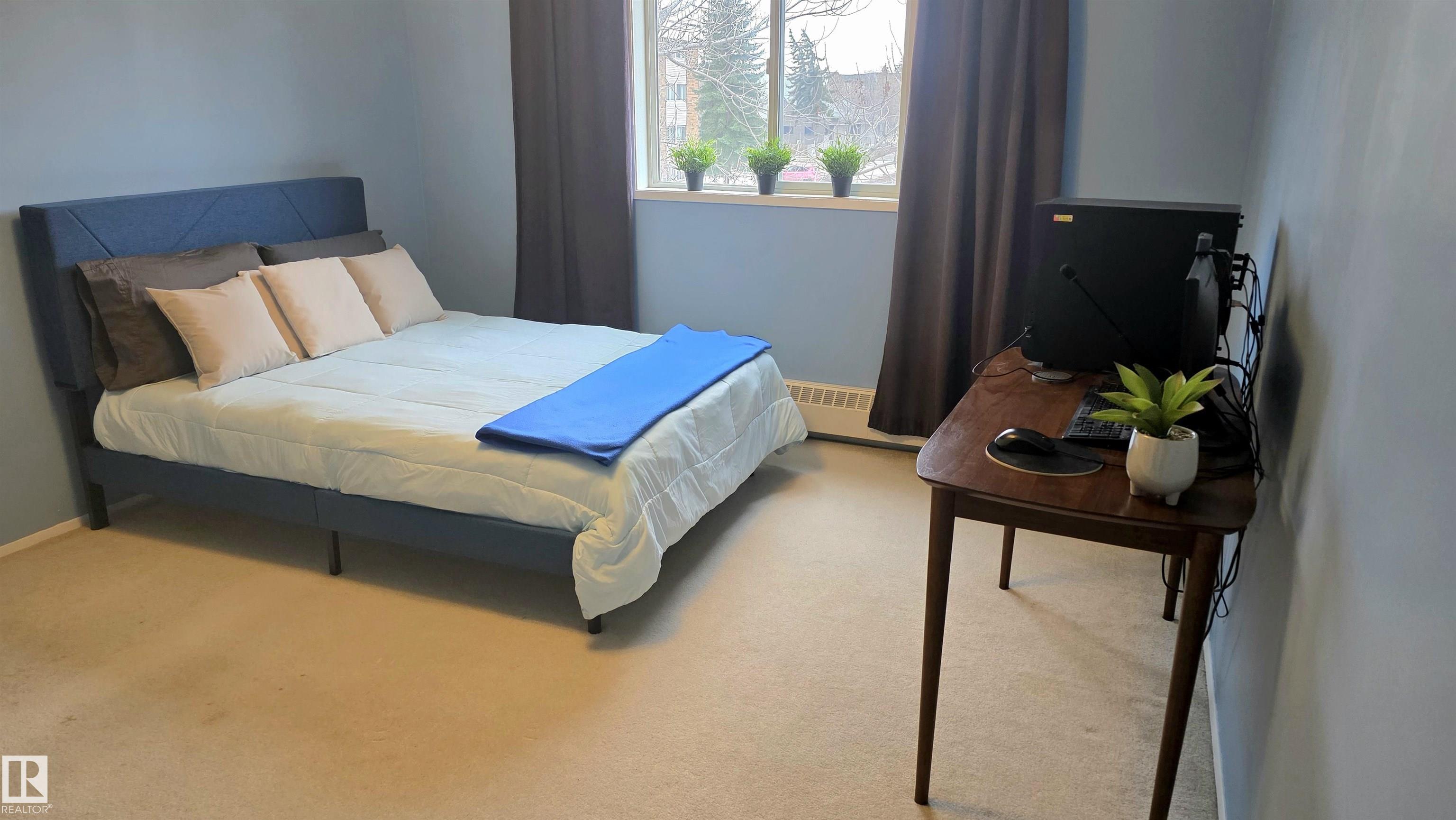 This unit comes with TWO 4-piece bathrooms and TWO large bedrooms. The unit has undergone fairly extensive refurbishment including upgraded mosaic countertops, new piping under bathroom sinks, new sink faucets, and new paint on all major surfaces. The balcony is corner situated and discrete. The building is conveniently located next to several shopping centres that host a number of grocery stores, registry services, a library, a YMCA, schools, a hospital, and of course the unit is also near the largest mall in Canada (roughly 30 minute walking distance or 5 minutes by car). The unit comes with one assigned parking stall. Condo fees include heat, water/sewer, garbage disposal, and exterior insurance. Units like this are rarely available and this one might be perfect for an investor, first time buyer, or someone looking to downsize. Light rail accessible soon from West Edmonton Mall and ETS bus stop very close by.