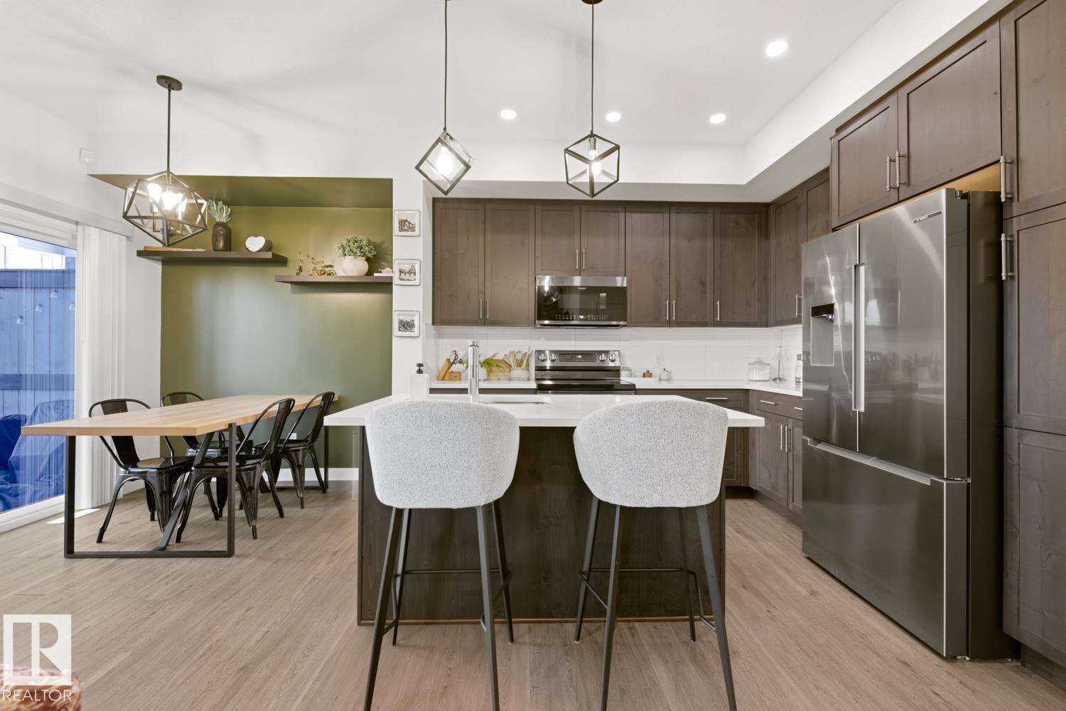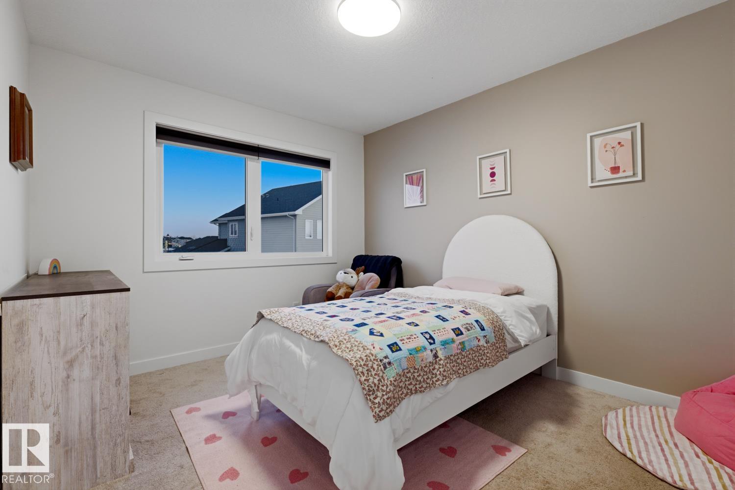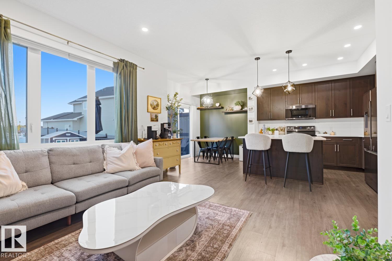 Discover elevated living in the sought-after community of Genesis on the Lakes. This beautifully maintained half duplex offers comfort, style, and everyday convenience. Featuring 3 bedrooms upstairs and a versatile fourth bedroom in the partially finished basement, ideal for guests, a home office, or growing families. Step outside to your south-facing, fully fenced backyard complete with a stunning two-tier deck, perfect for relaxing or entertaining. Enjoy being steps from scenic walking trails, parks, a skating rink, and the lake for year-round enjoyment. Additional highlights include central A/C, a gas fireplace, rough-ins for a future basement bathroom, builder upgrades, and remaining new home warranty. Ideal for first-time buyers, young families, or professionals seeking a peaceful escape from the city without compromising on accessibility. Enjoy the convenience of nearby amenities: gas station, daycare & OSC, pharmacy, and more. Well-maintained and ready for its next chapter, your opportunity awaits!
