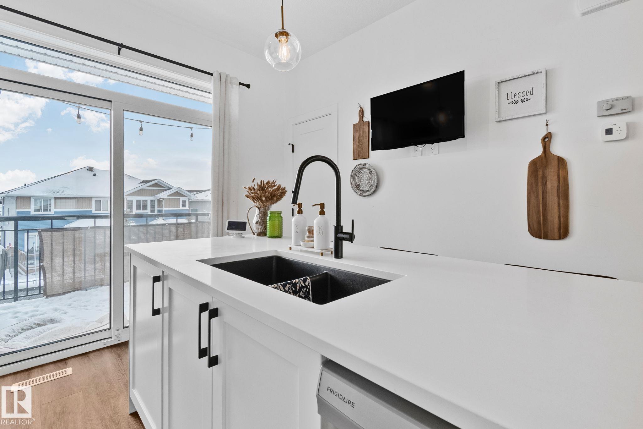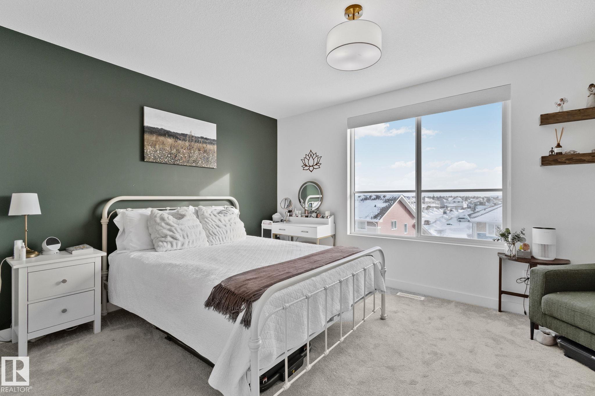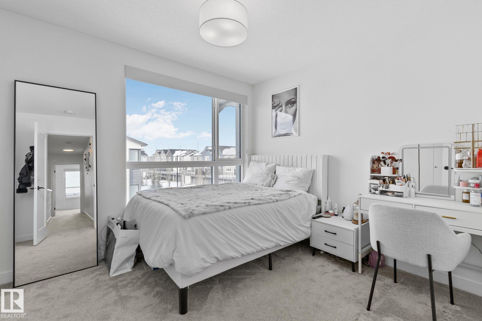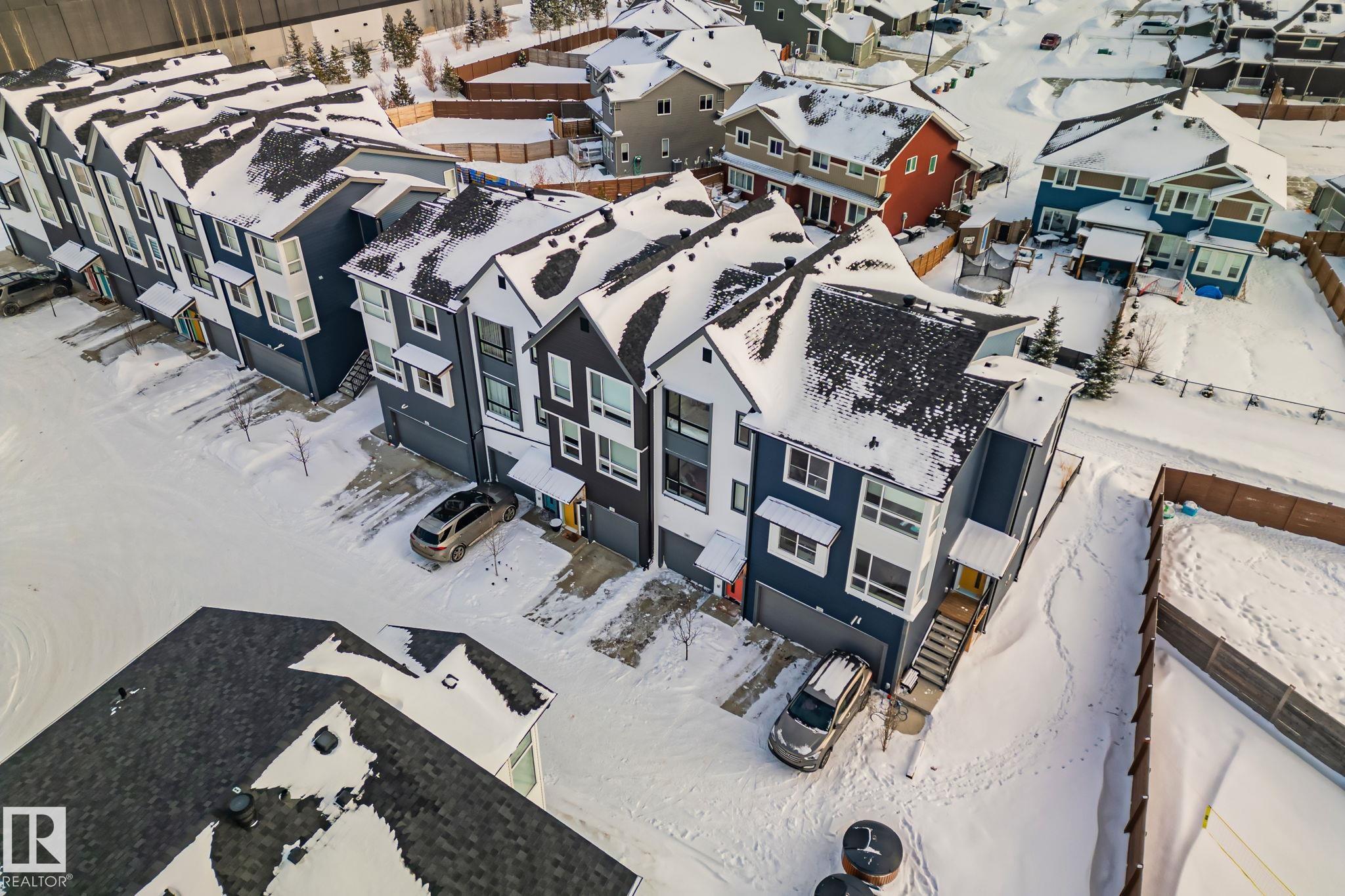 This beautifully upgraded 3-level townhouse is ideally positioned second from the end unit and tucked away at the back of Cobalt Beach, offering extra privacy and a serene setting as it backs onto green space. The open-concept main floor features a bright kitchen, dining area, and living room centered around a custom-mantel fireplace with built-in shelving. A convenient 2-piece bathroom completes the level. Upstairs, you'll find two spacious primary ensuites, each designed with floating counters, quartz surfaces, upgraded black-and-gold hardware, and tiled showers?one with a tub/shower combo. A laundry closet adds everyday convenience. The ground floor includes a separate-entrance bedroom and a full 3-piece bathroom, perfect for guests, extended family, or a private workspace. Additional upgrades include quartz throughout, designer lighting, and air conditioning. As part of the HOA, residents enjoy access to Jubilation Beach, creating a perfect blend of comfort, style, and lifestyle amenities.
