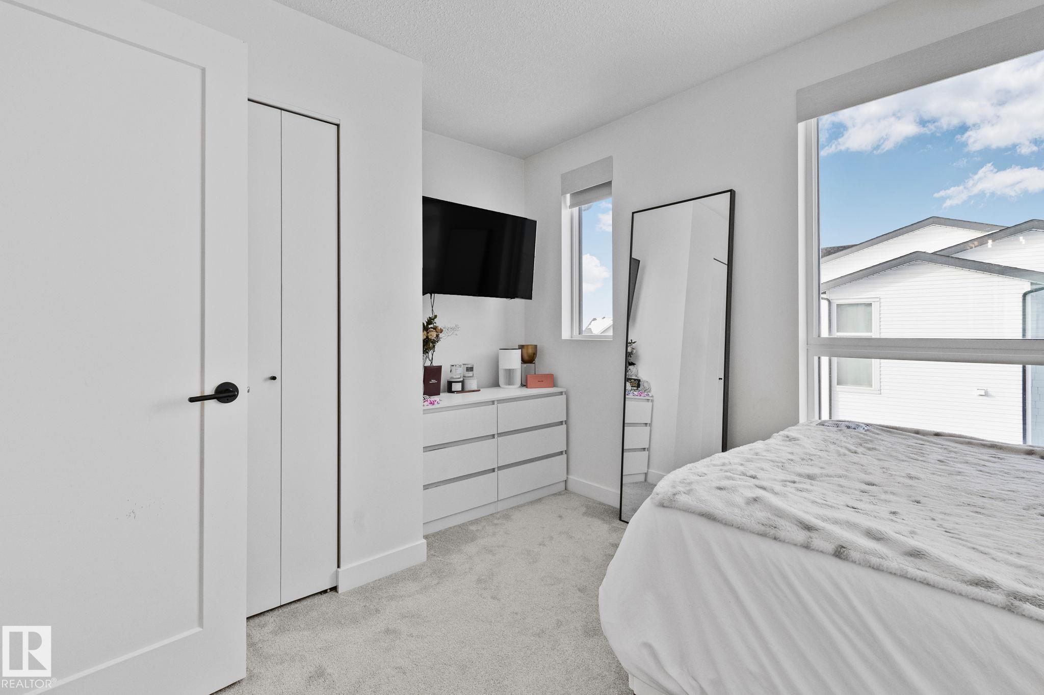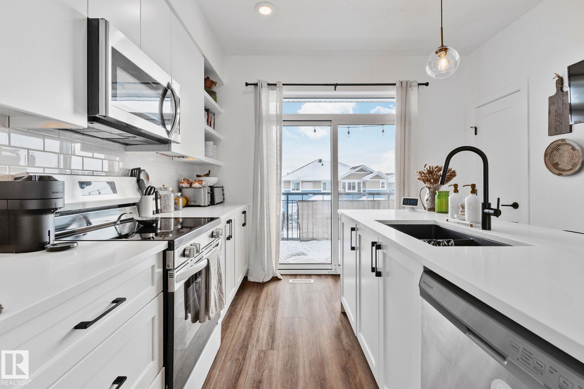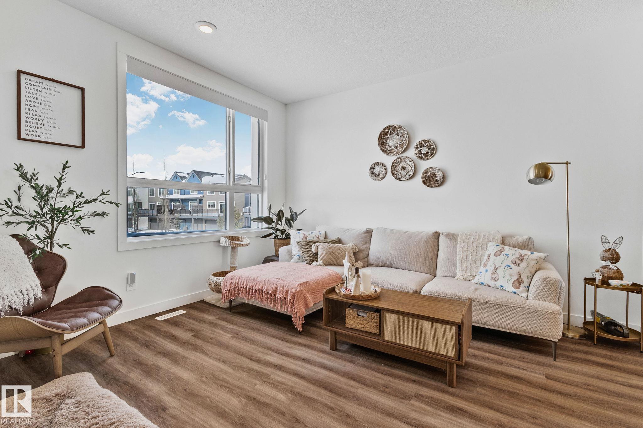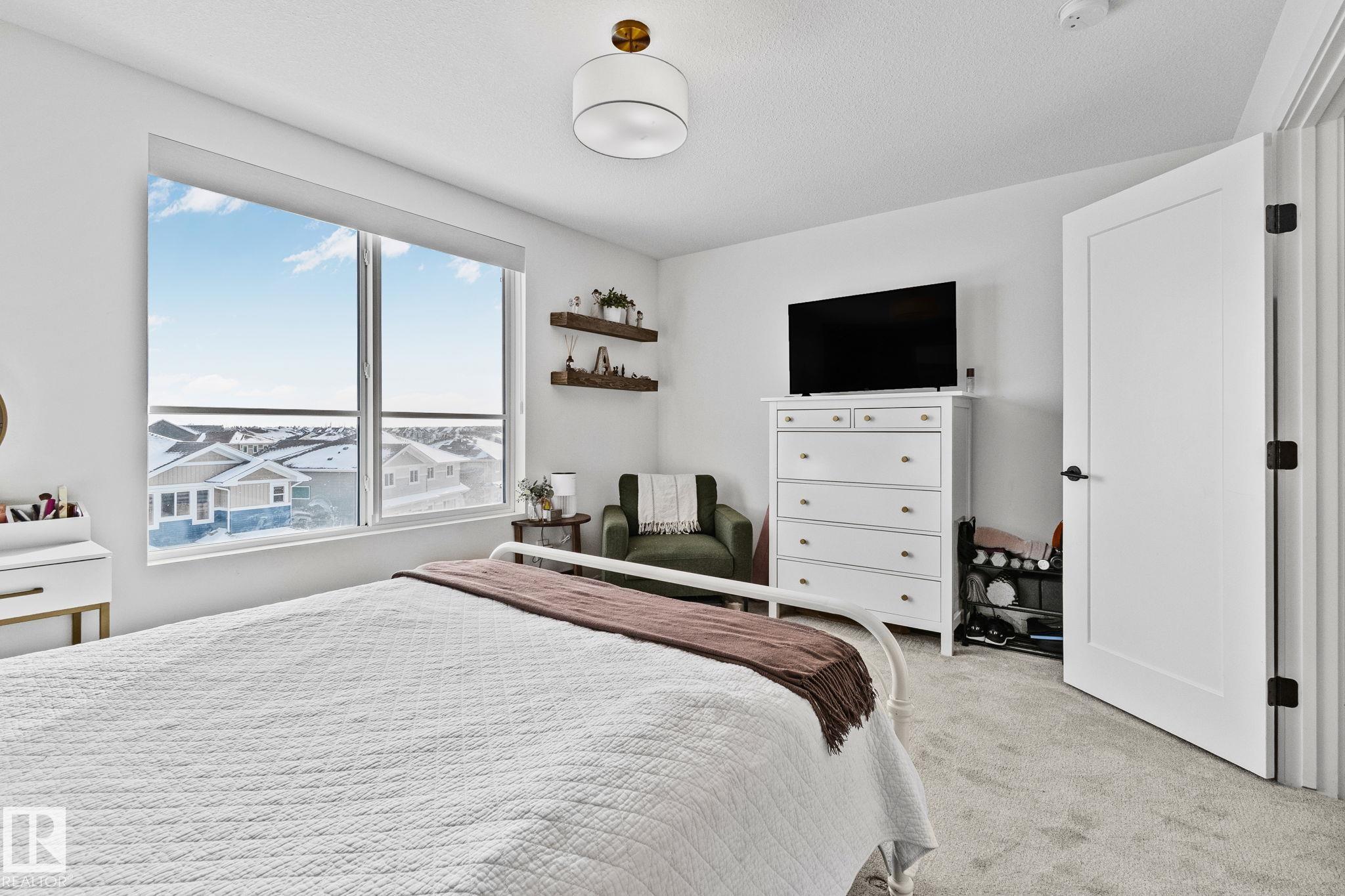 This beautifully upgraded 3-level townhouse is ideally positioned second from the end unit and tucked away at the back of Cobalt Beach, offering extra privacy and a serene setting as it backs onto green space. The open-concept main floor features a bright kitchen, dining area, and living room centered around a custom-mantel fireplace with built-in shelving. A convenient 2-piece bathroom completes the level. Upstairs, you'll find two spacious primary ensuites, each designed with floating counters, quartz surfaces, upgraded black-and-gold hardware, and tiled showers?one with a tub/shower combo. A laundry closet adds everyday convenience. The ground floor includes a separate-entrance bedroom and a full 3-piece bathroom, perfect for guests, extended family, or a private workspace. Additional upgrades include quartz throughout, designer lighting, and air conditioning. As part of the HOA, residents enjoy access to Jubilation Beach, creating a perfect blend of comfort, style, and lifestyle amenities.