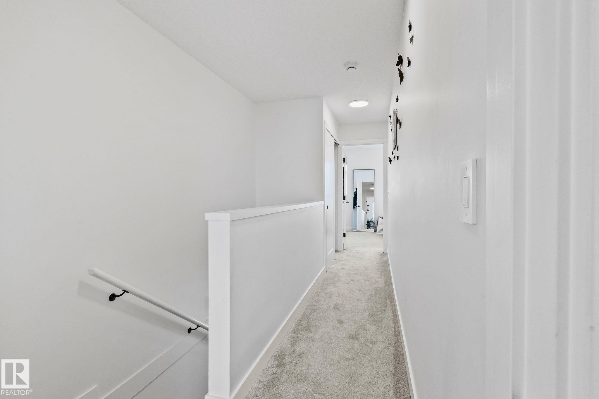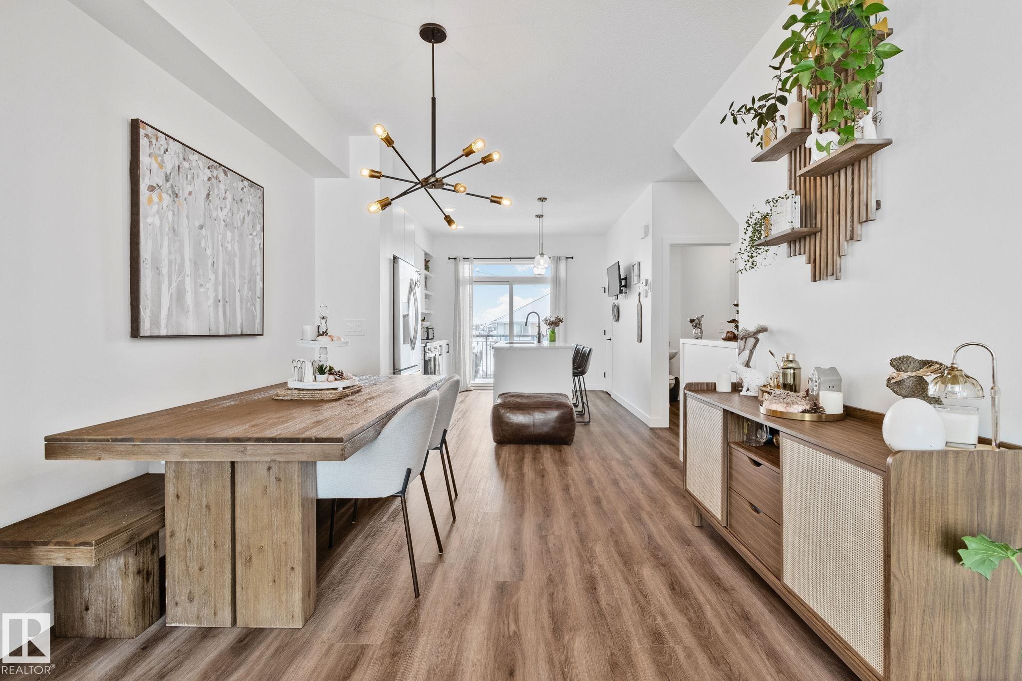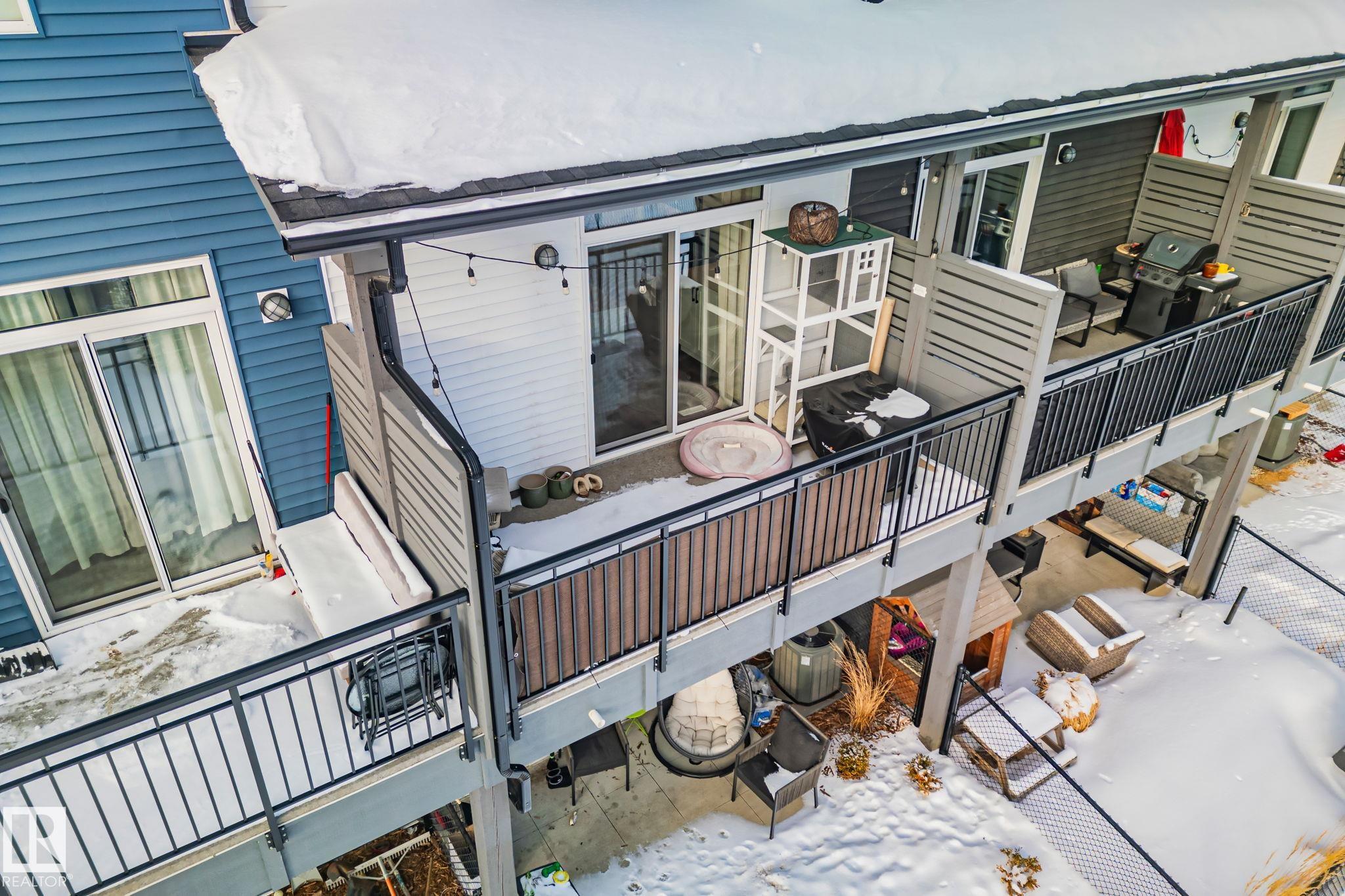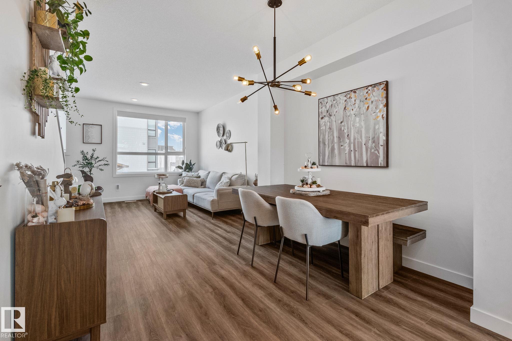 This beautifully upgraded 3-level townhouse is ideally positioned second from the end unit and tucked away at the back of Cobalt Beach, offering extra privacy and a serene setting as it backs onto green space. The open-concept main floor features a bright kitchen, dining area, and living room centered around a custom-mantel fireplace with built-in shelving. A convenient 2-piece bathroom completes the level. Upstairs, you'll find two spacious primary ensuites, each designed with floating counters, quartz surfaces, upgraded black-and-gold hardware, and tiled showers?one with a tub/shower combo. A laundry closet adds everyday convenience. The ground floor includes a separate-entrance bedroom and a full 3-piece bathroom, perfect for guests, extended family, or a private workspace. Additional upgrades include quartz throughout, designer lighting, and air conditioning. As part of the HOA, residents enjoy access to Jubilation Beach, creating a perfect blend of comfort, style, and lifestyle amenities.