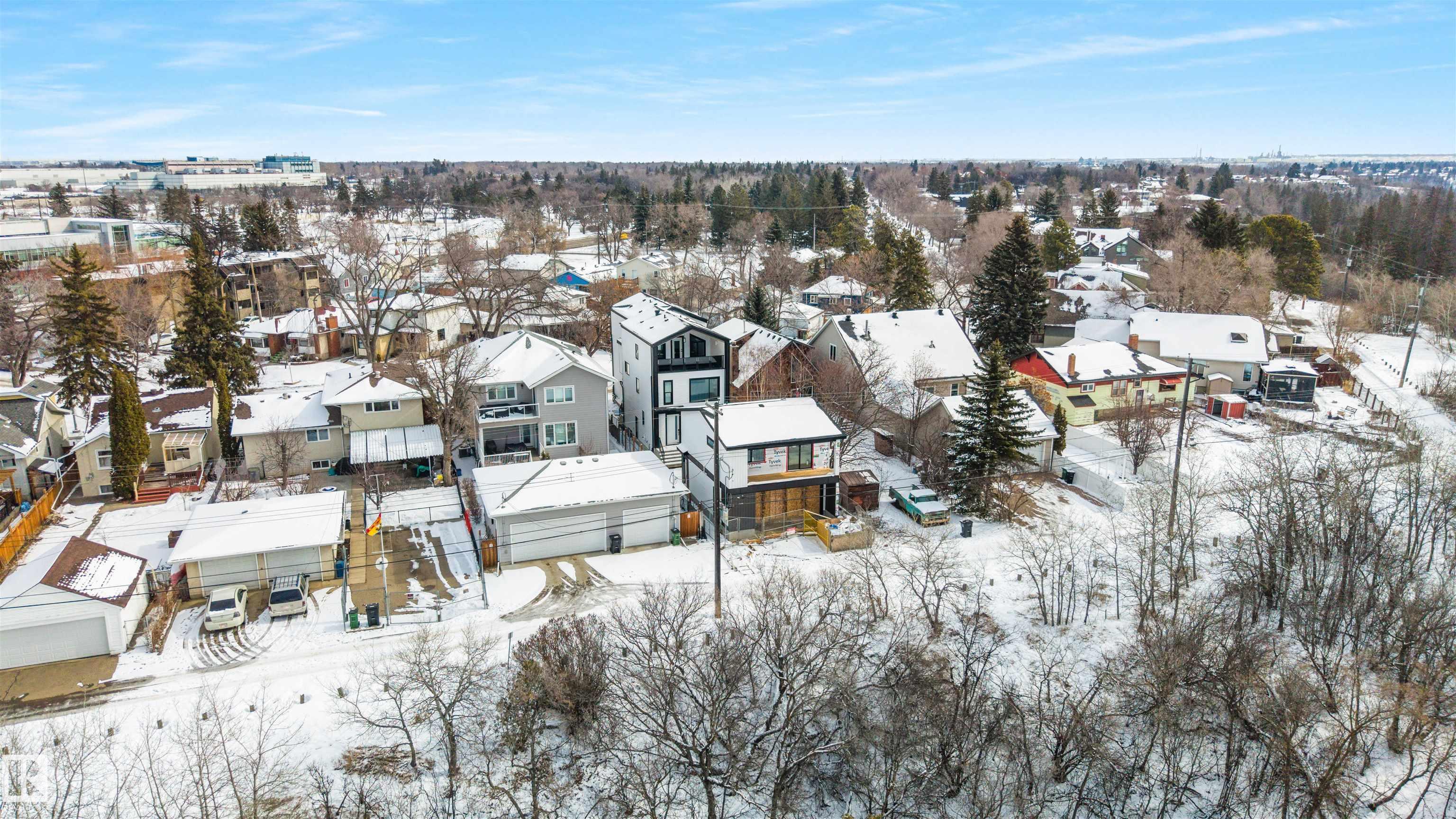 Rare 5-unit income property in Cromdale, backing onto Rat Creek with views of downtown and the stadium. This brand-new front-back duplex offers 2 three-storey upper units (3 bedrooms + loft each), 2 one-bedroom basement suites, and a 2-bedroom garage suite?all with separate entrances. Upper units feature spacious layouts with covered patios off the loft level. The garage suite also includes a balcony overlooking Rat Creek. Ideal for investors or multi-generational living. Situated on a longer lot with ample parking, including an oversized double detached garage, rear parking pad, and additional street parking?an exceptional feature for tenants. Projected rental income of approximately $8,000?$9,000/month (buyer to verify), offering strong cash flow potential. Conveniently located near Concordia University of Edmonton, transit, and major amenities.