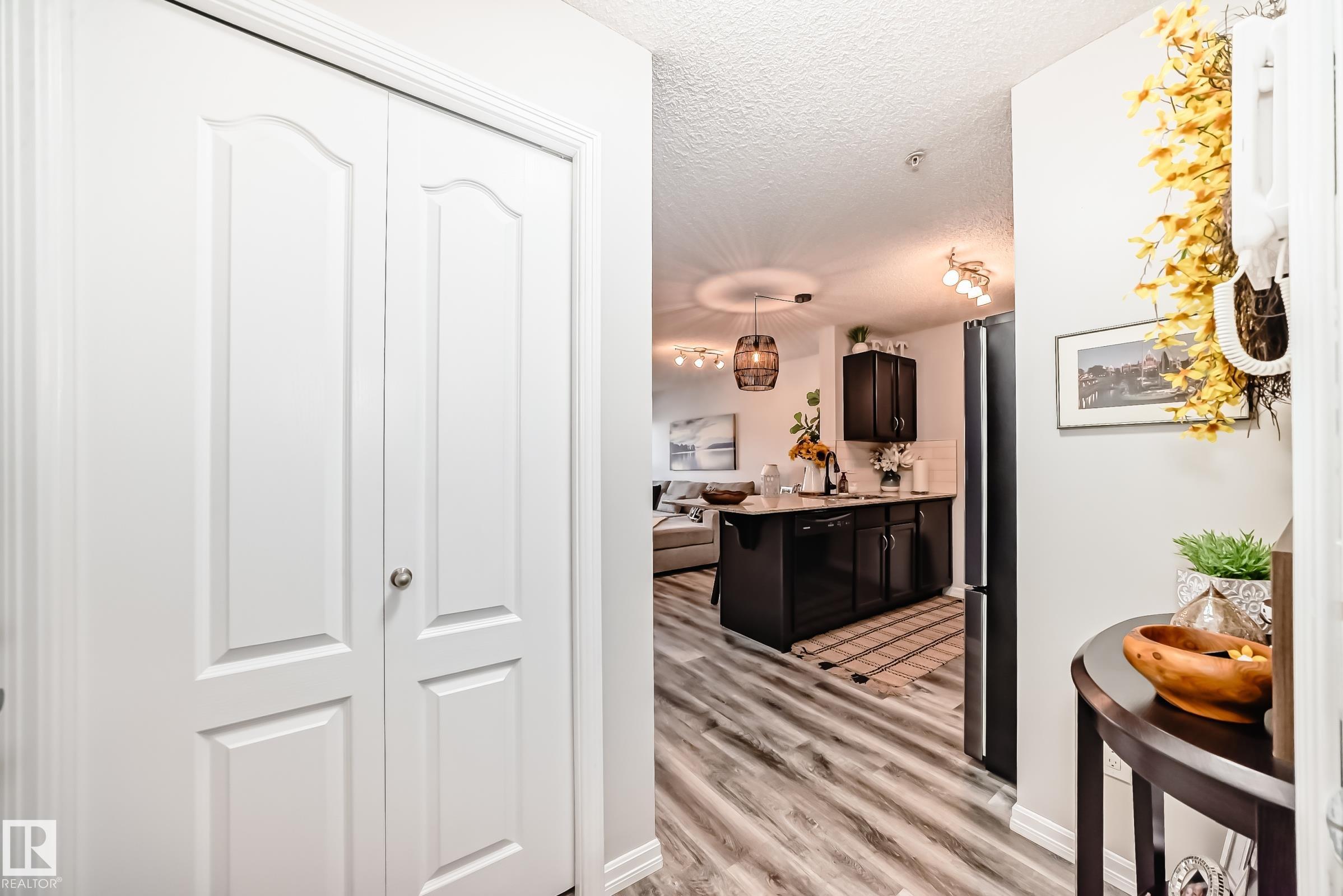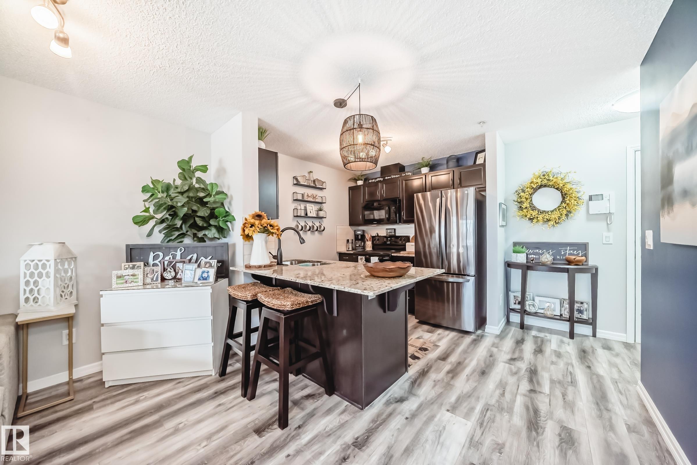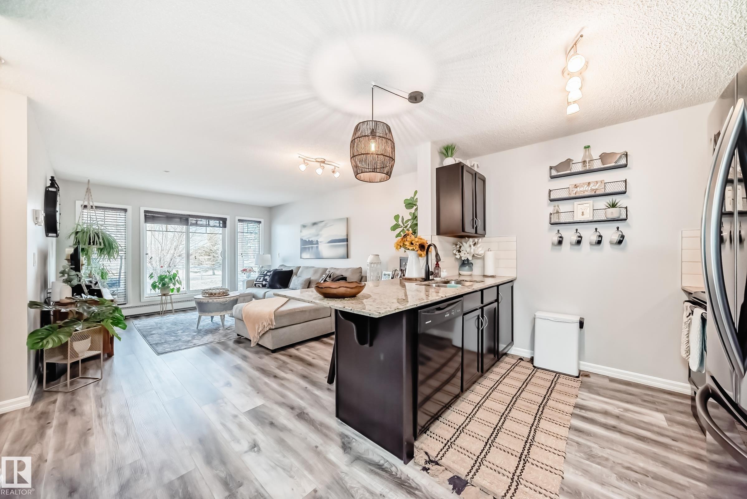 Beautiful, modern, and exceptionally well-maintained, this main floor unit shows like new! FULLY FURNISHED, upgraded 1-bedroom condo in Windsor Park offers both style and convenience. The kitchen is a standout, featuring rich dark espresso cabinetry, sleek black appliances, and elegant granite countertops?perfect for both everyday living and entertaining. The spacious living room is filled with natural light and opens onto a private deck through patio doors, creating a seamless indoor-outdoor flow. The primary bedroom is generously sized, providing a comfortable retreat. Additional highlights include in-suite laundry, a full 4-piece bathroom, and a versatile den/storage area. Stall parking is also included. Some of the upgrades : Newer flooring and refrigerator. Located in a clean, well-maintained building with a fitness room, this home is ideally situated within walking distance to restaurants, shopping, and everyday amenities. Perfect for first-time buyers or those looking to downsize in style!