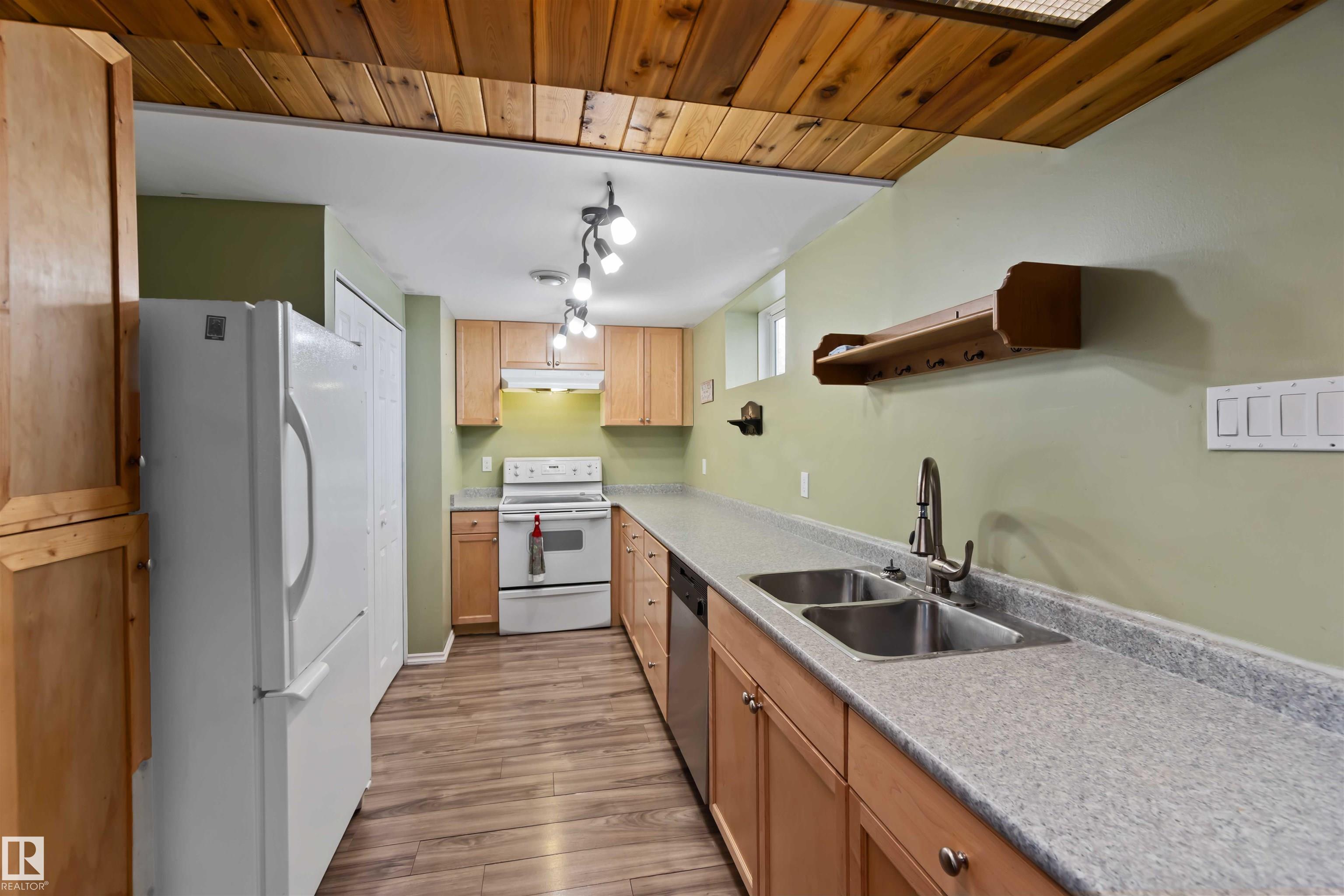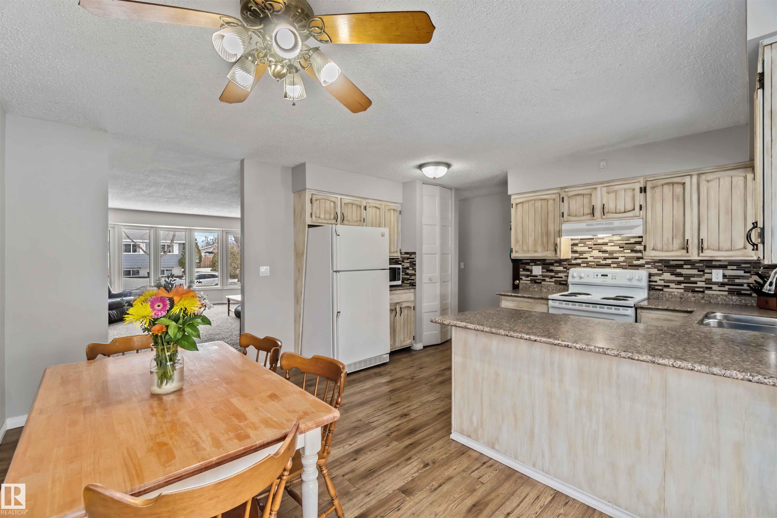 Wonderful family home located in the Pineview community. The main level features 3 bedrooms, 4 pc bathroom & 2 pc ensuite in the primary. The eat-in kitchen cabinets are modernized complimenting the upgraded countertops & backsplash. Great sized eating space looking onto the back covered deck - perfect space for private outdoor enjoyment. The laundry closet was converted to accommodate a stacked washer & dryer. The fully finished basement has with 3 more bedrooms, a 4 pc bathroom, family room & a 2nd kitchen - great in-law suite or generational living - plus 2nd laundry facilities in the utility room! Newer triple vinyl windows & shingles on house & garage. The back yard is fully fenced & has a small dog run, raised garden bed, storage shed & a detached 25'x21'garage that is partly insulated & has 220V power. Loads of outdoor parking space on the concrete pad in front of the garage. Ideally located to both public & catholic schools, outdoor rink and green space. ... it's a must see!