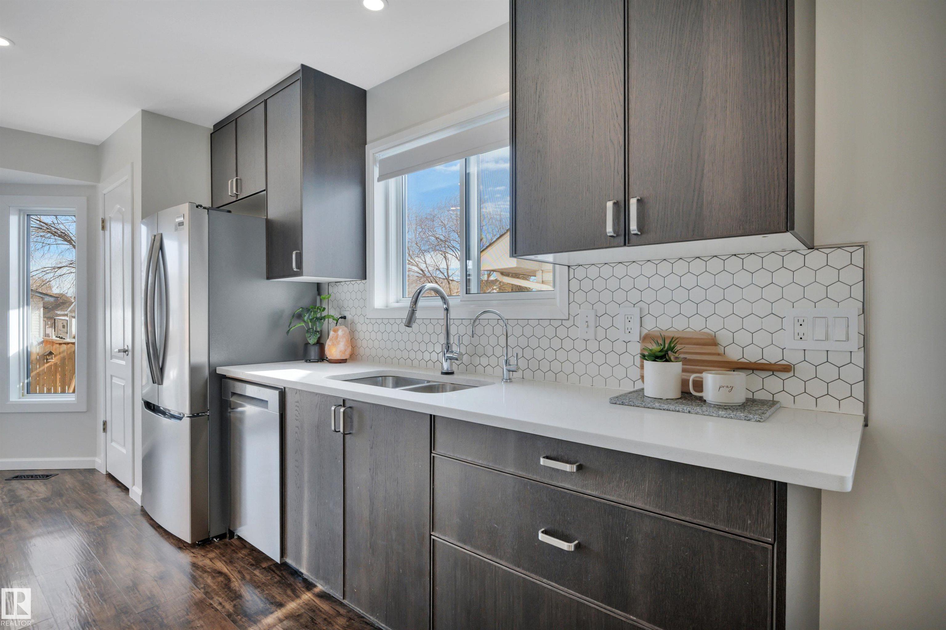 Modern upgrades & spacious family living in this beautifully refreshed 1296sq ft bi-level nestled in the heart of Davidson Creek with 5 BEDROOMS, 3 FULL BATHS & double attached garage! Step inside to find a bright open concept main floor featuring modern colour palette, vaulted ceiling & stylish LVP flooring that perfectly complements the UPDATED KITCHEN. The heart of the home boasts a family sized island, QUARTZ COUNTERTOPS, reverse osmosis water sysyem & NEWER S/S APPLIANCES. You'll appreciate an UPDATED main 4pc BATH (2022) & 3 bedrooms including primary w/walk-in closet & 3pc ensuite updated in 2025. The lower level offers an oversized family room with gas fireplace, 2 large bedrooms & 3pc bath. A fully fenced & landscaped yard with newer deck where you will enjoy spending time with family & friends. Major updates include windows & exterior doors (2022); new blower & motherboard for furnace (2025); plumbing update to PEX. A home that balances comfort, convenience & everyday living!