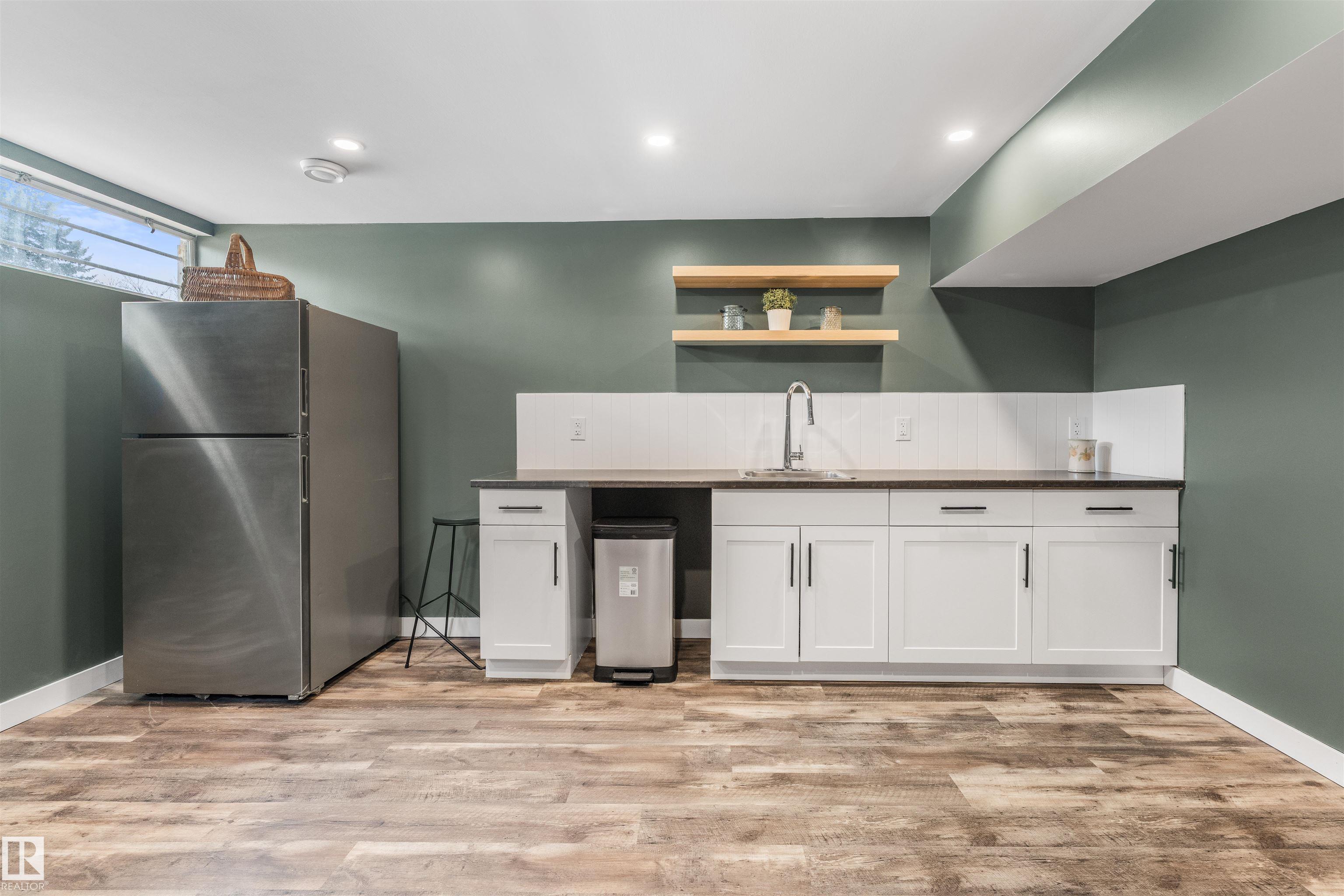 Step into this fully renovated custom-built executive bungalow offering a clean blend of style and function. A spacious foyer opens to a bright, open-concept layout with soaring ceilings and a sunken living room with a wood-burning fireplace. The kitchen features custom cabinetry, quality countertops, and modern lighting. The main floor includes a large primary bedroom with walk-in closet and ensuite, plus two additional bedrooms and a full bathroom. The fully finished basement?with separate entrance?offers excellent suite potential, complete with a large living area, wet bar, two generous bedrooms (one with a 2-piece ensuite), and a fully updated bathroom with modern finishes. Set on one of the largest lots in Mills Haven, the fully fenced backyard includes two storage sheds and plenty of space to enjoy. Additional upgrades include a brand new furnace and sewer line, adding long-term value and peace of mind. Incredible location right in the middle of Sherwood Park, close distance to all amenities.