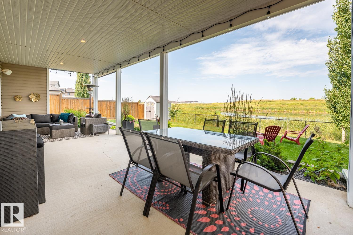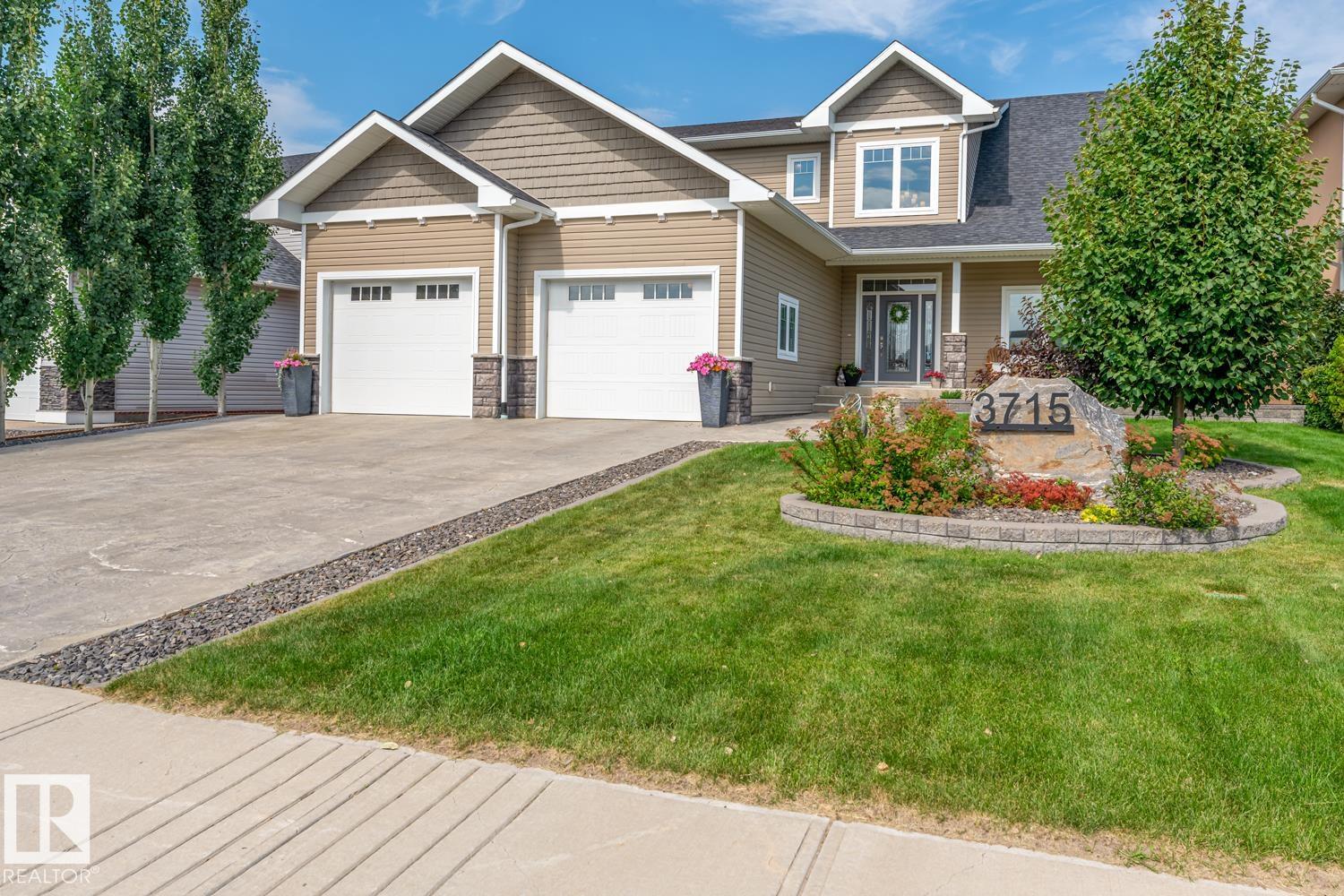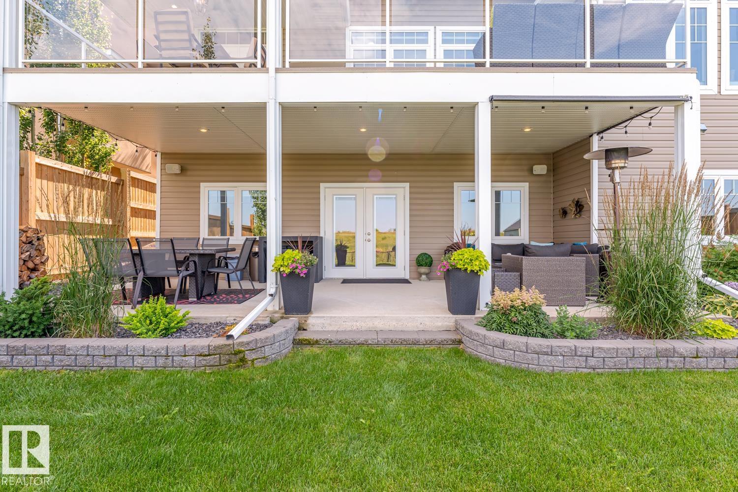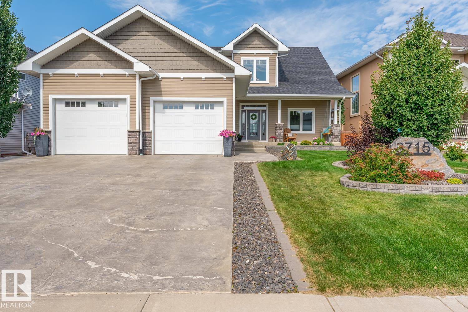 Custom crafted 2750 sqft. 1-1/2 Story with double attached heated garage located in Beau Vista. Welcoming covered veranda opens up to a spacious foyer, Kitchen has custom white cabinetry, w/under cabinet lighting, gas stove, Stainless steel appliances, pantry, quartz tops. Island w/sink & seating. Living room ceiling is open to the second floor with dormer and has built in cabinetry on either side of a gas fireplace. Big bright triple pane windows & luxurious hardwood floors throughout. 7 bdrms & 4 bath, Master suite w/ coffered ceilings walk-in closet, huge ensuite w/ tiled shower, heated floor, huge soaker tub & 2 sinks. Main floor laundry, Upper floor with open office/reading area, Fully developed walk out basement incl. large Rec room w/ wet bar, BI speakers in/out door, underslab heating & A/C, Central Vac and R/O, H/W on demand. Enjoy the views from the covered deck or lower walk out patio w/ RI for Hot tub, overlooking the ponds and beautifully landscaped fenced yard w/ firepit. Home of a LIFETIME!