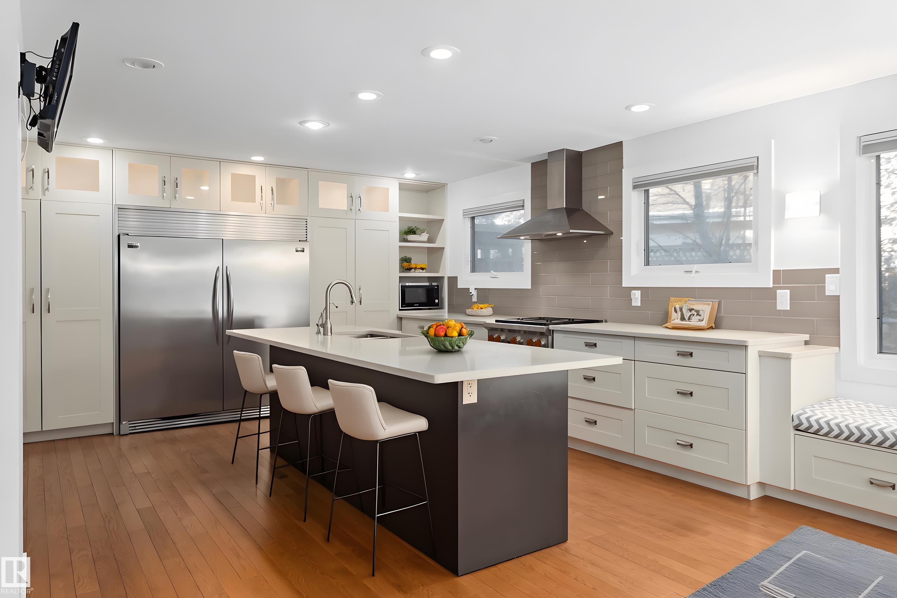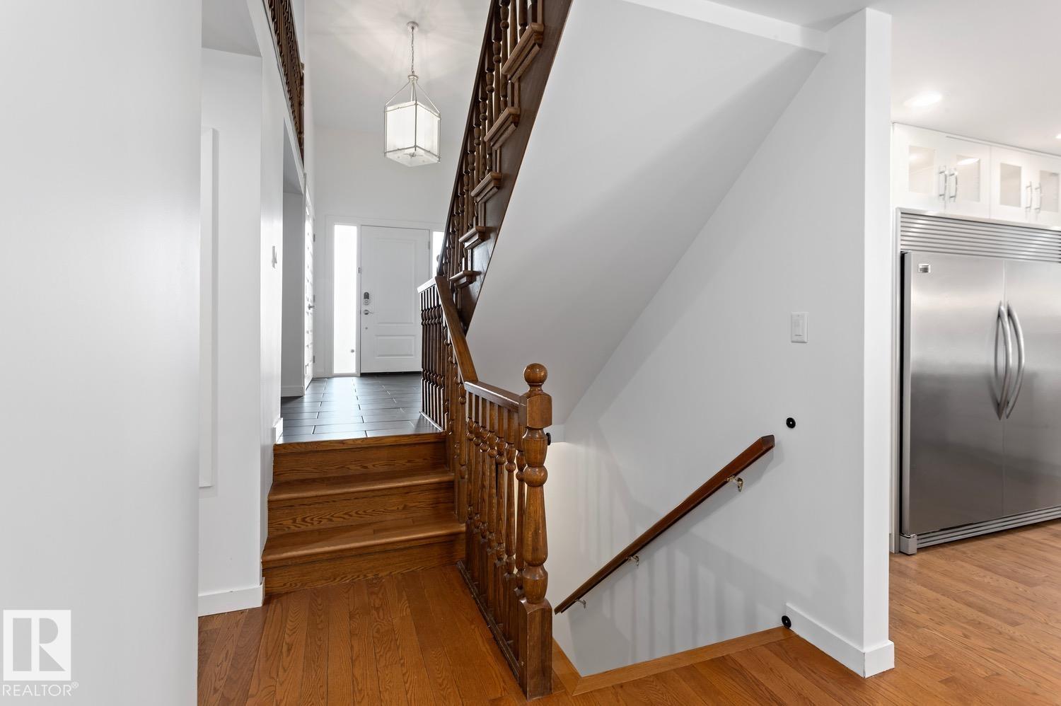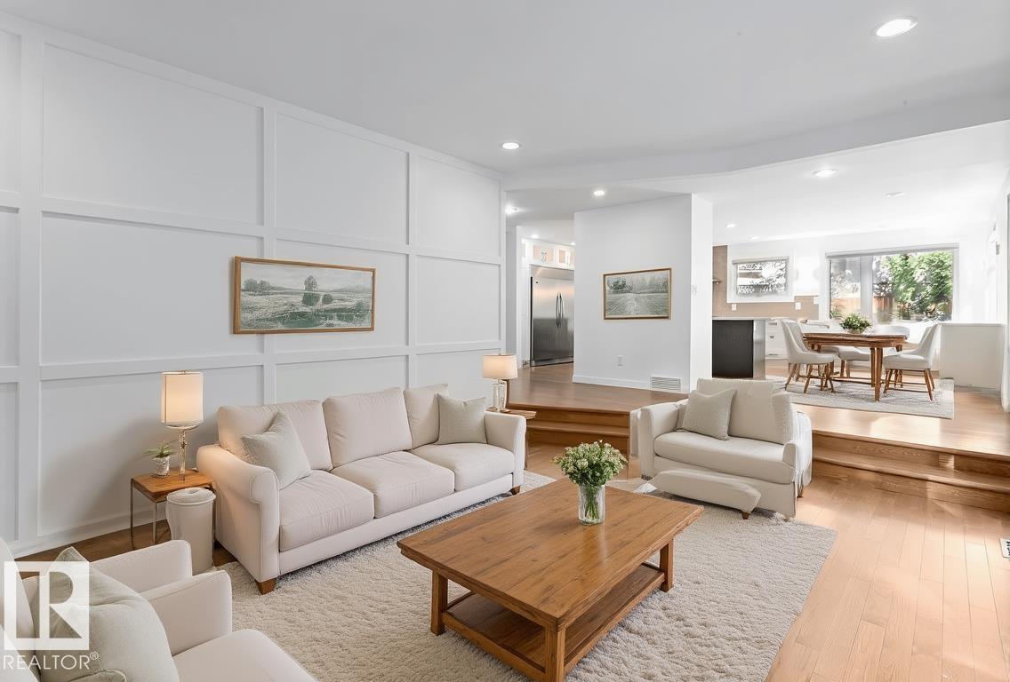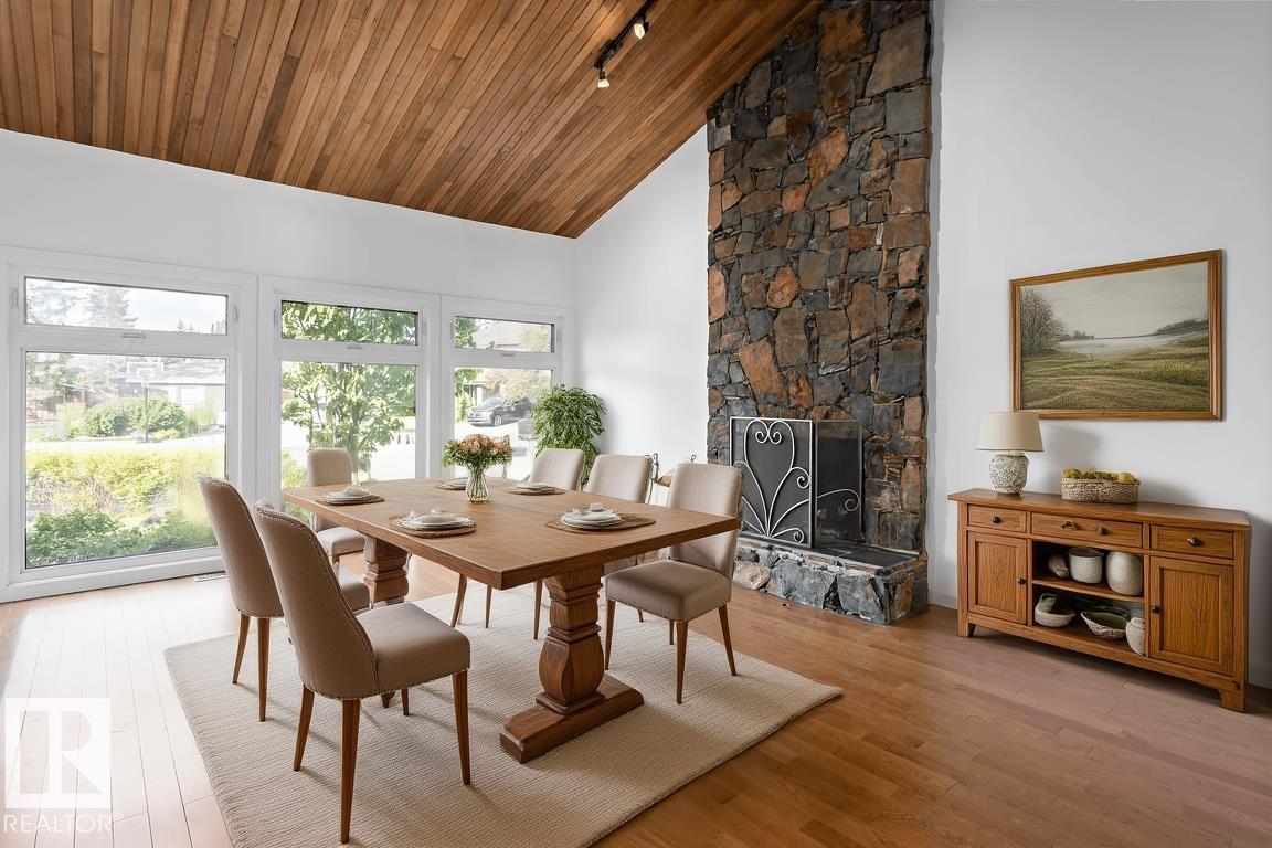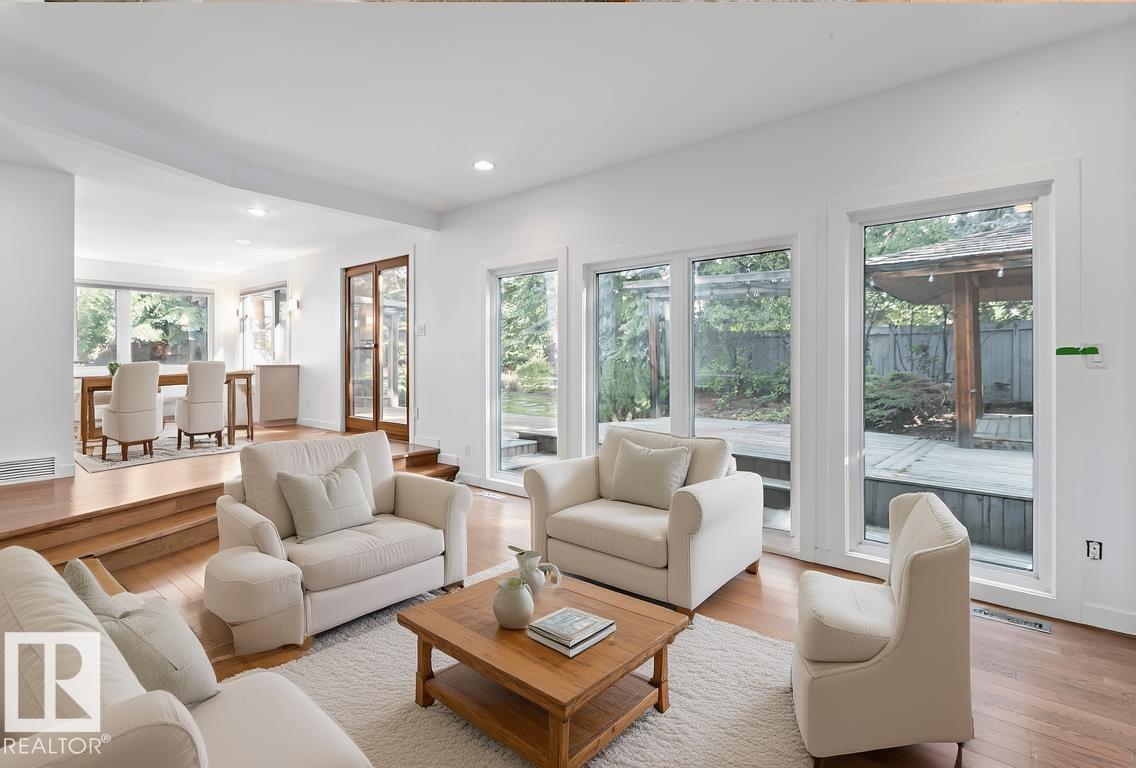 Nestled on an oversized pie-lot in a quiet CUL-DE-SAC in prestigious Oleskiw, this 2,700+sq.ft family-friendly gem is walking distance to top-rated schools, the Wolf Willow stairs & Edmonton?s scenic river valley. With 4+1 bedrooms, 3.5 baths & updates throughout, this character-filled home is move-in ready! A double-height foyer & open-to-above living space (with a wood-burning fireplace) welcome you in. The renovated kitchen boasts quartz counters, S/S appliances incl a Wolf range & a massive fridge/freezer; plenty of windows overlook the incredible backyard. Indoor/outdoor entertaining is easy in your landscaped backyard incl. fire pit & gazebo. Upstairs features 4 bedrooms + office (easily a 5th bed) with hardwood throughout. You'll love the spacious primary suite with walk-in closet & 4PC ensuite (dual vanities). The FULLY FINISHED BASEMENT includes a rec/theatre room, 5th bed, 3PC ensuite & TEMP-CONTROLLED WINE CELLAR. Updated mechanical, windows & thoughtful finishes make this a rare Oleskiw find!