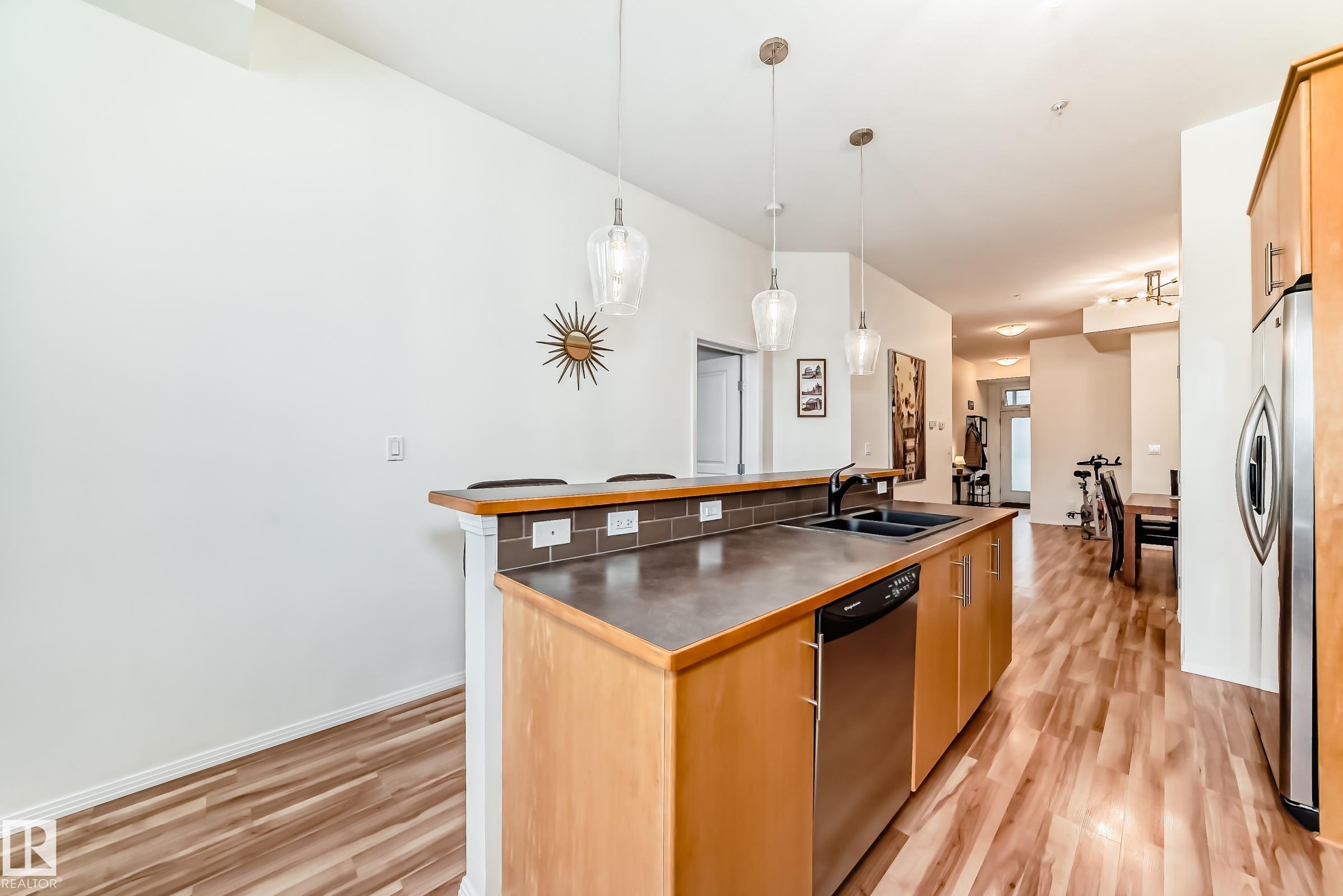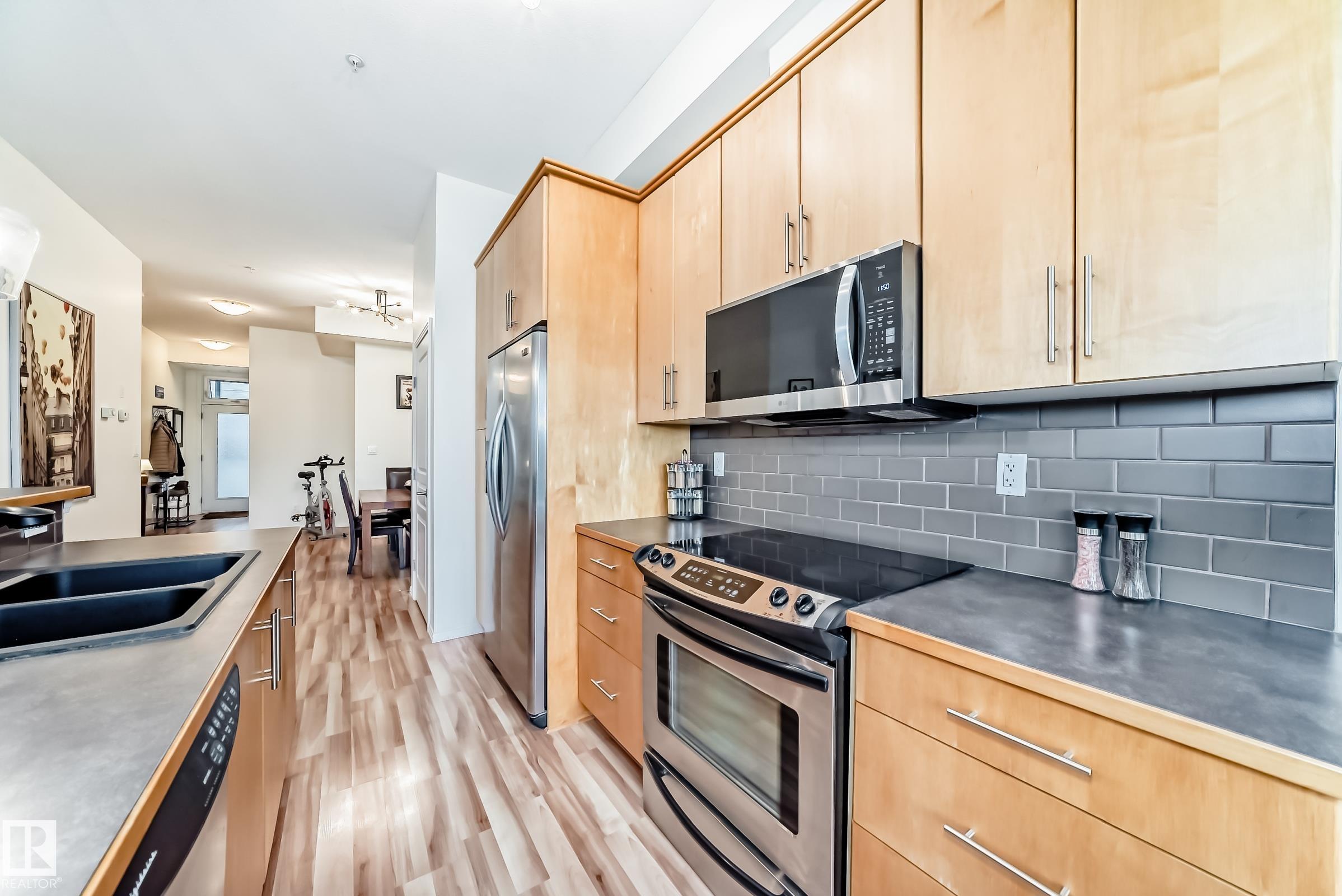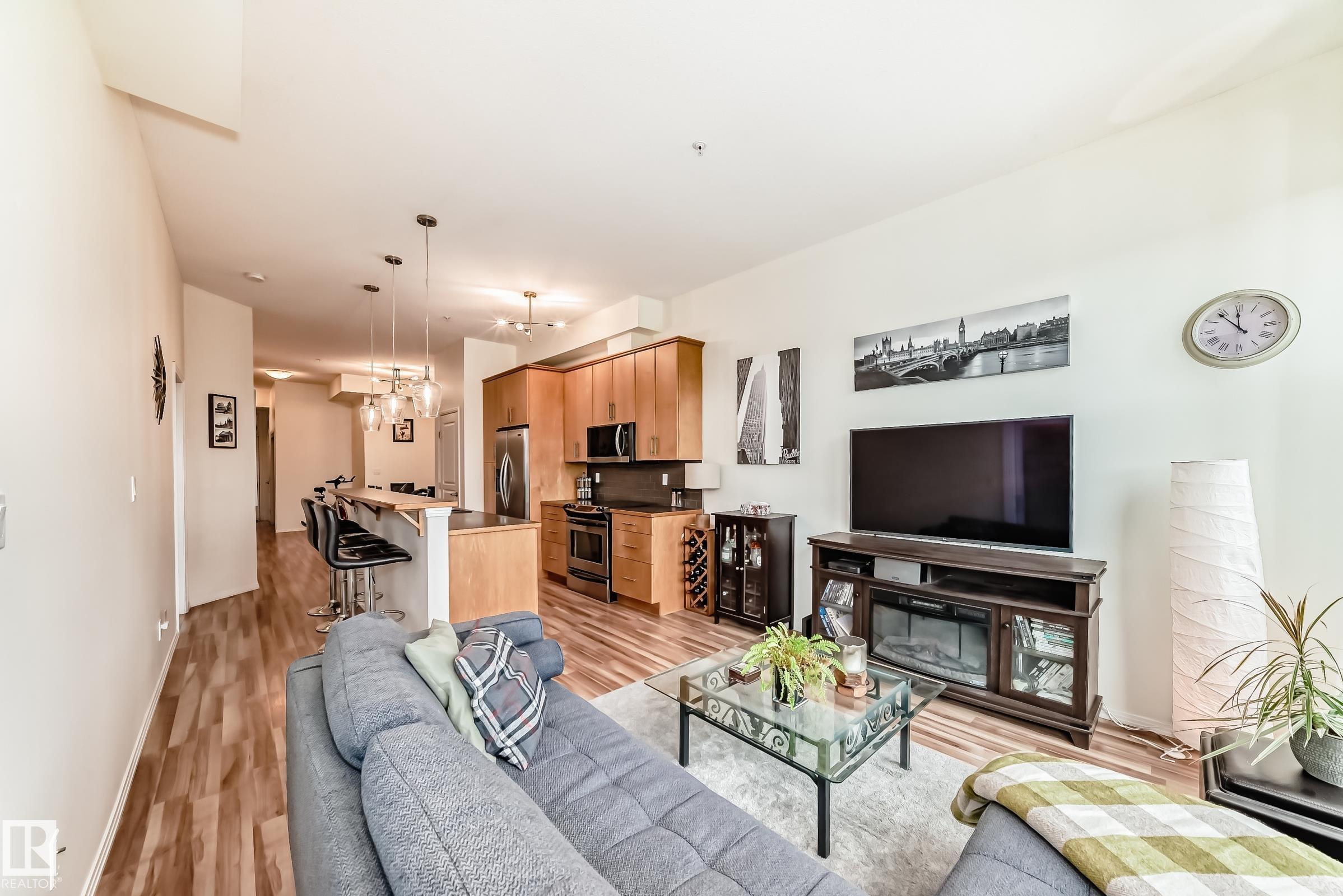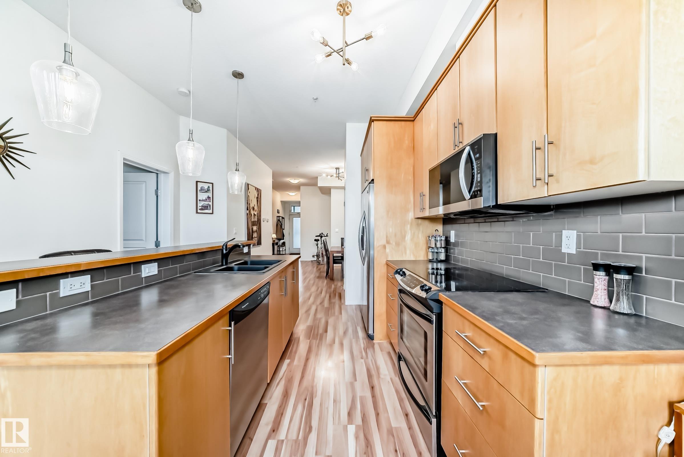 Bright and spacious 2 bed, 2 bath condo in Edmonton?s vibrant Brewery District. This 1030 sq ft west-facing unit overlooks a rare, quiet green space, offering privacy and a peaceful setting. Inside, you?ll find 10 ft ceilings, new windows, fresh paint, updated lighting, and custom blinds. The open-concept layout showcases a well-appointed kitchen with a breakfast bar, expansive storage, and a new sink and faucet, flowing into a defined dining area. The primary suite includes a walk-in closet and full ensuite, while the front entry features a second walk-in closet for excellent storage. Enjoy the convenience of in-suite laundry and a comfortable, well-designed living space. Includes underground parking with storage and gas BBQ hookup. Ideally located within walking distance to shops, transit, schools, and Edmonton?s beautiful River Valley, making it perfect for an active, connected lifestyle. Exceptional value in one of the city?s most walkable communities.