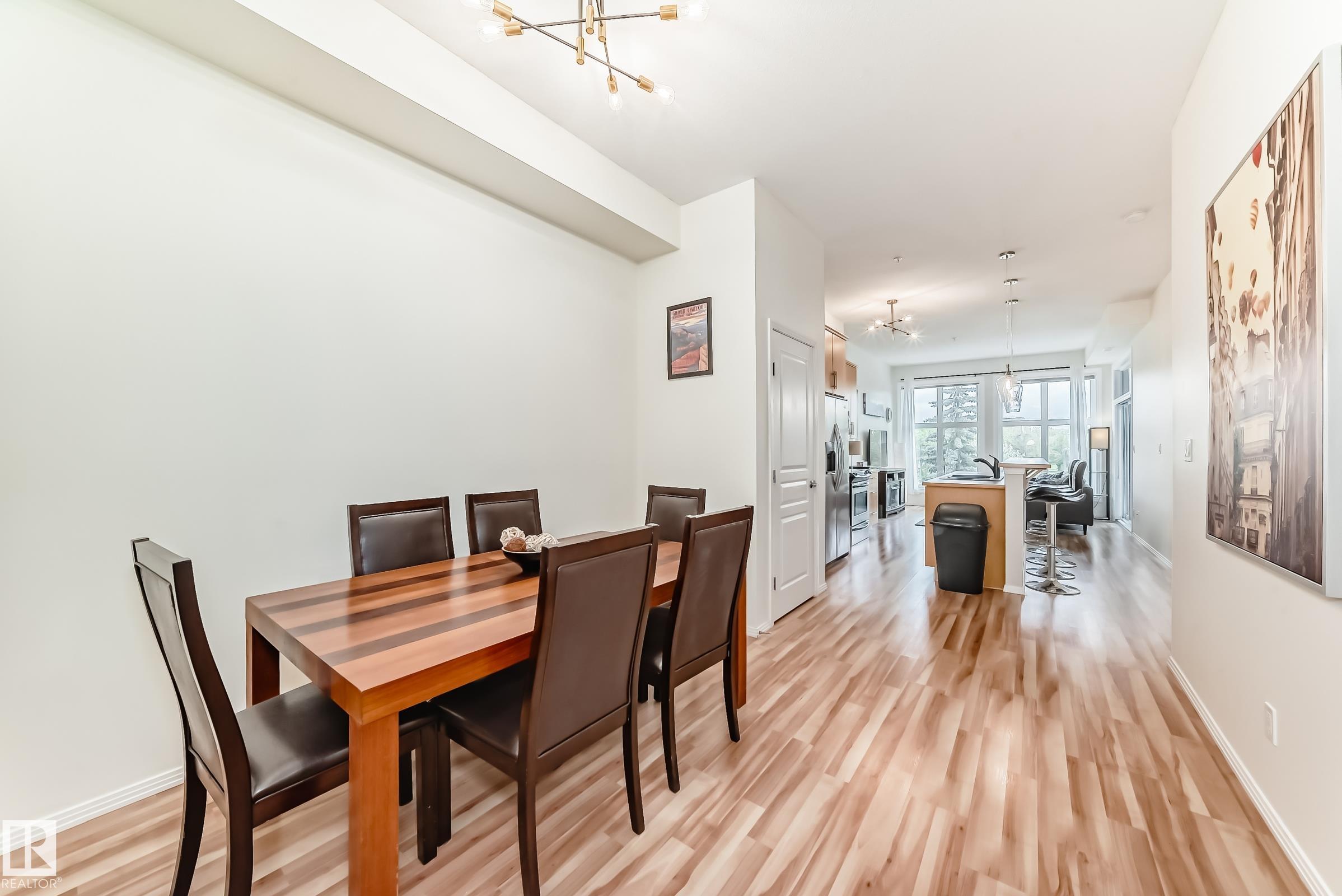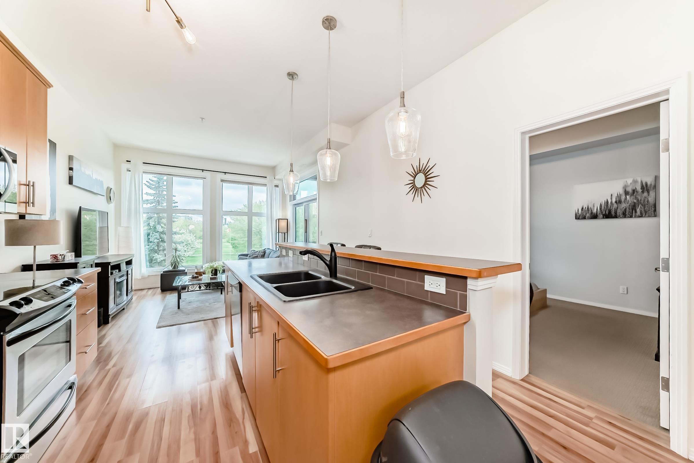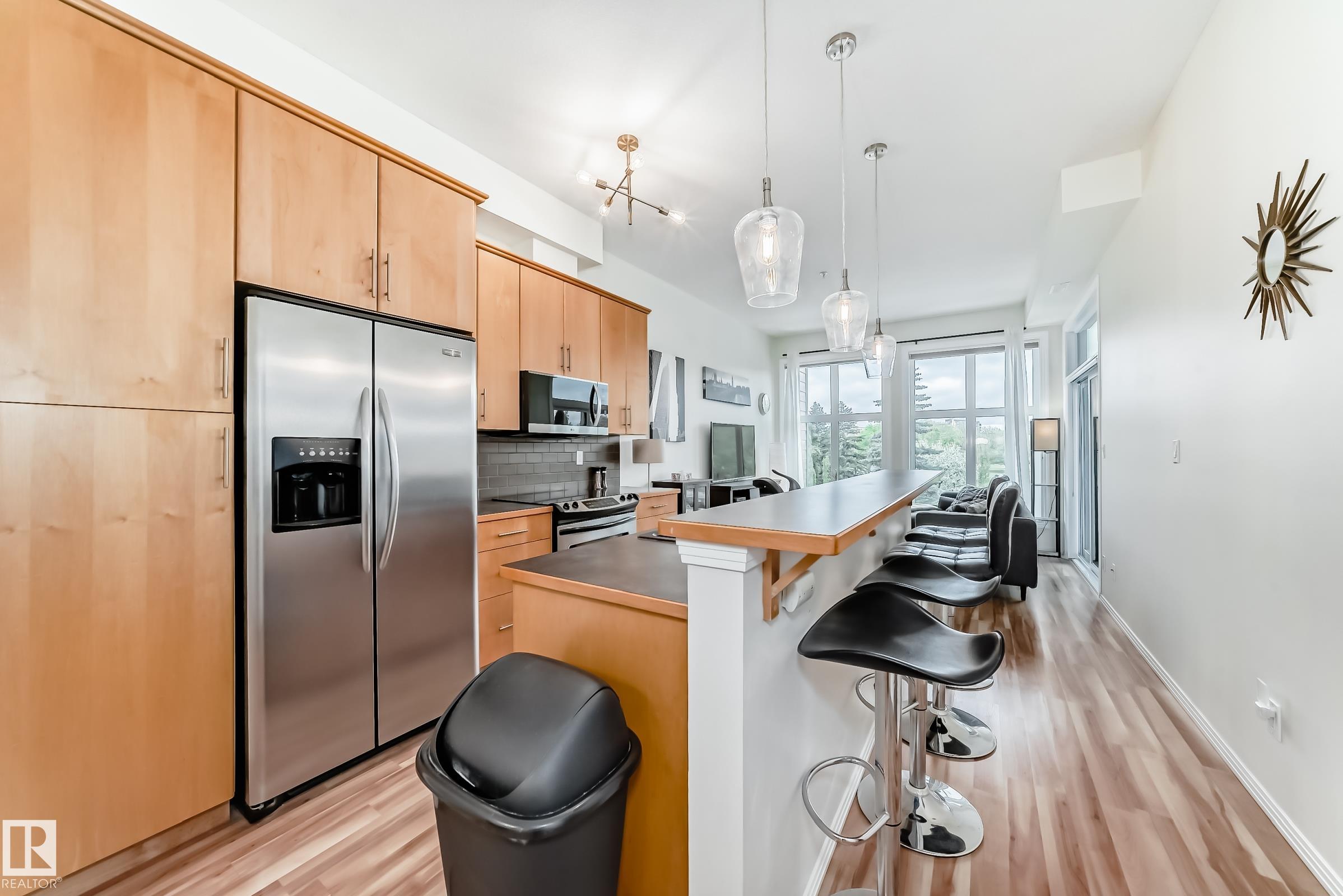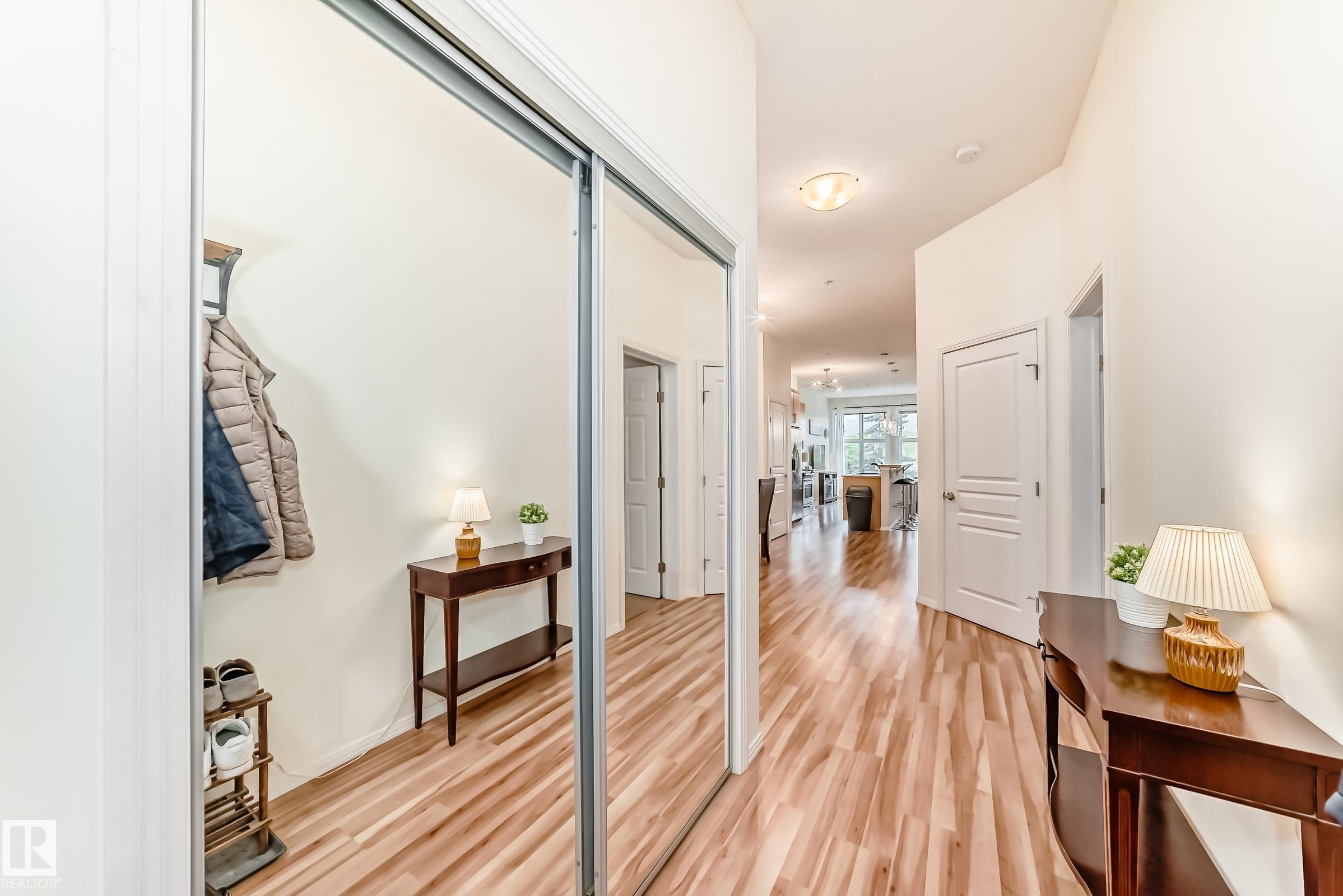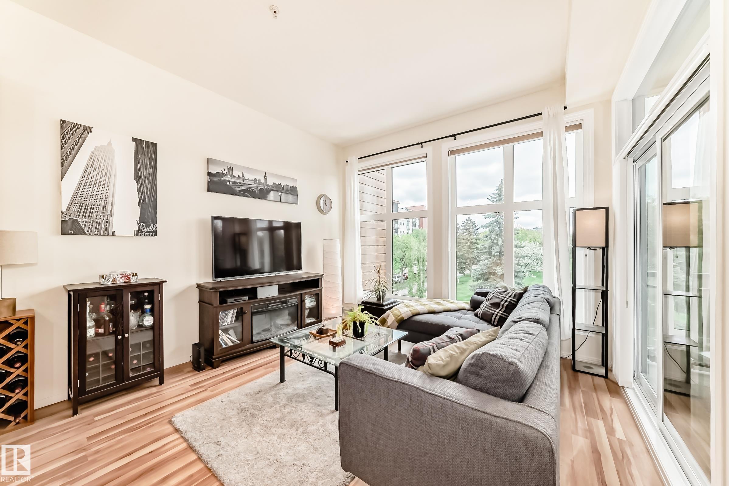 Bright and spacious 2 bed, 2 bath condo in Edmonton?s vibrant Brewery District. This 1030 sq ft west-facing unit overlooks a rare, quiet green space, offering privacy and a peaceful setting. Inside, you?ll find 10 ft ceilings, new windows, fresh paint, updated lighting, and custom blinds. The open-concept layout showcases a well-appointed kitchen with a breakfast bar, expansive storage, and a new sink and faucet, flowing into a defined dining area. The primary suite includes a walk-in closet and full ensuite, while the front entry features a second walk-in closet for excellent storage. Enjoy the convenience of in-suite laundry and a comfortable, well-designed living space. Includes underground parking with storage and gas BBQ hookup. Ideally located within walking distance to shops, transit, schools, and Edmonton?s beautiful River Valley, making it perfect for an active, connected lifestyle. Exceptional value in one of the city?s most walkable communities.