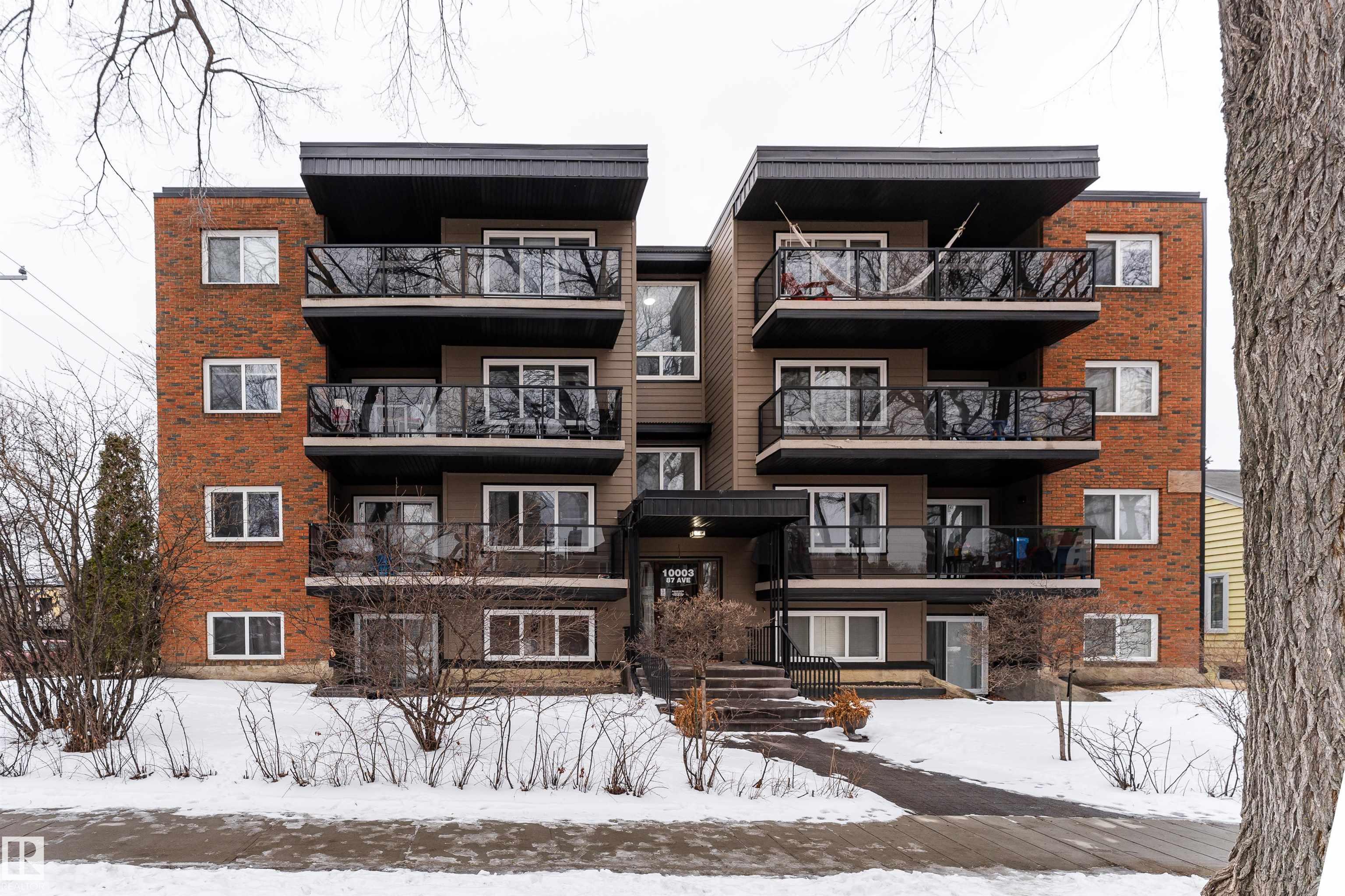 Beautiful one-bedroom unit in Strathcona, just off Whyte Ave. The condo shows very well and has been well maintained. Features 3˝" oak hardwood and slate tile flooring throughout, along with an updated galley kitchen with stainless steel appliances, maple cabinetry, black granite counters, and an undermount sink. The kitchen is efficient in layout, with a separate dining area that opens to the living room, complete with an electric fireplace and feature wall. The bedroom offers a good-sized walk-in closet, and the 4-piece bath includes a deep jetted tub and in-suite washer/dryer combo. Additional coin laundry is available in the building. The building envelope (windows, doors, balconies, siding, and roof) was updated approximately 10 years ago. Excellent location within walking distance to Whyte Ave, the river valley, University of Alberta, transit, and amenities. Includes one outdoor parking stall.