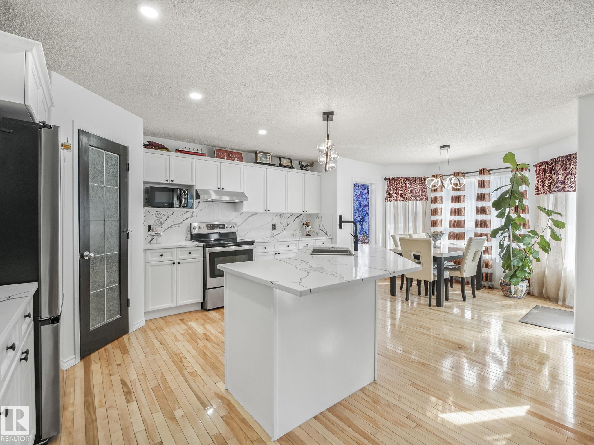 Finally, the wait is over for a beautiful home in the sought after community of The Hamptons. This amazing home has 4 bedroom & 3.5 half bath. The main floor has beautiful open floor concept with big living room, gas fireplace, good size kitchen, corner pantry, island, nook dining area & laundry. The upper level has bonus room, master bedroom, en-suite with Jacuzzi and walk-in closet, two more good size bedrooms and huge full bath.This home features, hardwood & ceramic tiles on the main, NEW carpet upstairs(2026), NEW counter top(2026) & vinyl planks in the basement. The basement was developed in 2024 with passion, creativity & comes with huge Rec. room, bedroom with Shoji door, full washroom with shower(LED rainfall), LED wall mirror & two separate storage. Latest upgrade include new fridge, washer, dryer in 2025 & some new light fixtures. The home is located on the quite street with schools, shopping, playgrounds, walking trails near by, along with an easy access to Whitemud and Henday. A must see!!!