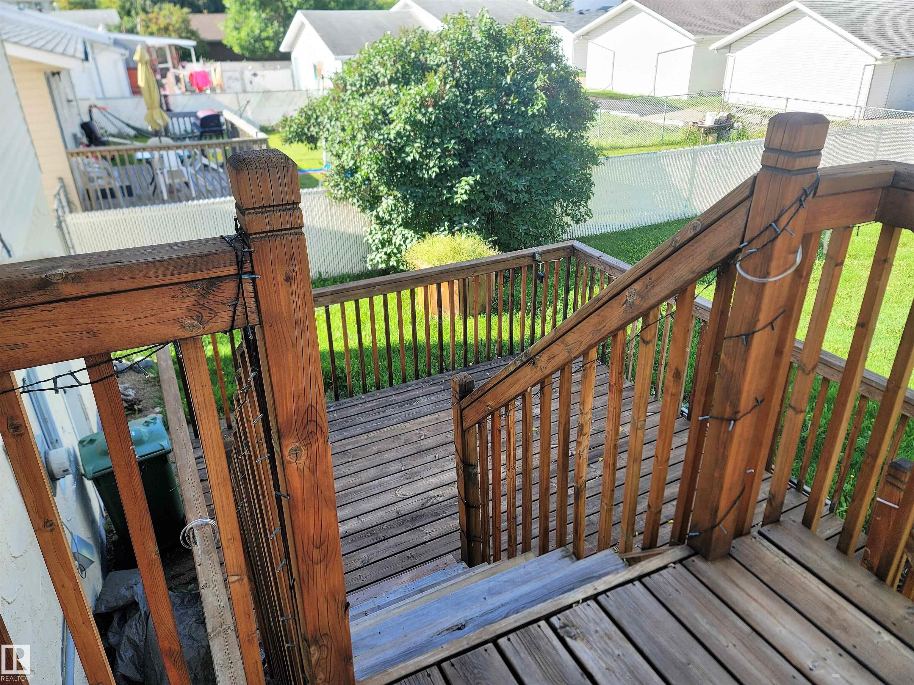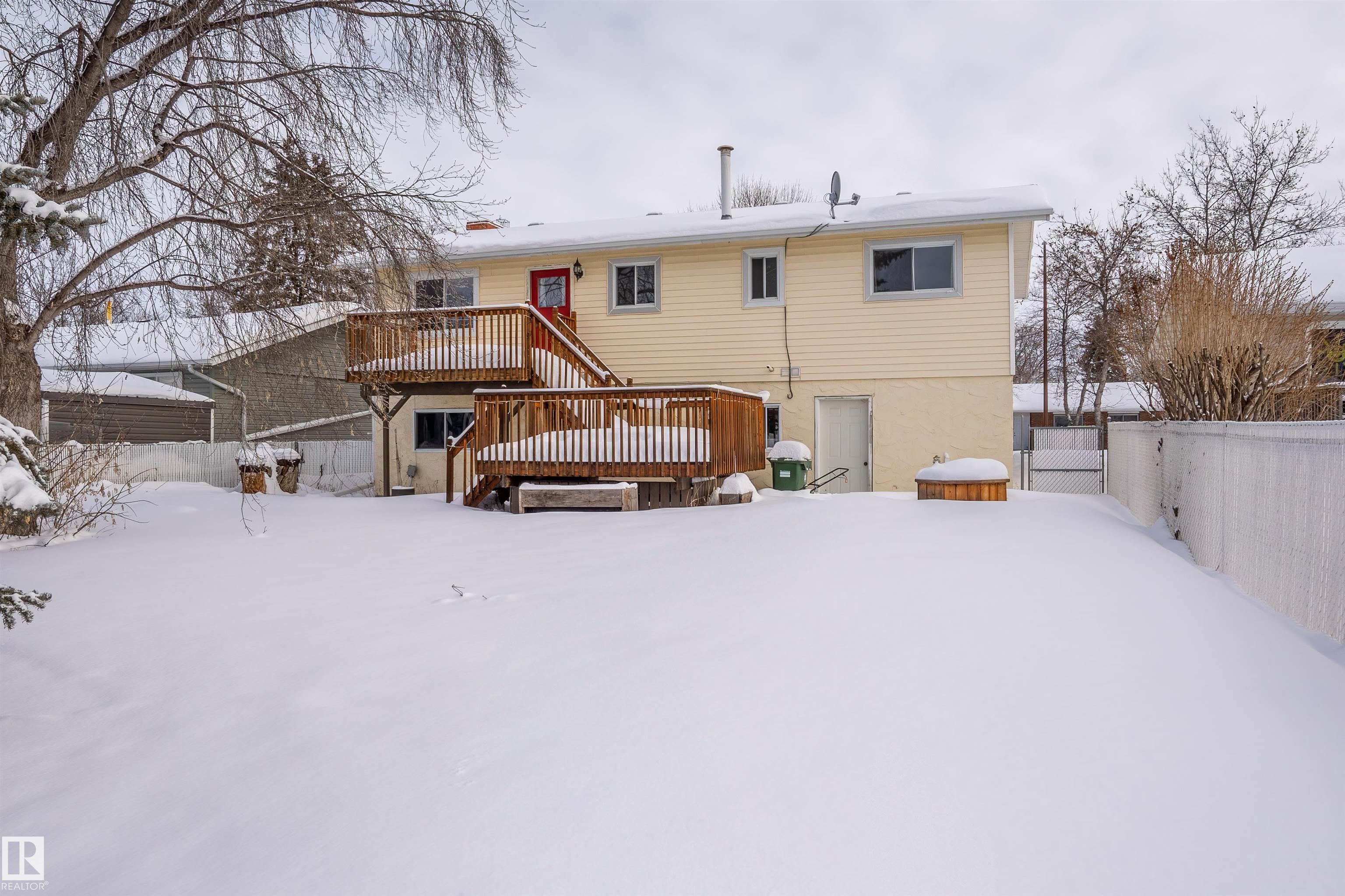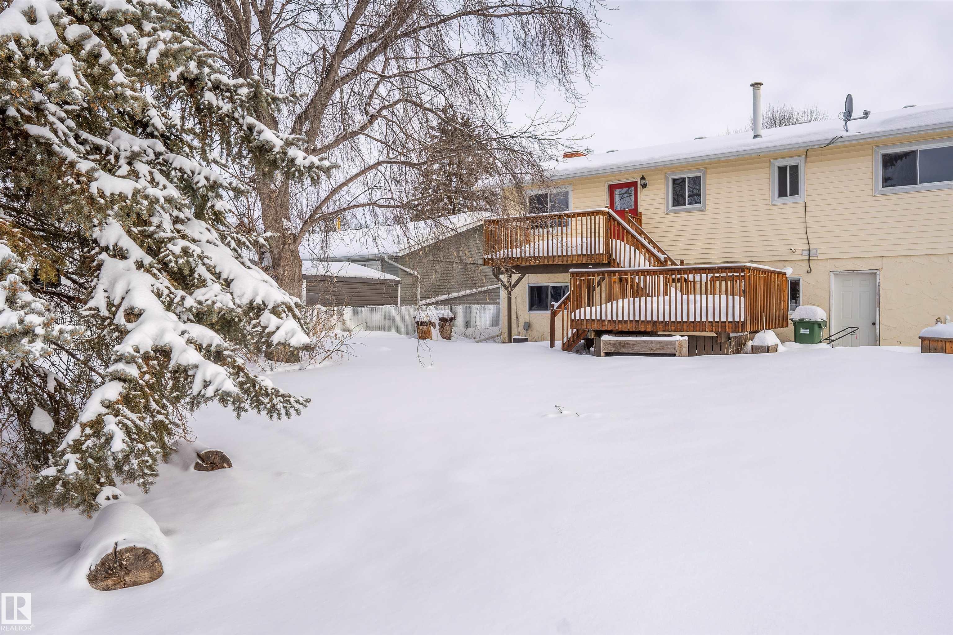 Charming two-storey home featuring a single attached garage, spacious fenced yard, storage shed, and a peaceful fish pond. The main floor offers a comfortable primary bedroom with a 2-piece ensuite, two additional bedrooms, a 4-piece bathroom, and a bright living room with a cozy fireplace. The large kitchen and dining area provide plenty of space for gathering, with direct access to the deck?perfect for enjoying your morning coffee. The lower level includes a welcoming family room with a second fireplace, a 4-piece bathroom, a generous entryway, and an unfinished bonus room ready for your personal touch and future development.