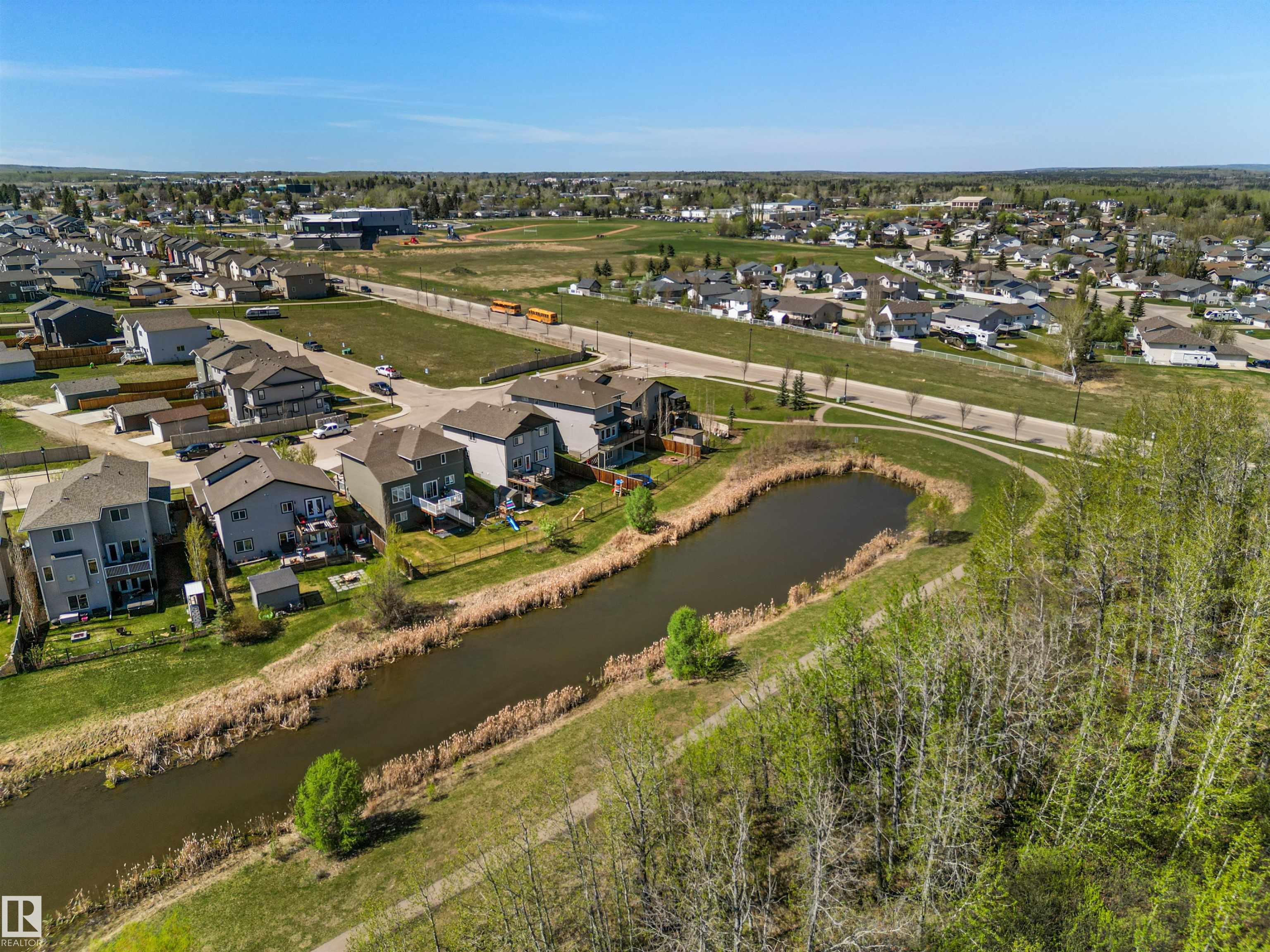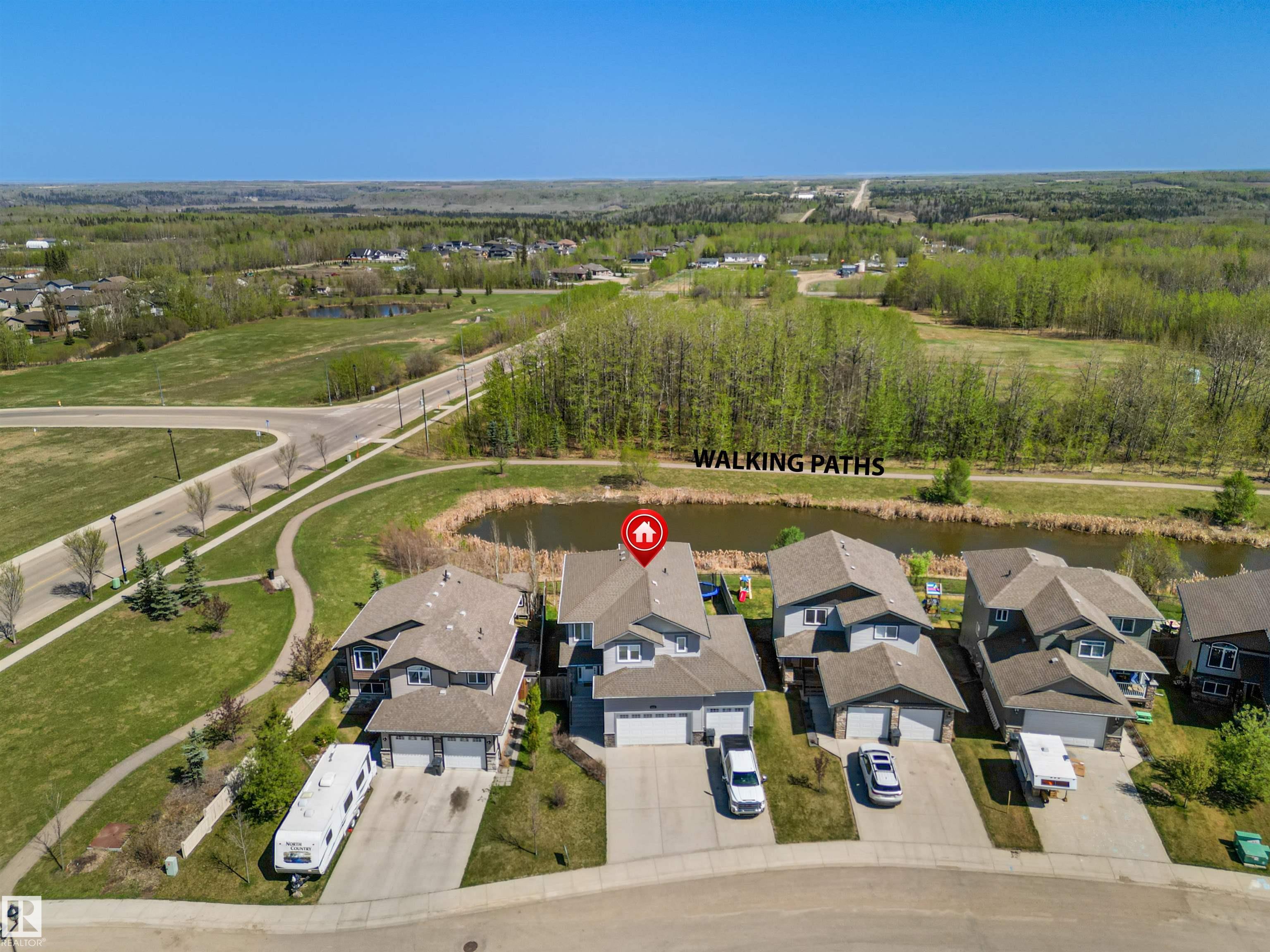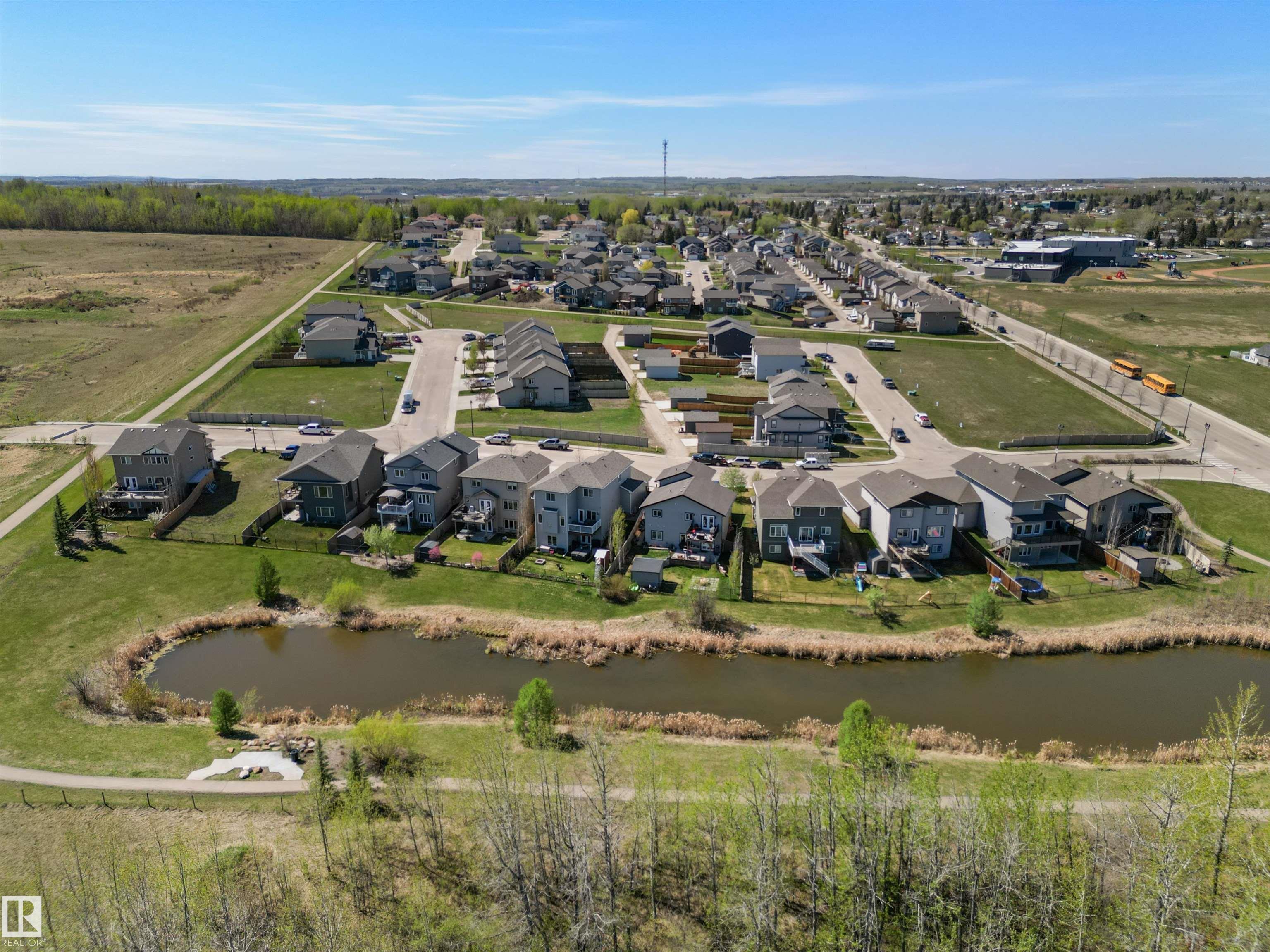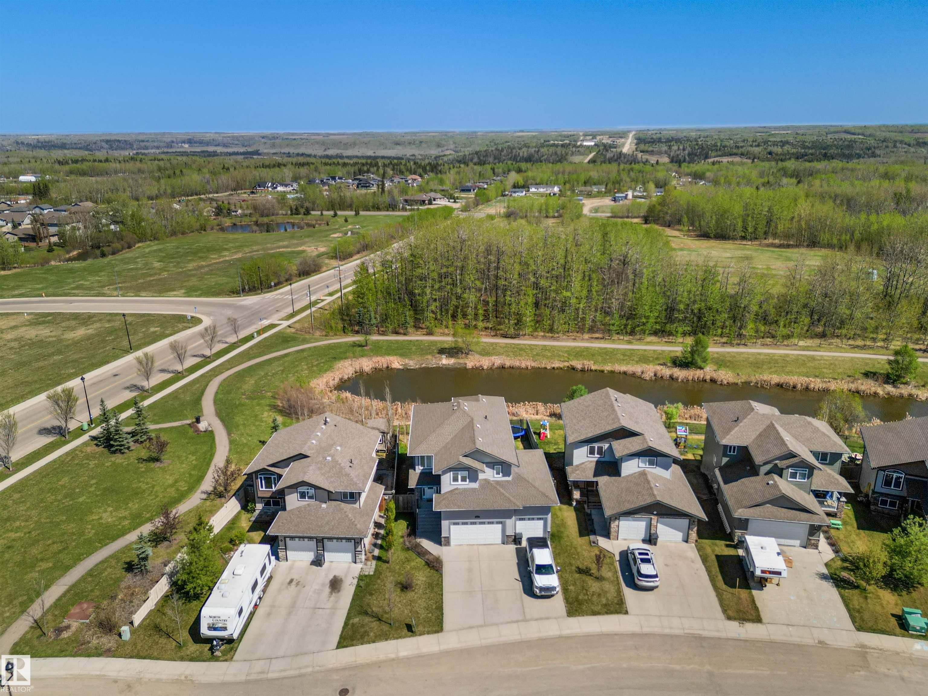 Located in the subdivision of Meraw Estates in Drayton Valley, this 2014 built, 2-storey home overlooks a pond, and is surrounded by walking paths in a quiet neighborhood. Having 4 bedrooms, 3.5 bathrooms, and tons of living space with over 3,000 sq ft, this is a perfect family home that allows for both personal space and family time. Unique features of the home include a walk-out basement, huge rear deck, triple garage, natural gas hookup, A/C, hot water on demand family/living rooms upstairs, on the main floor and in the basement. The kitchen is well appointed with granite countertops, stainless appliances + bar fridge, an oversized island, loads of cupboard and counterspace as well as a large walk-through pantry. Upstairs has a bonus room, the large primary bedroom, 5-pc ensuite & large walk-through closet that opens to a laundry room, and two additional bedrooms, each with walk-in closets. The walk-out basement is fully finished with a fourth bedroom, a 4-pc bath, in floor heat, and a wet-bar!