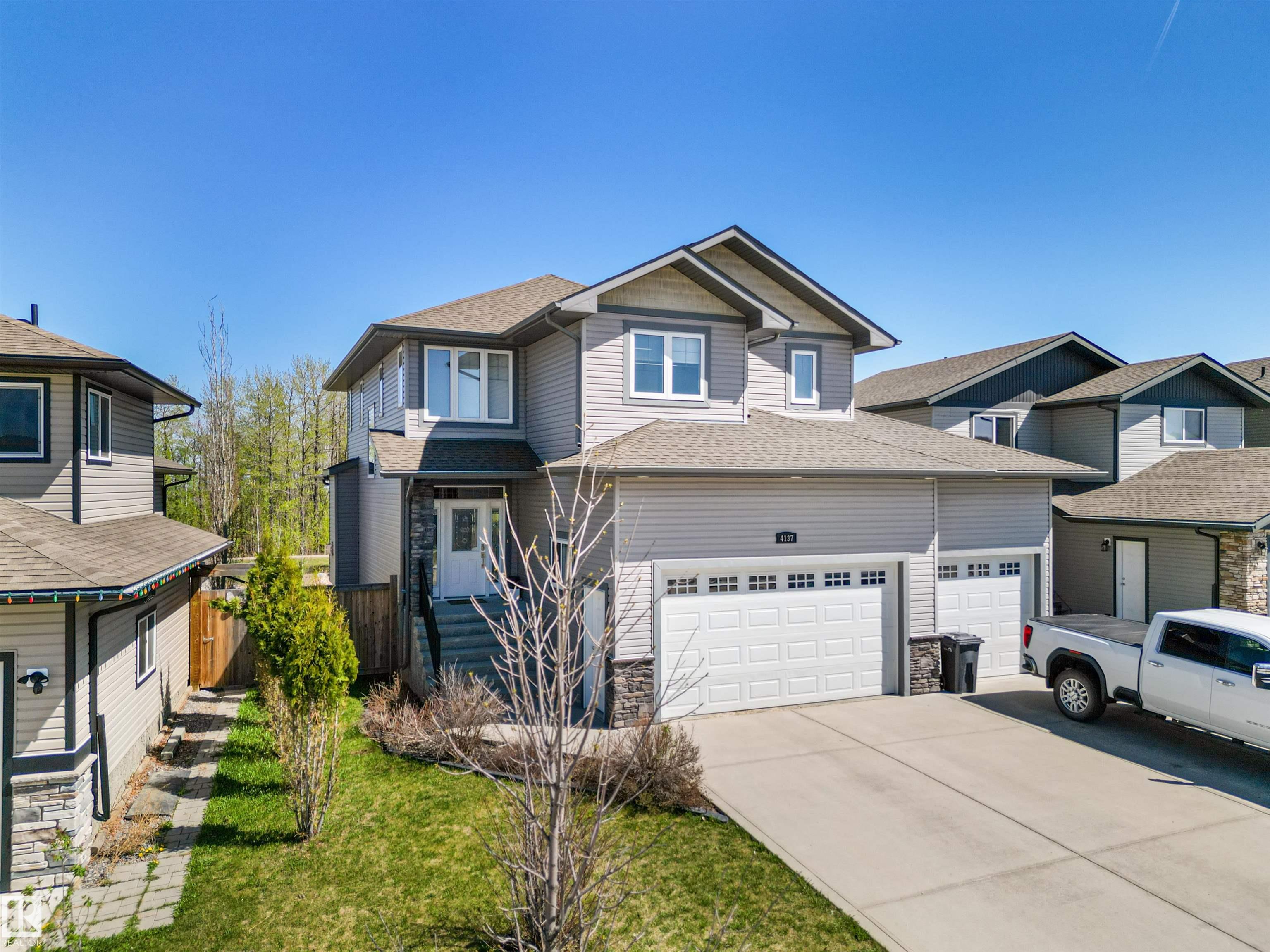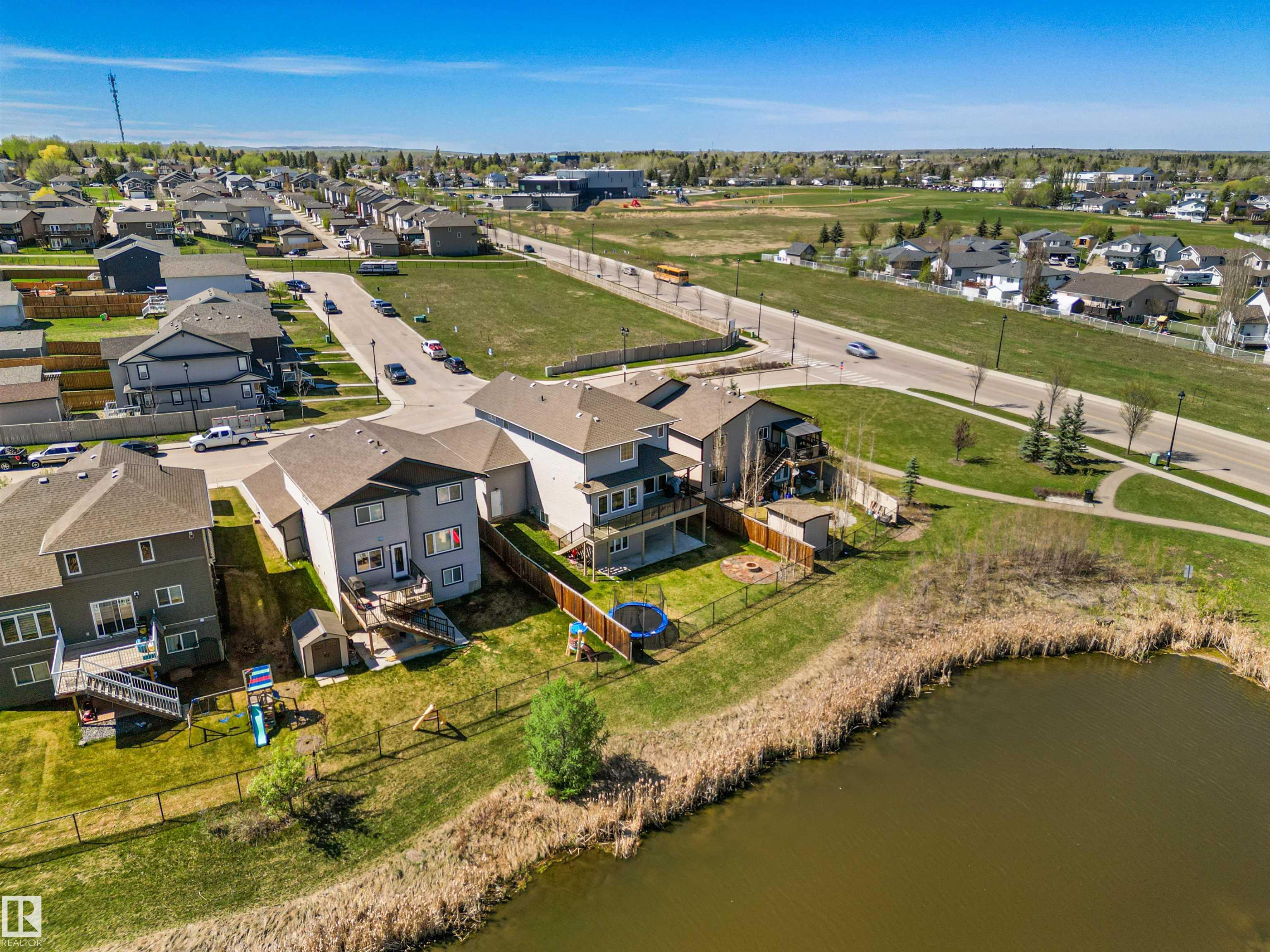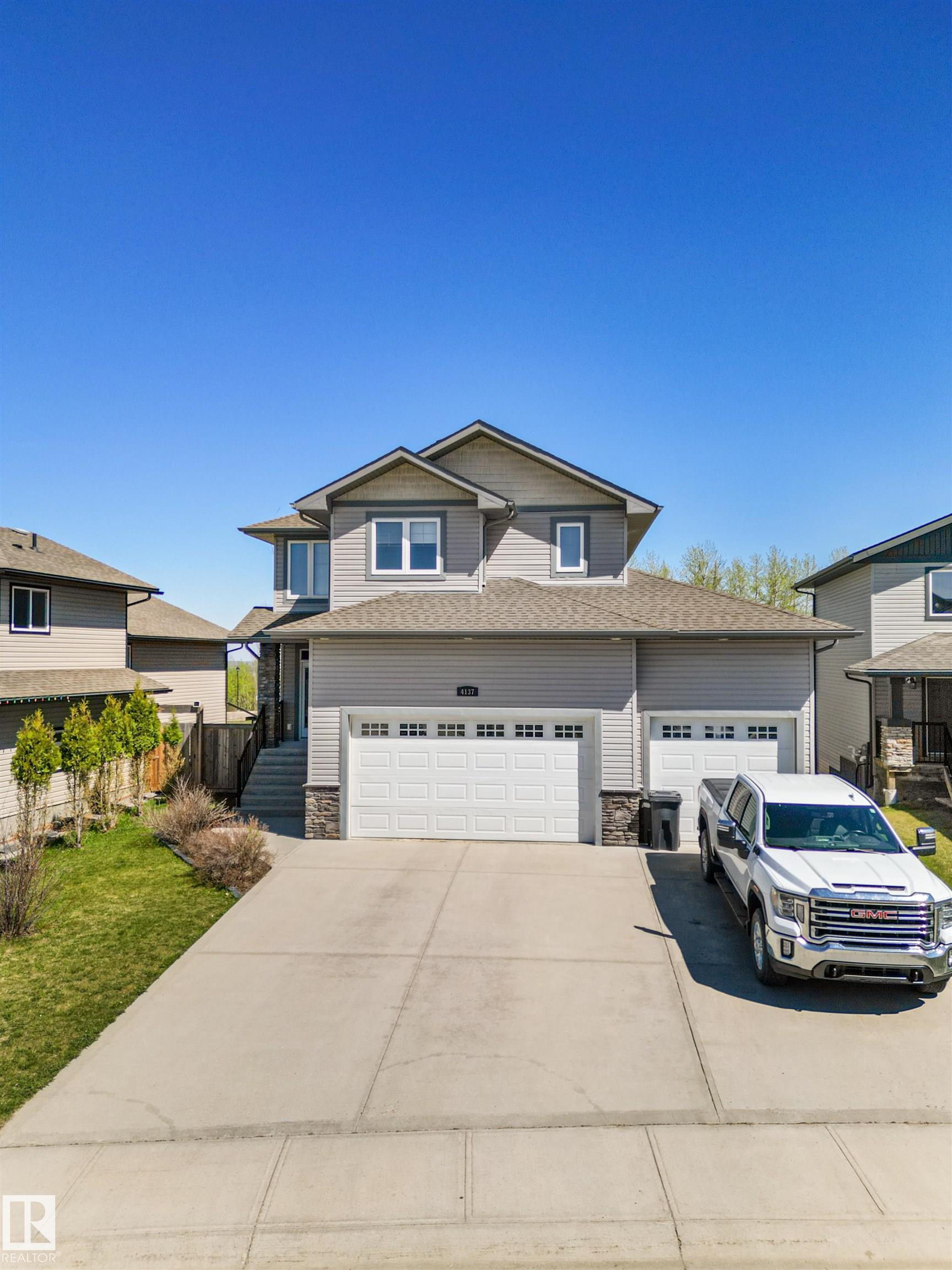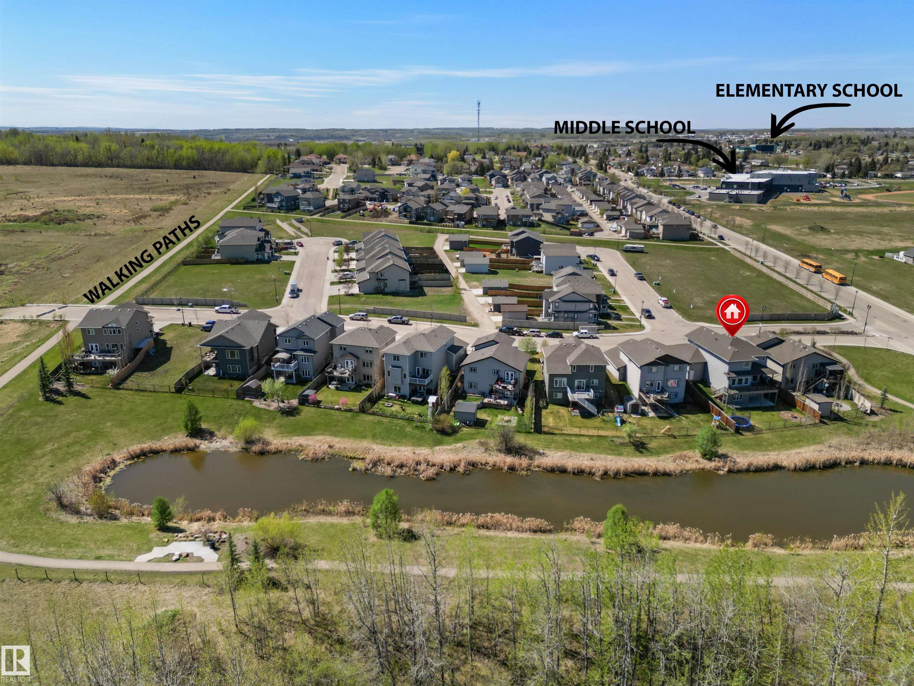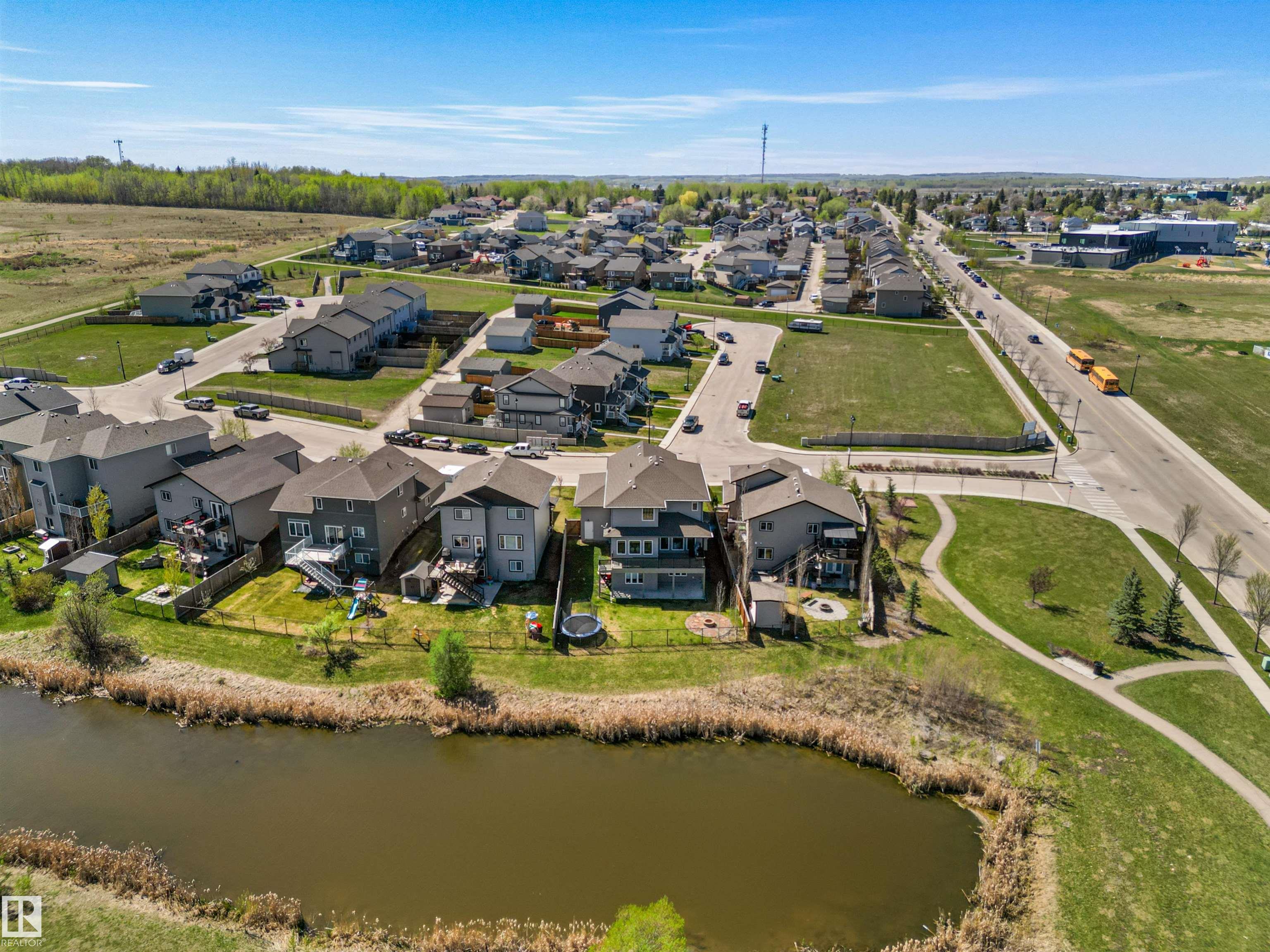 Located in the subdivision of Meraw Estates in Drayton Valley, this 2014 built, 2-storey home overlooks a pond, and is surrounded by walking paths in a quiet neighborhood. Having 4 bedrooms, 3.5 bathrooms, and tons of living space with over 3,000 sq ft, this is a perfect family home that allows for both personal space and family time. Unique features of the home include a walk-out basement, huge rear deck, triple garage, natural gas hookup, A/C, hot water on demand family/living rooms upstairs, on the main floor and in the basement. The kitchen is well appointed with granite countertops, stainless appliances + bar fridge, an oversized island, loads of cupboard and counterspace as well as a large walk-through pantry. Upstairs has a bonus room, the large primary bedroom, 5-pc ensuite & large walk-through closet that opens to a laundry room, and two additional bedrooms, each with walk-in closets. The walk-out basement is fully finished with a fourth bedroom, a 4-pc bath, in floor heat, and a wet-bar!