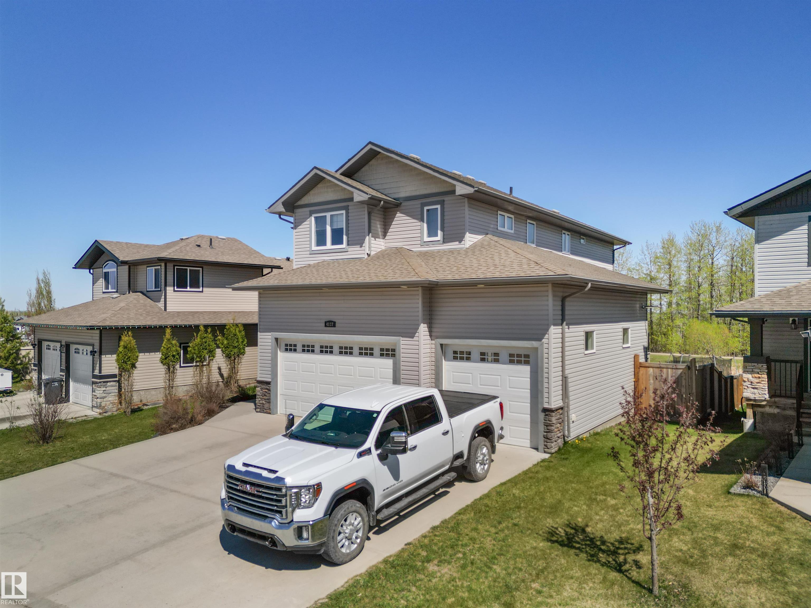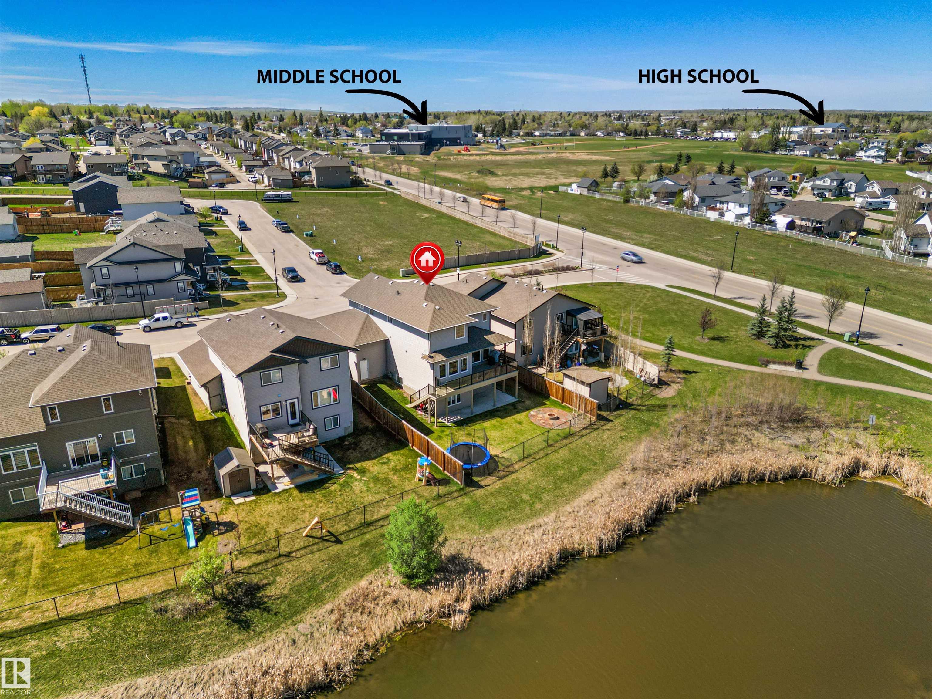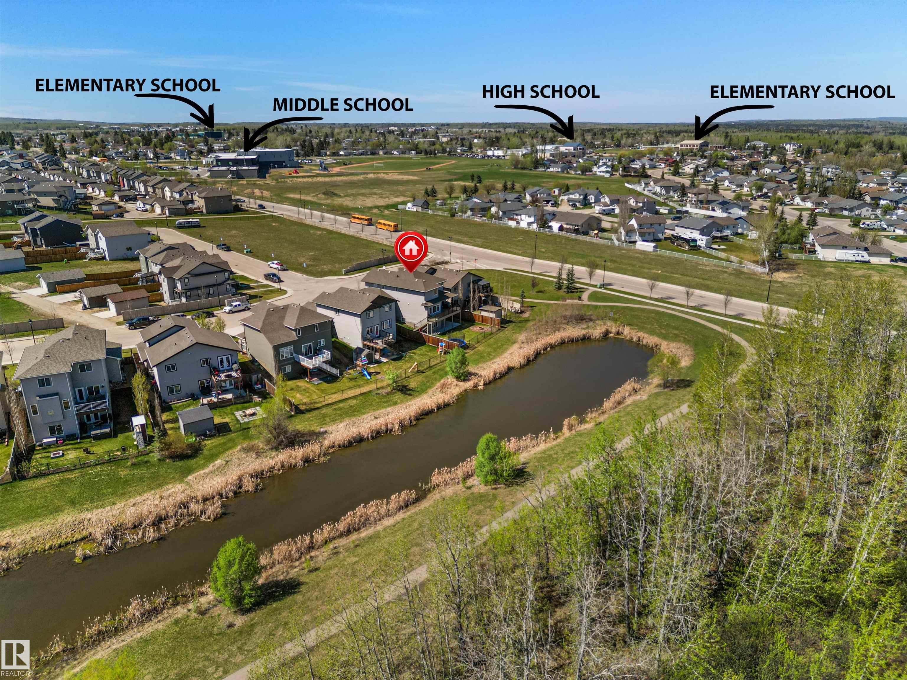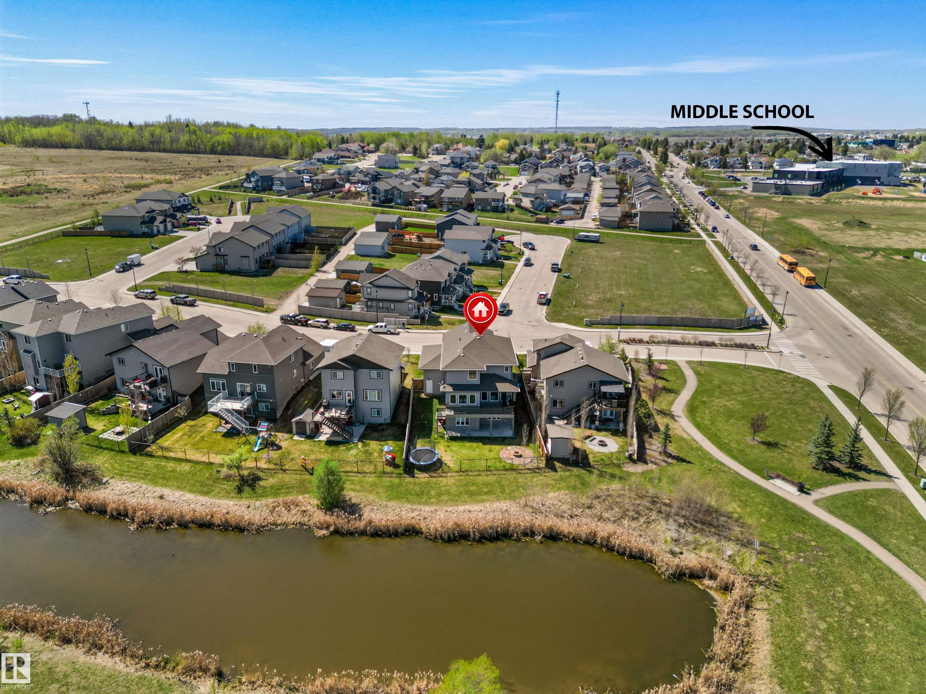 Located in the subdivision of Meraw Estates in Drayton Valley, this 2014 built, 2-storey home overlooks a pond, and is surrounded by walking paths in a quiet neighborhood. Having 4 bedrooms, 3.5 bathrooms, and tons of living space with over 3,000 sq ft, this is a perfect family home that allows for both personal space and family time. Unique features of the home include a walk-out basement, huge rear deck, triple garage, natural gas hookup, A/C, hot water on demand family/living rooms upstairs, on the main floor and in the basement. The kitchen is well appointed with granite countertops, stainless appliances + bar fridge, an oversized island, loads of cupboard and counterspace as well as a large walk-through pantry. Upstairs has a bonus room, the large primary bedroom, 5-pc ensuite & large walk-through closet that opens to a laundry room, and two additional bedrooms, each with walk-in closets. The walk-out basement is fully finished with a fourth bedroom, a 4-pc bath, in floor heat, and a wet-bar!