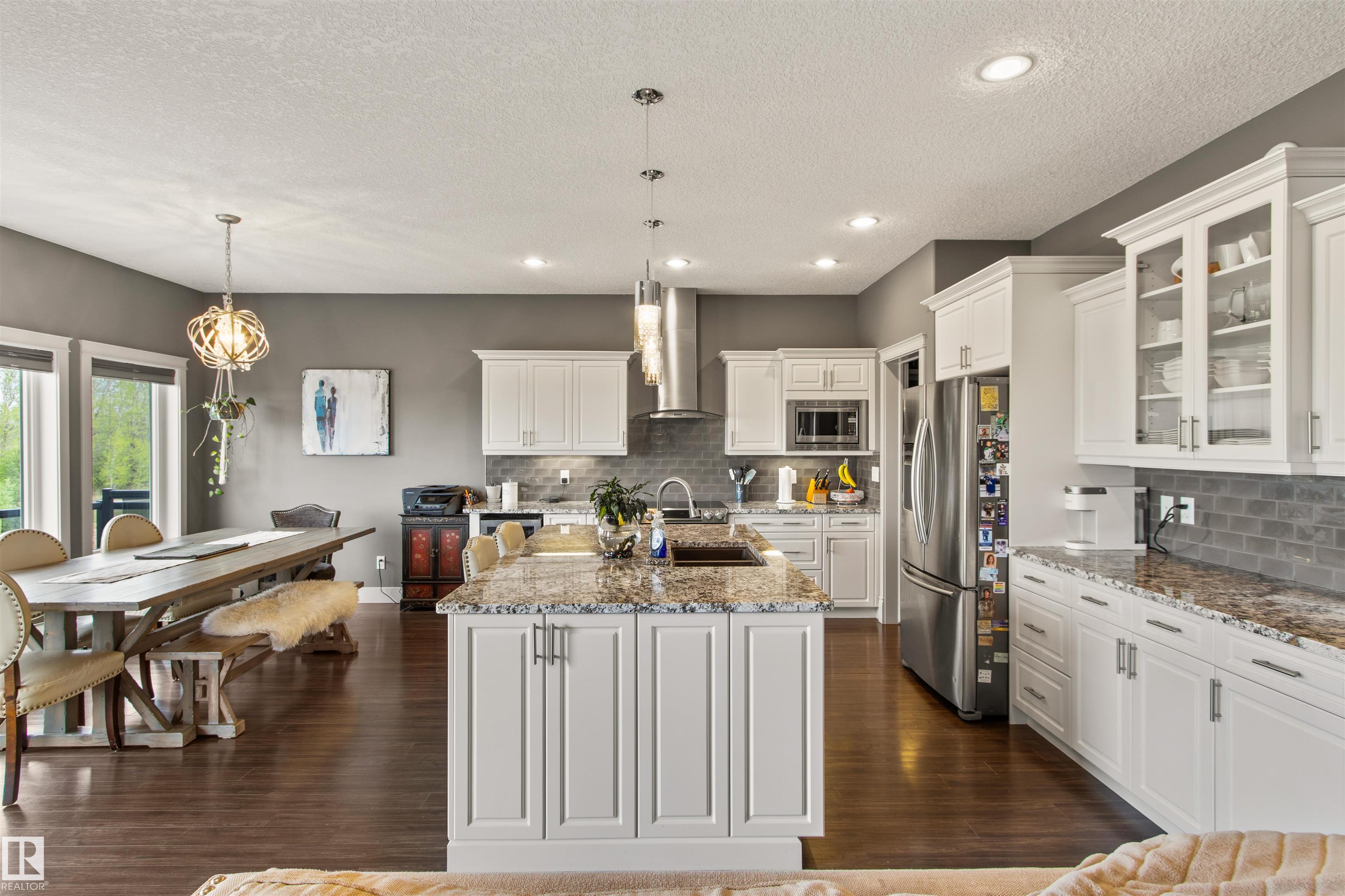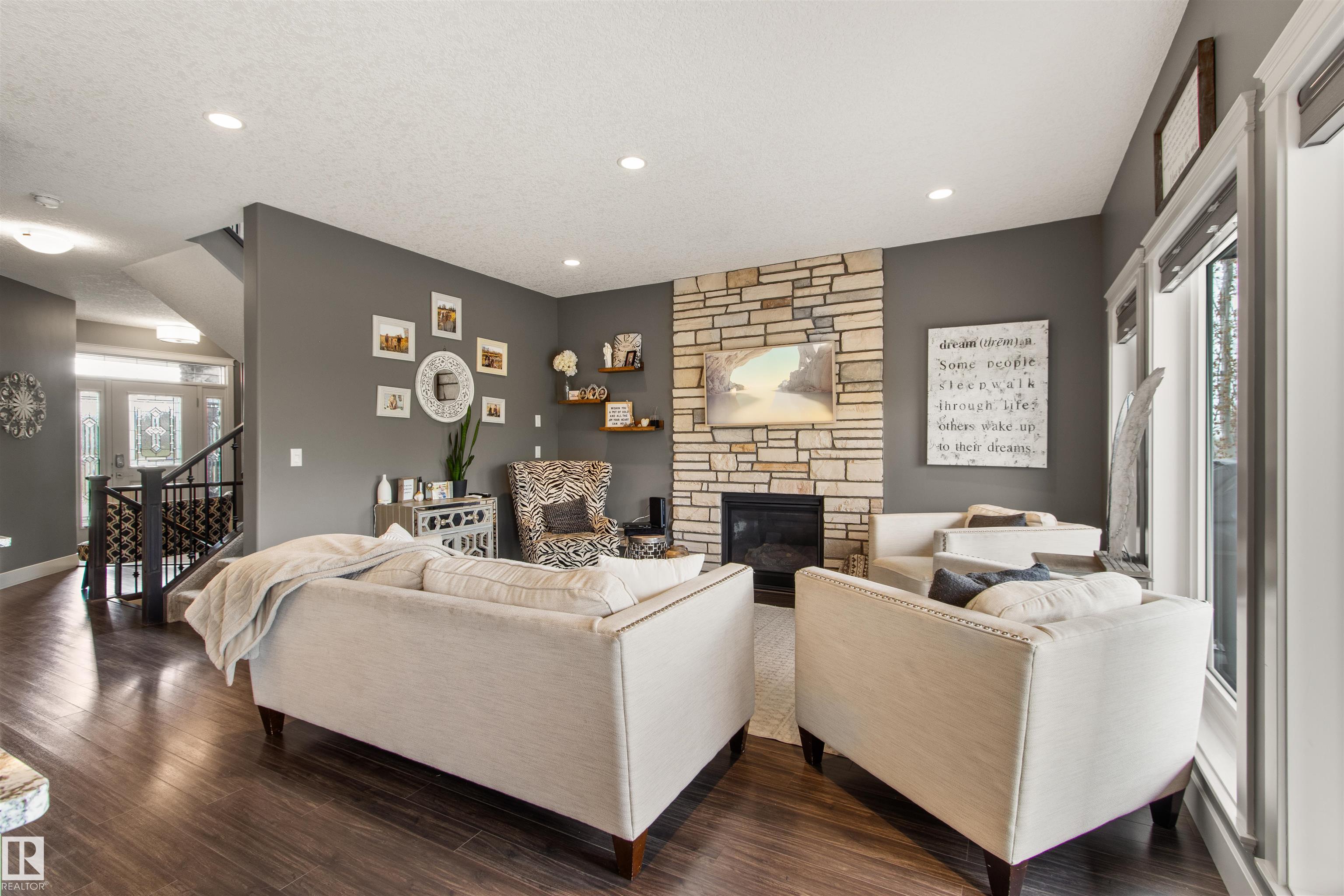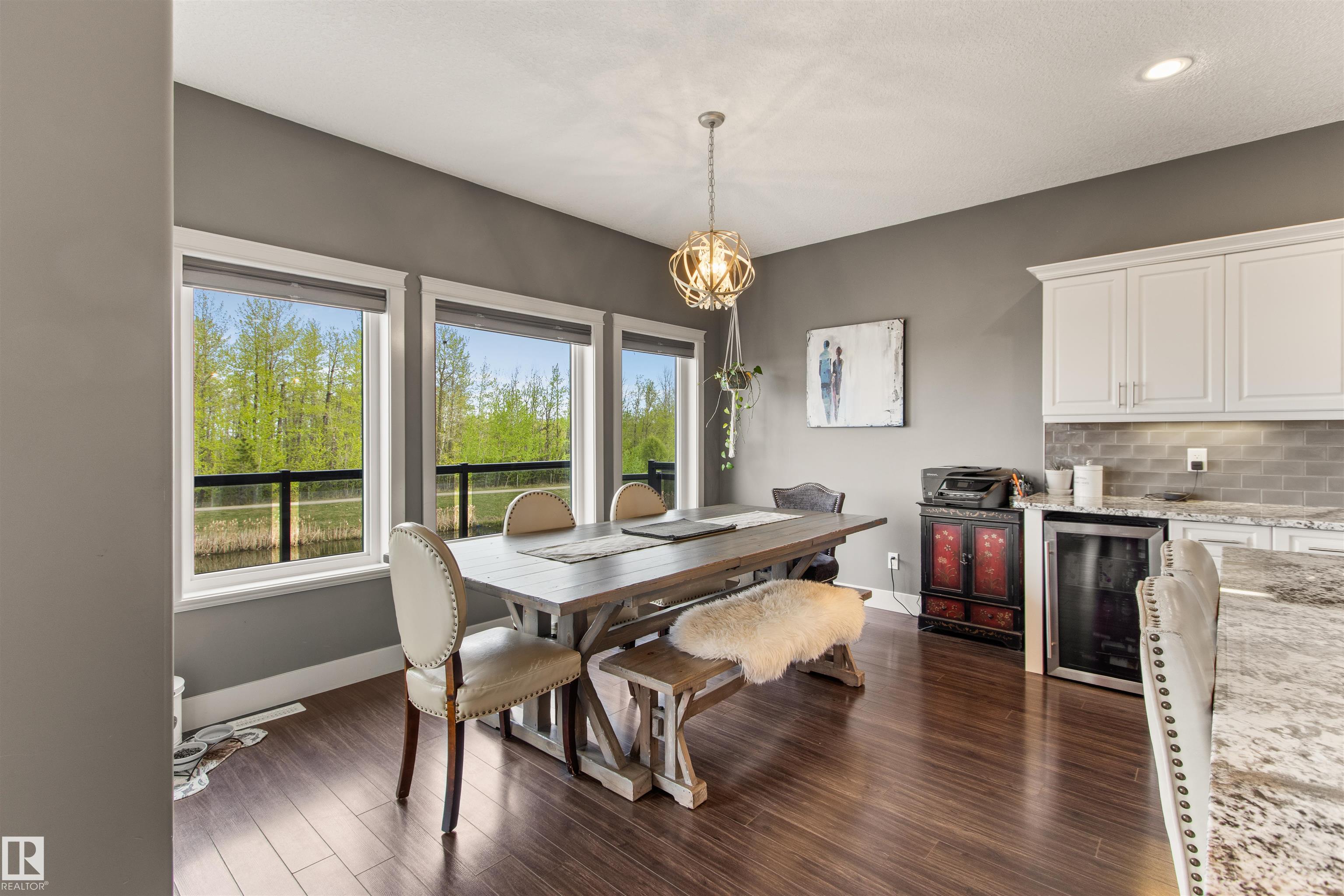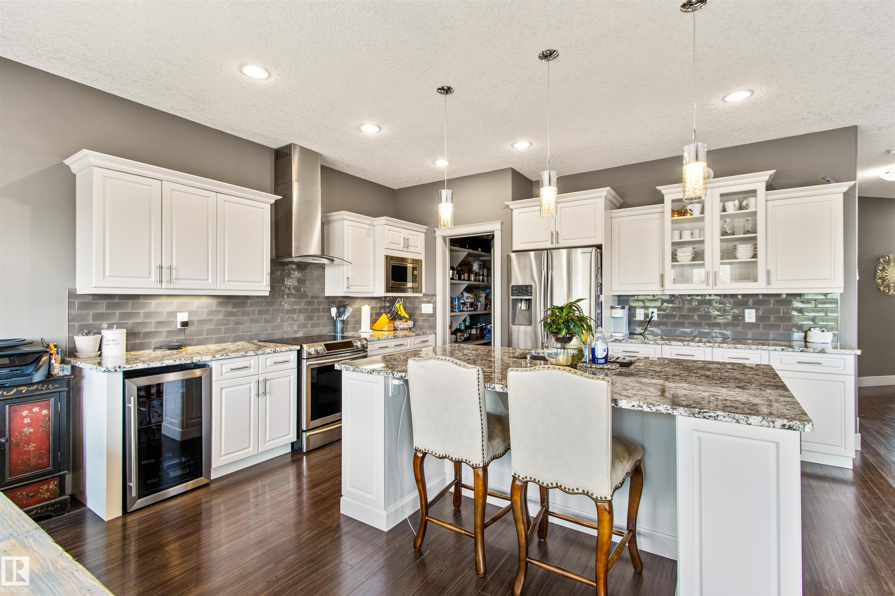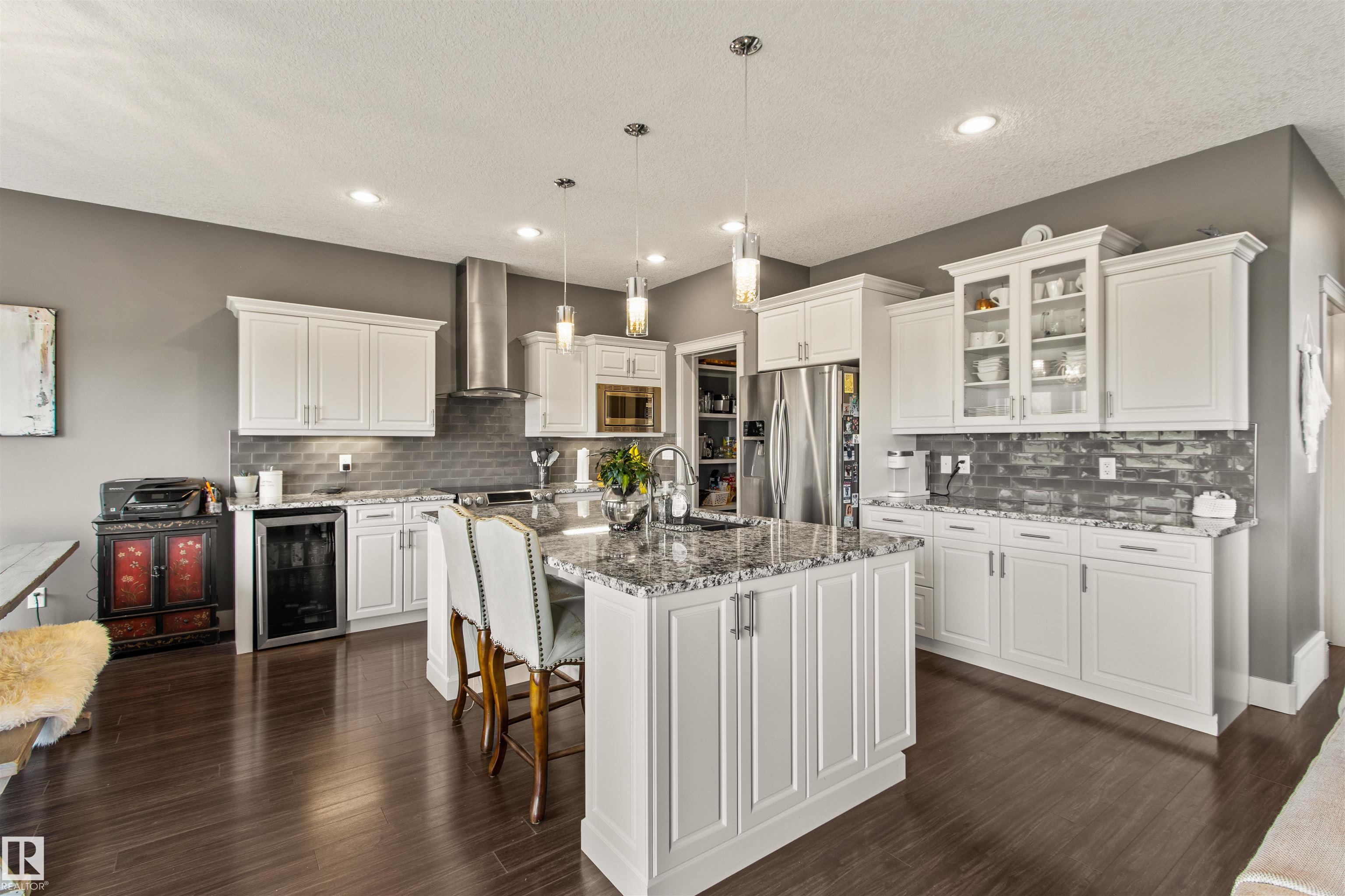 Located in the subdivision of Meraw Estates in Drayton Valley, this 2014 built, 2-storey home overlooks a pond, and is surrounded by walking paths in a quiet neighborhood. Having 4 bedrooms, 3.5 bathrooms, and tons of living space with over 3,000 sq ft, this is a perfect family home that allows for both personal space and family time. Unique features of the home include a walk-out basement, huge rear deck, triple garage, natural gas hookup, A/C, hot water on demand family/living rooms upstairs, on the main floor and in the basement. The kitchen is well appointed with granite countertops, stainless appliances + bar fridge, an oversized island, loads of cupboard and counterspace as well as a large walk-through pantry. Upstairs has a bonus room, the large primary bedroom, 5-pc ensuite & large walk-through closet that opens to a laundry room, and two additional bedrooms, each with walk-in closets. The walk-out basement is fully finished with a fourth bedroom, a 4-pc bath, in floor heat, and a wet-bar!
