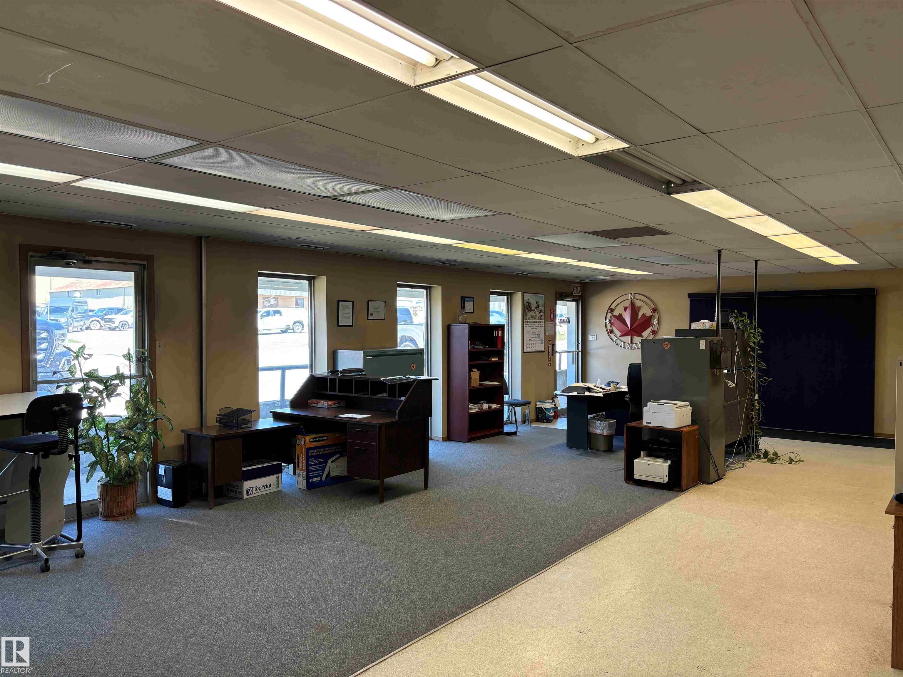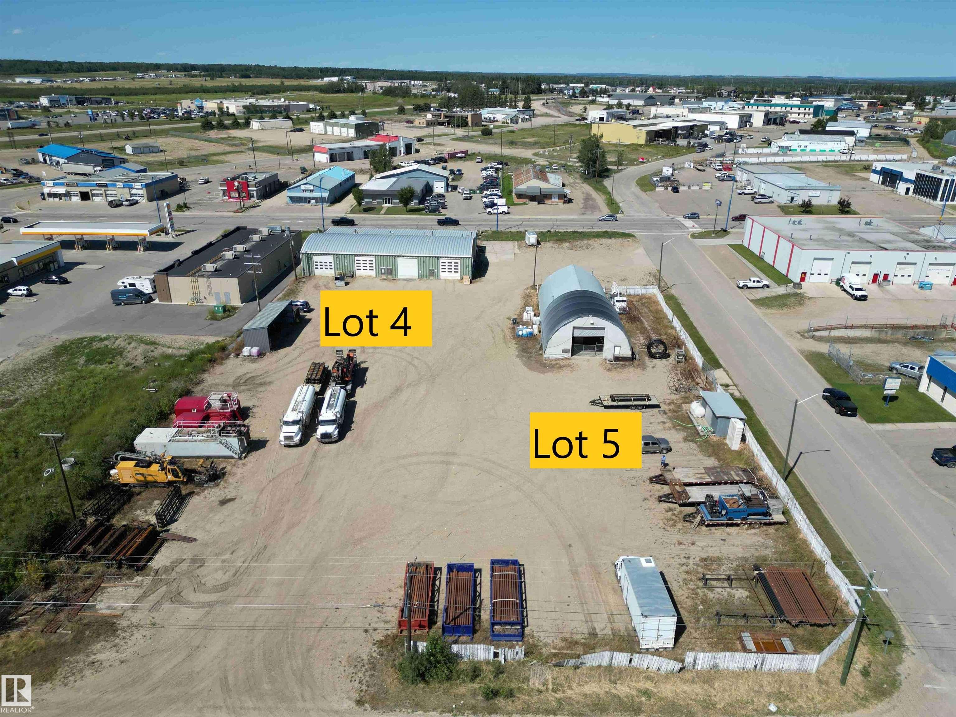 Located on 50 Ave, close to Hwy 22, this 1.1 acre lot comes with a 9000+ sq ft building with 3 offices and 3 bays. The office and shop configuration is: One large office bay (approx. 30' x 54') combined with a large shop bay (approx. 48' x 54') with two 14' x 14' overhead doors and a 10' x 50' mezzanine and two smaller office bays (approximately 30' x 28') each combined with their own shop bay (approx. 28' x 48') and 14' x 14' overhead door. Adjoining 1.1 acre lot to the east, Lot 5, is also available for sale. Zoned C-Gen (Commercial, General District).