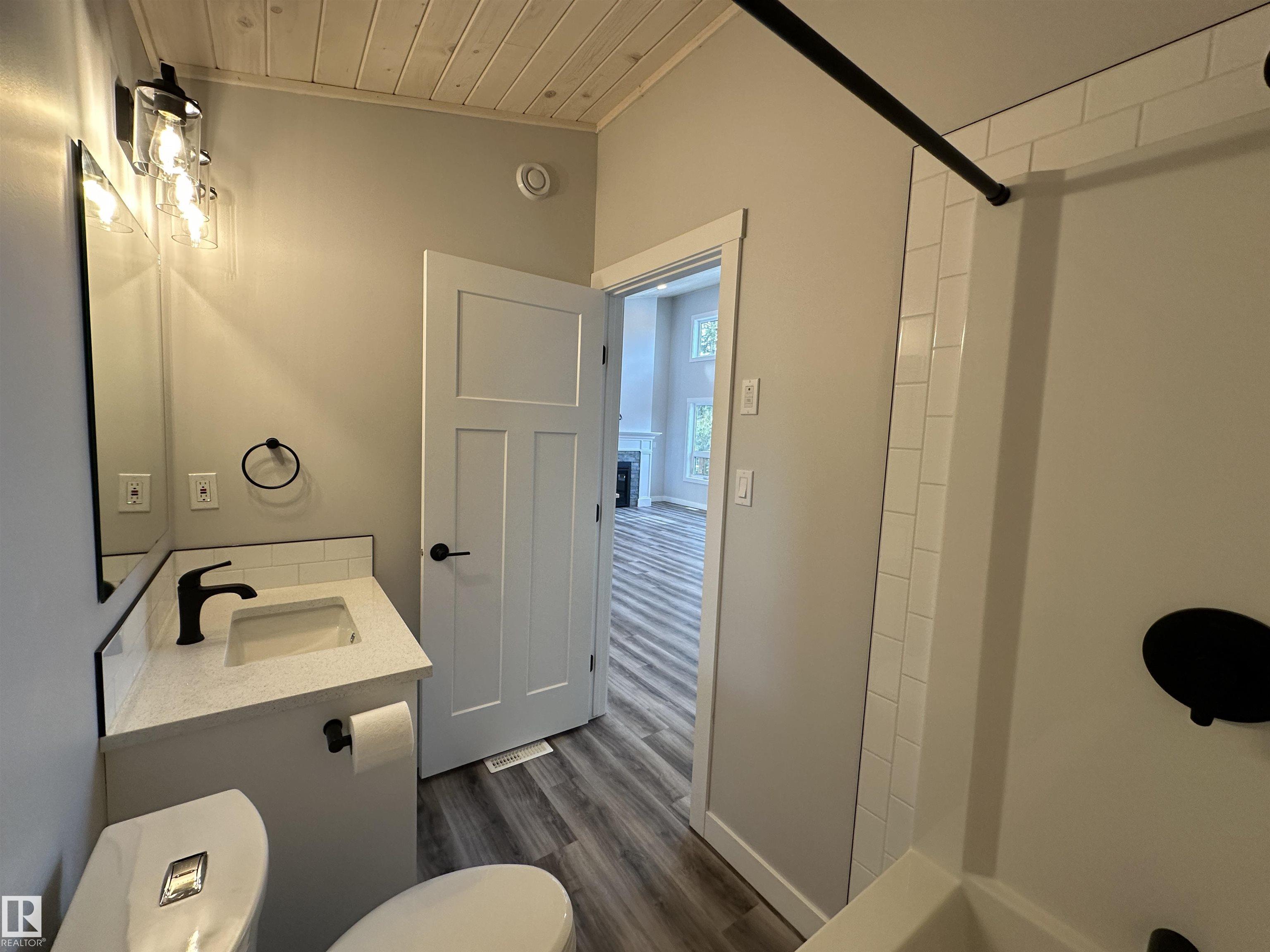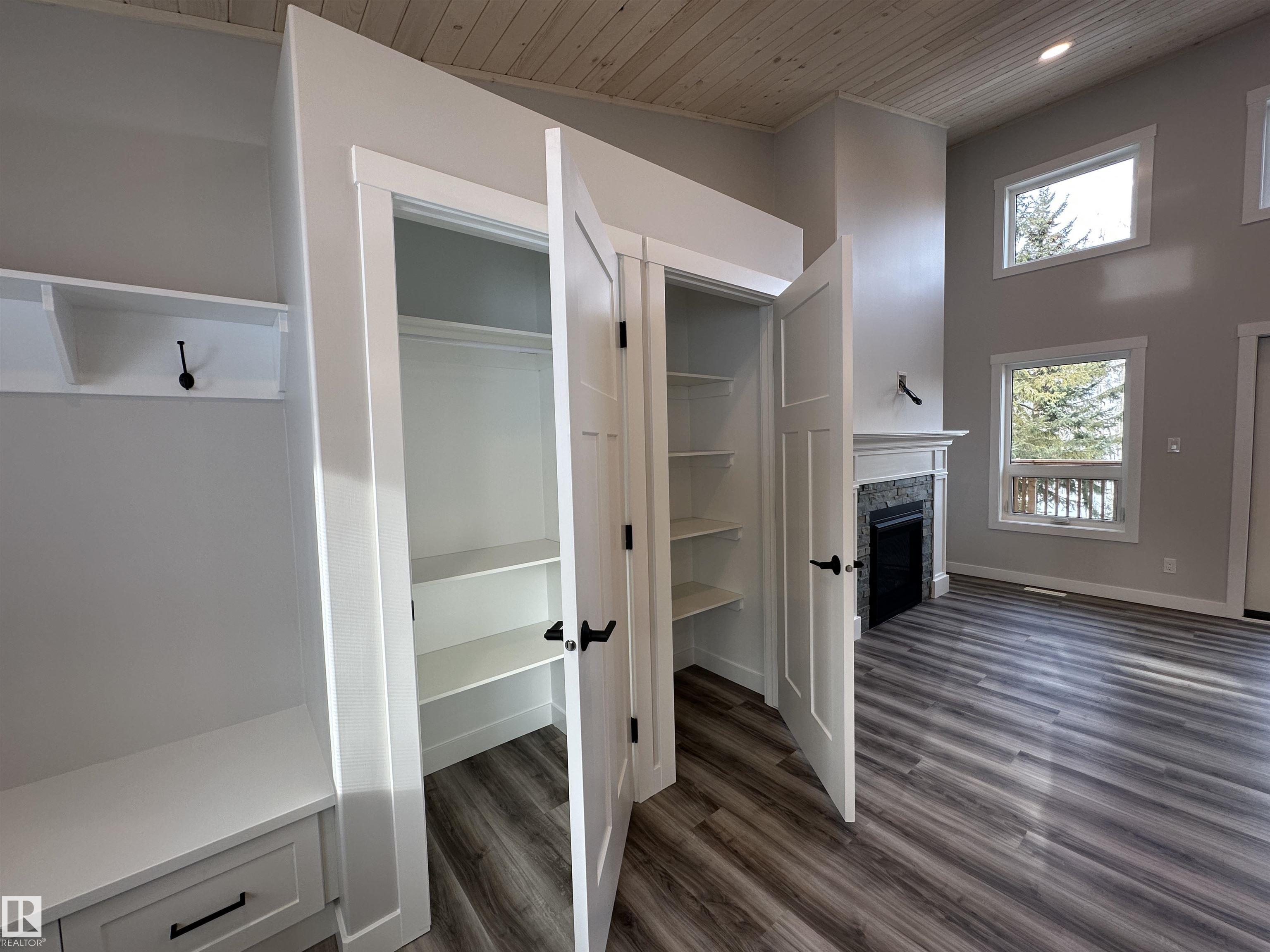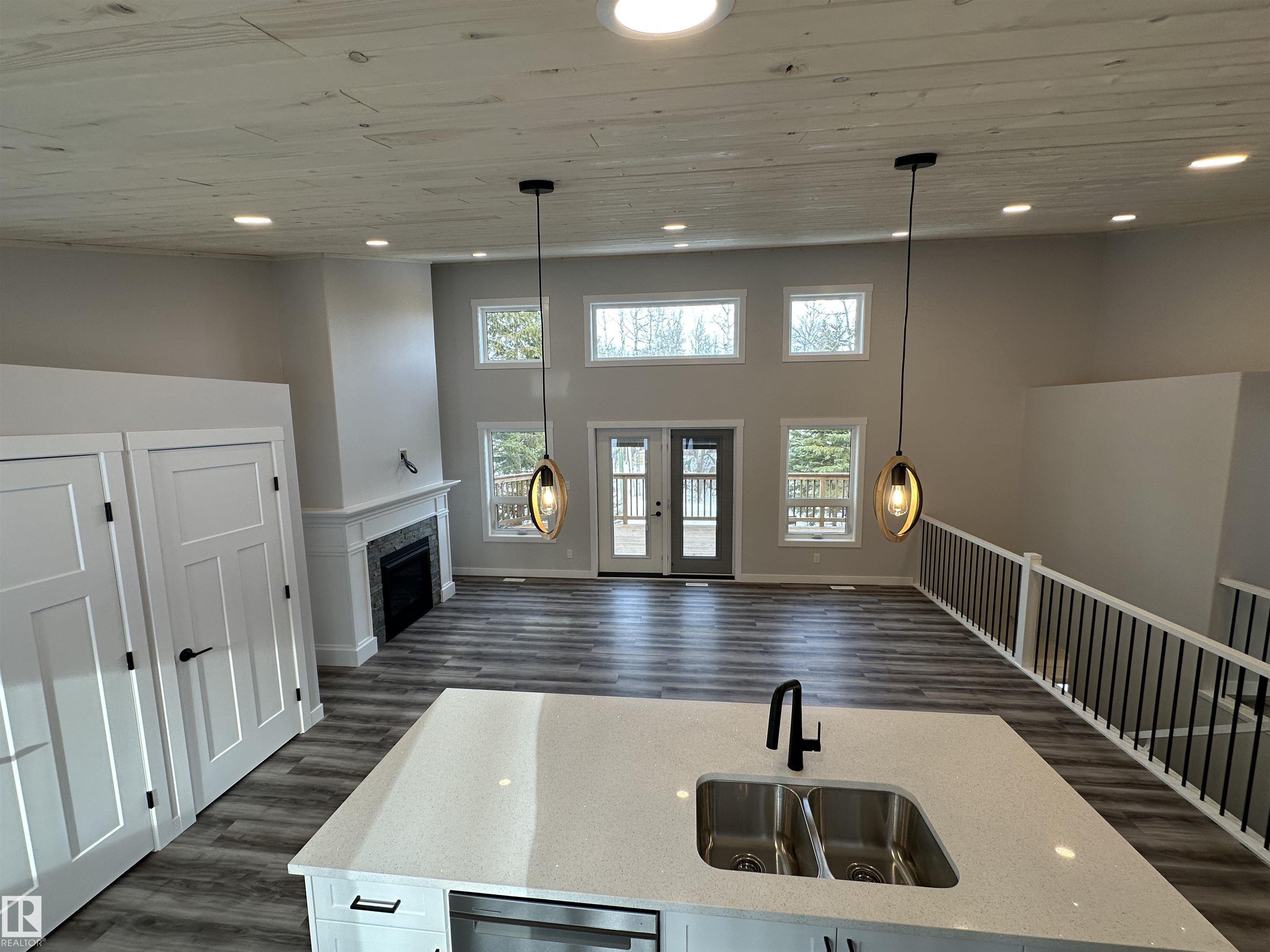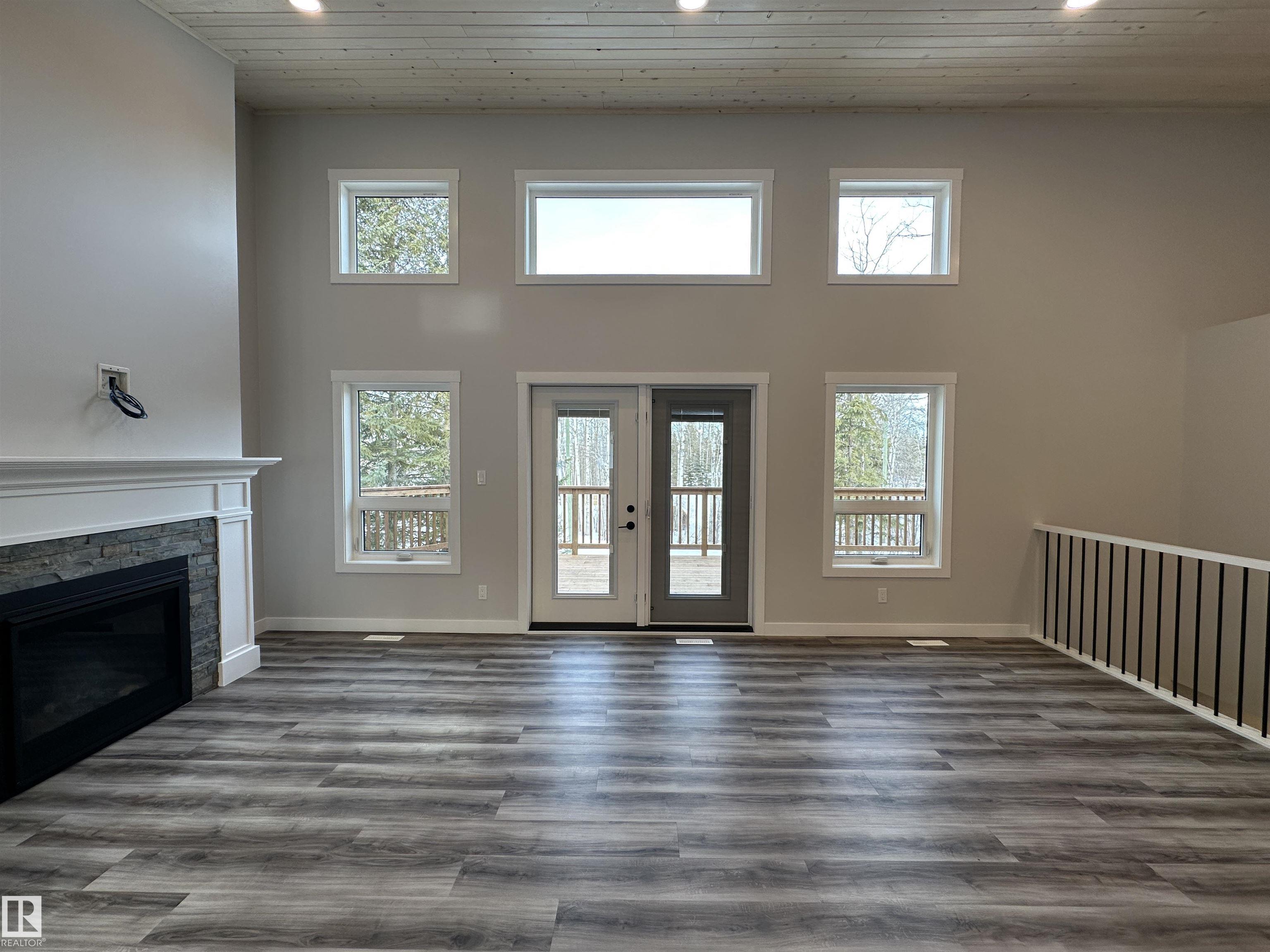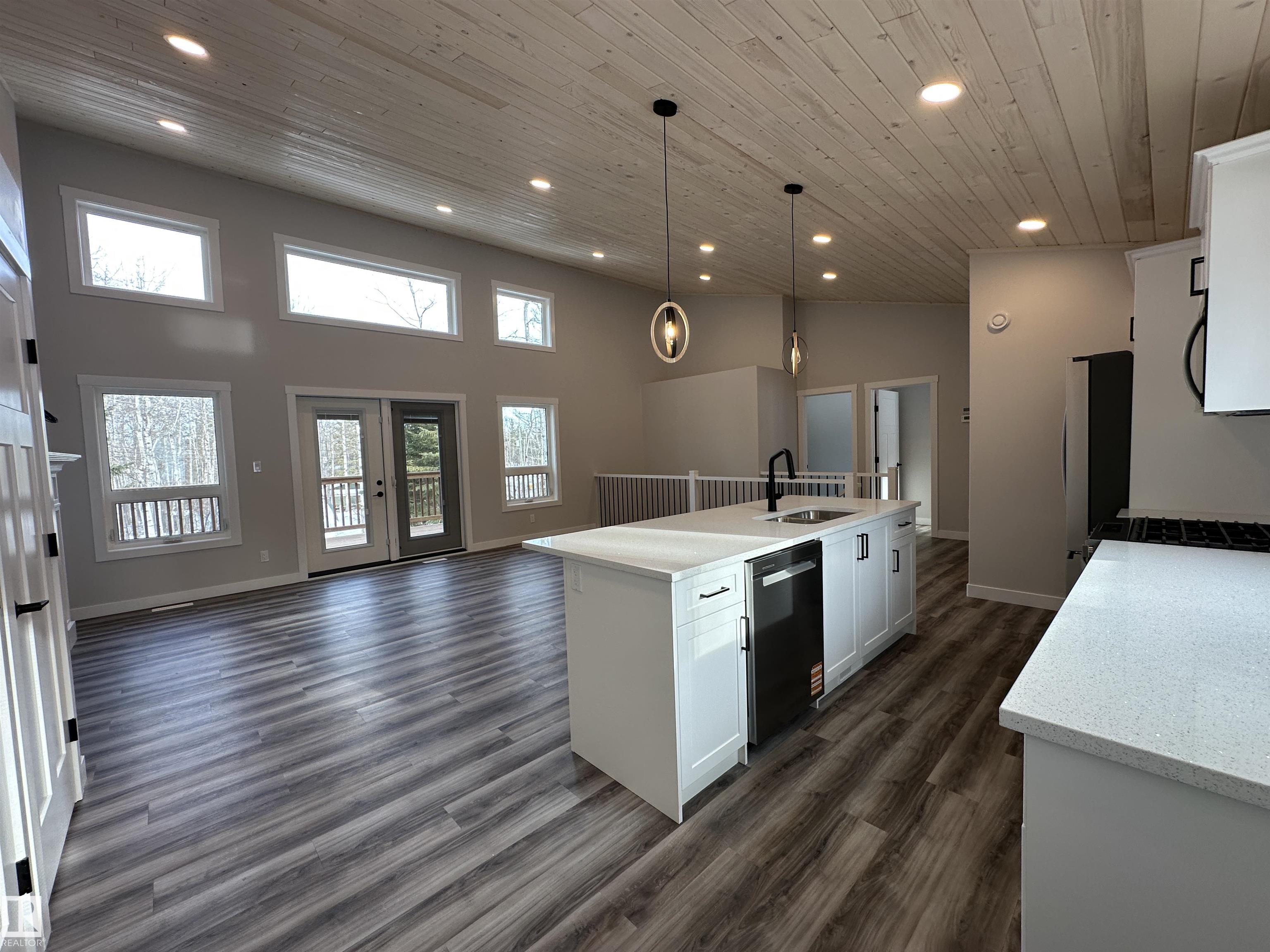 Under Construction and move in ready by Jan 31/26 ... Custom built 960 sqft raised bungalow with walkout basement garage. Wide open design, 14' vaulted pine tongue & groove ceiling, fireplace, luxury vinyl plank flooring, big windows w loads of natural light, 8' quartz topped peninsula island, shaker style kitchen cabinets, 4 piece stainless steel appliance package, walk-in pantry, 2 bedrooms up and 4 piece main bath. Stepping out of the vaulted great room, you're immersed in the peaceful sights and sounds of nature off your huge wrap around deck. The finished walkout basement has in-floor heat, 9' ceilings, primary suite with a 4 piece ensuite, laundry room, utility room and a 21 x 24 drywalled, taped and painted garage. 100 AMP power service, drilled well and a 2800 gallon septic holding tank. Tucked on a private, pie shaped lot surrounded by mature trees. Close to the shores of Isle Lake, the beach, boat launch and only 45 min west of Edm. Price includes GST, with rebate assigned back to the builder.