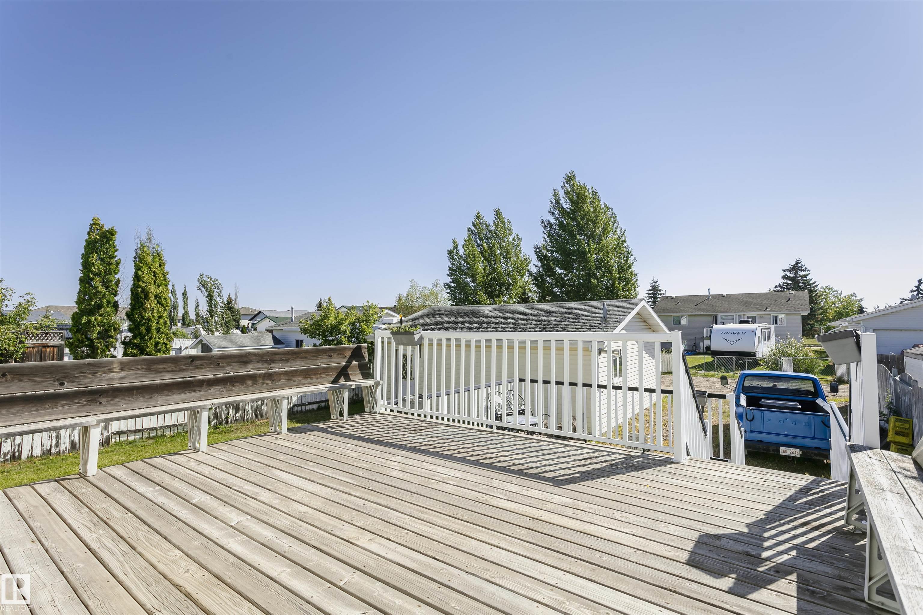 In Tofield you will find this beautiful bi-level home located close to the Hospital, 2 schools and a park right across the street. Amazing Location! The homes main floor has a kitchen/dining room, large living room, full bath and 3 bedrooms. The primary bedroom is spacious, complete with 4 piece ensuite bath with a large jetted soaker tub. The 2nd bedroom is comfortable size and the 3rd bedroom is very spacious. THE BASEMENT HAS JUST BEEN REFRESHED! 9' ceilings, a 2nd kitchen, bedroom, large rec room, laundry room and huge storage. This area is more than 1/3 of the basement that can be developed into more bedrooms, entertaining space, what ever your family desires. Outside is a massive 2 tiered deck that has been pre-wired for a Hot Tub. The big yard has lots of room to play or to relax by the fire pit. Completing this great home is a Heated Double Detached garage. Tofield is a charming community which has all the amenities you need including a Golf Course. Edmonton and Sherwood Park are a short commuter.