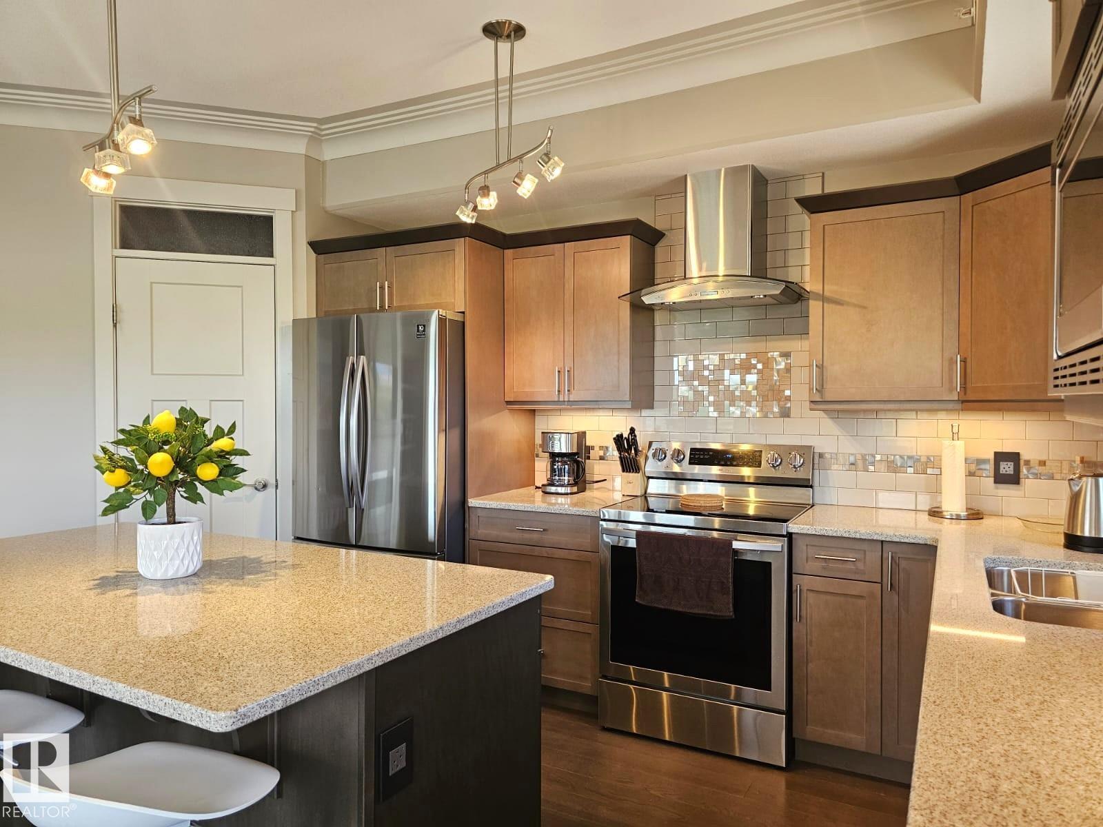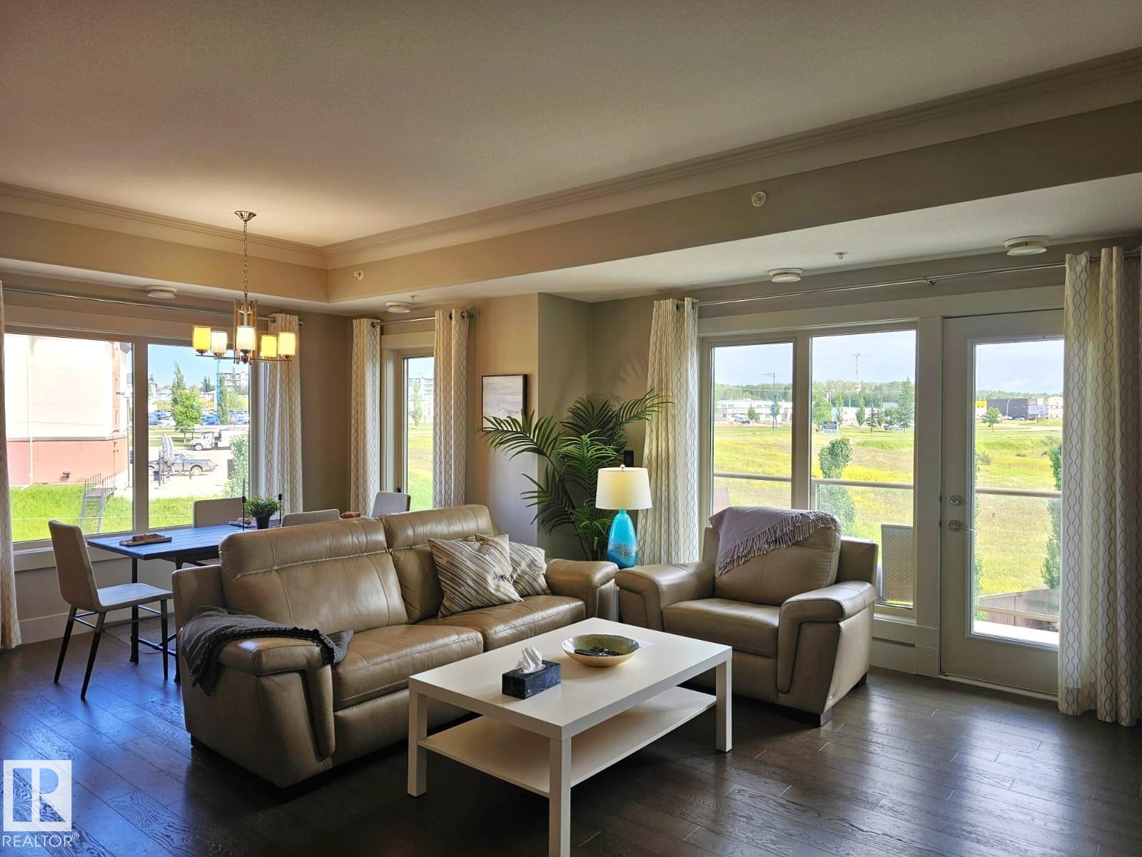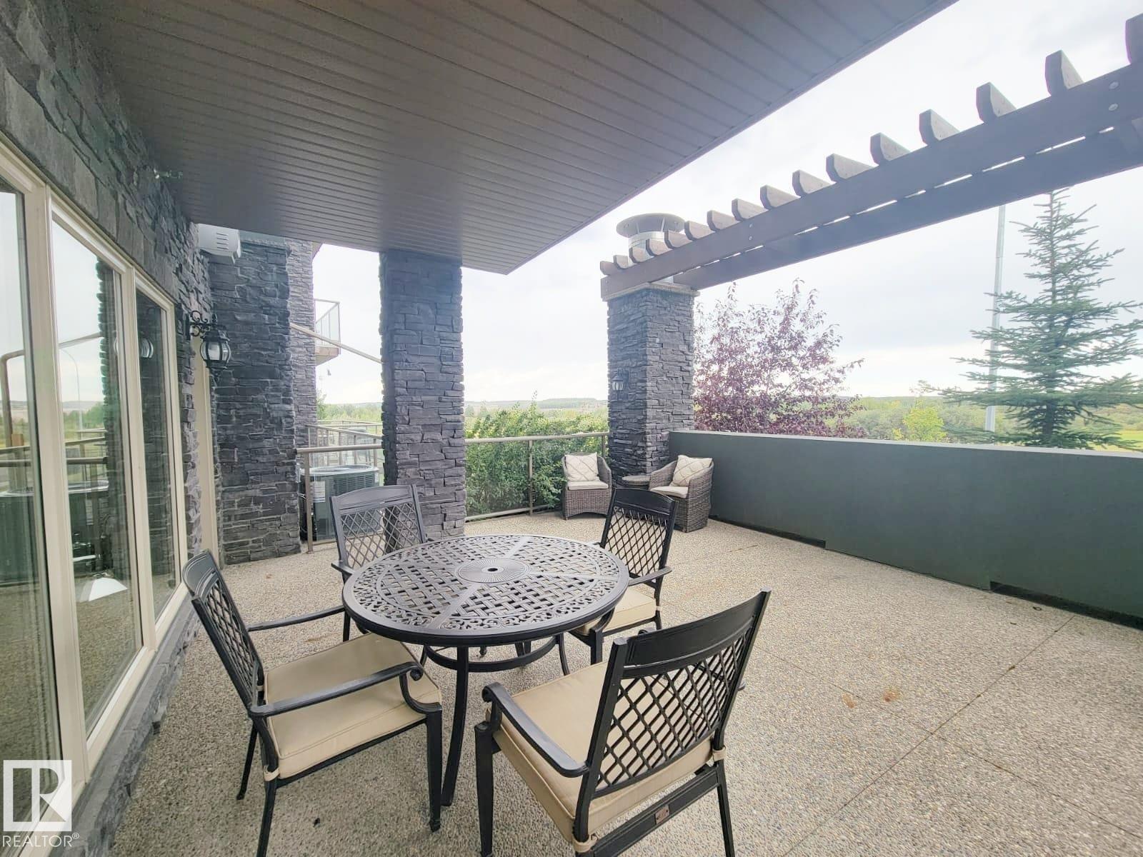 PENTHOUSE top floor unit in Ironwood Gates with southeast exposure and two spacious balconies! This large 3-bedroom, 1544 sq ft condo offers upscale living in one of Drayton Valley?s most desirable buildings. Featuring 9 ft ceilings, granite countertops, maple cabinetry, a cozy gas fireplace and crown mouldings, this home is both elegant and functional. The primary suite includes a functional ensuite with a frameless glass shower and dual body jets. Enjoy central A/C, triple-pane windows, and superior soundproofing throughout. Comes with 2 parking stalls (1 heated underground) and a 55 sq ft private storage unit. Building amenities include a fitness room, party/meeting space and outdoor terrace. Security is top-notch with gated entry and perimeter fencing. Condo fees include heat, water/sewer, reserve fund, exterior maintenance, and janitorial. A rare opportunity for space, comfort, and peace of mind in a well-managed building! EVERYTHING you see in this condo, stays!