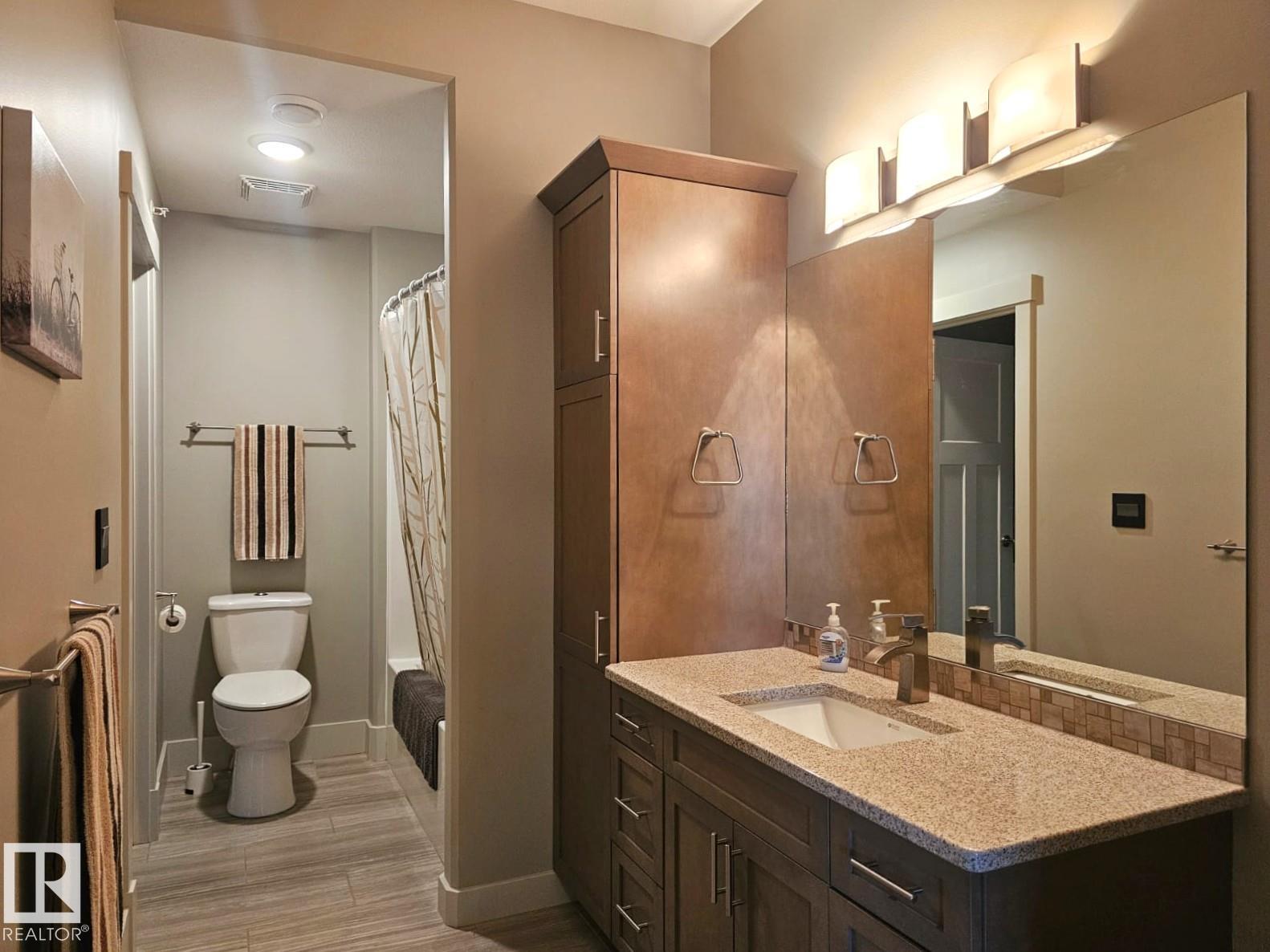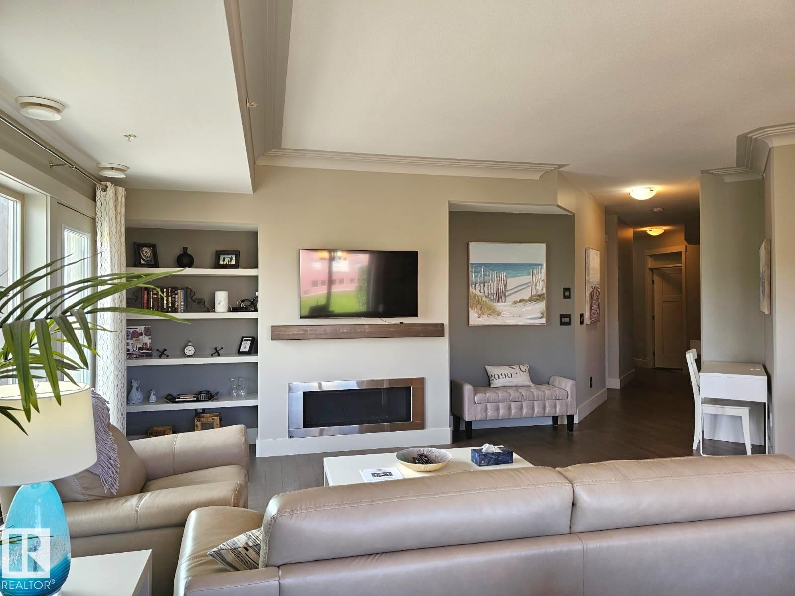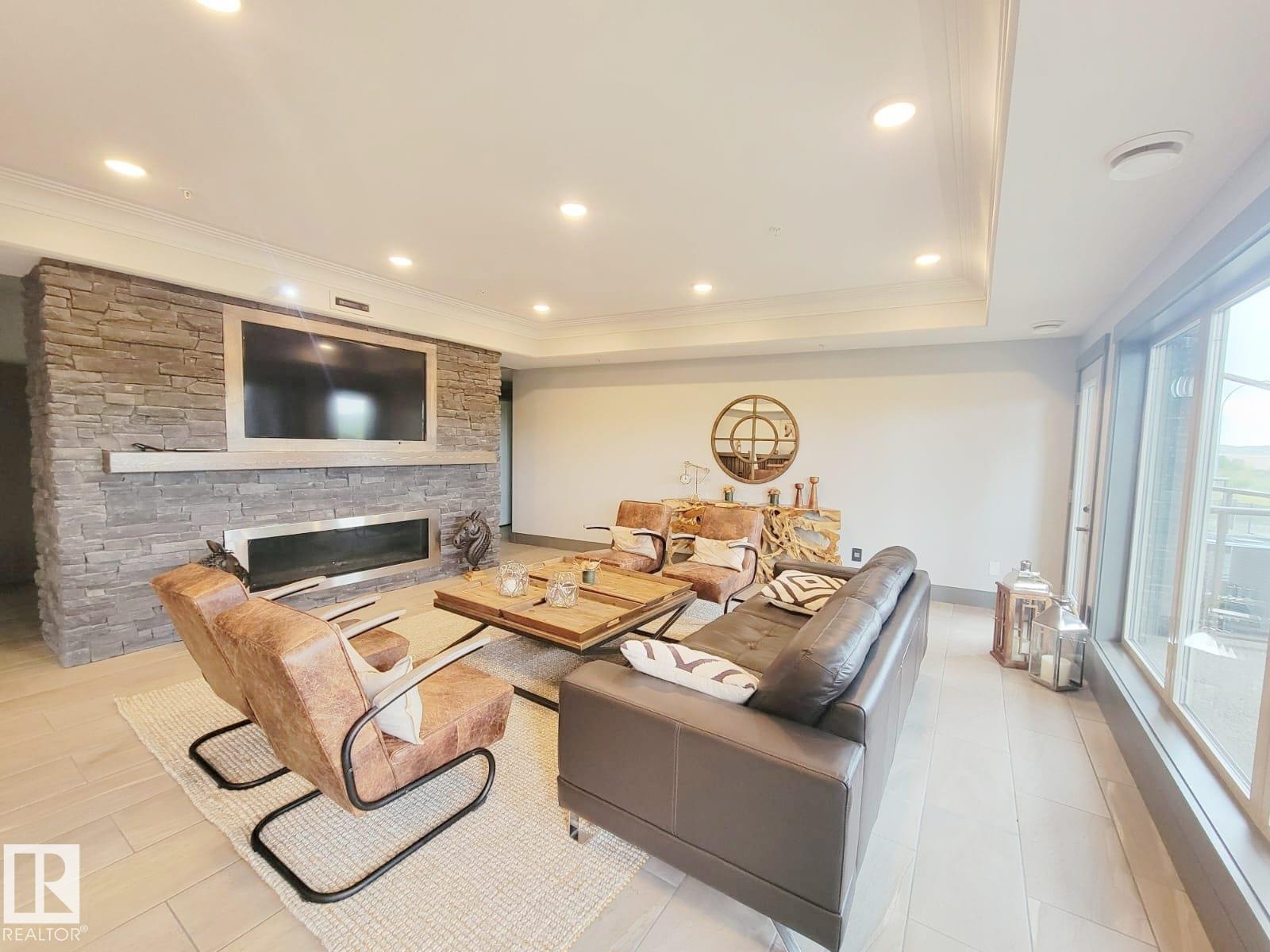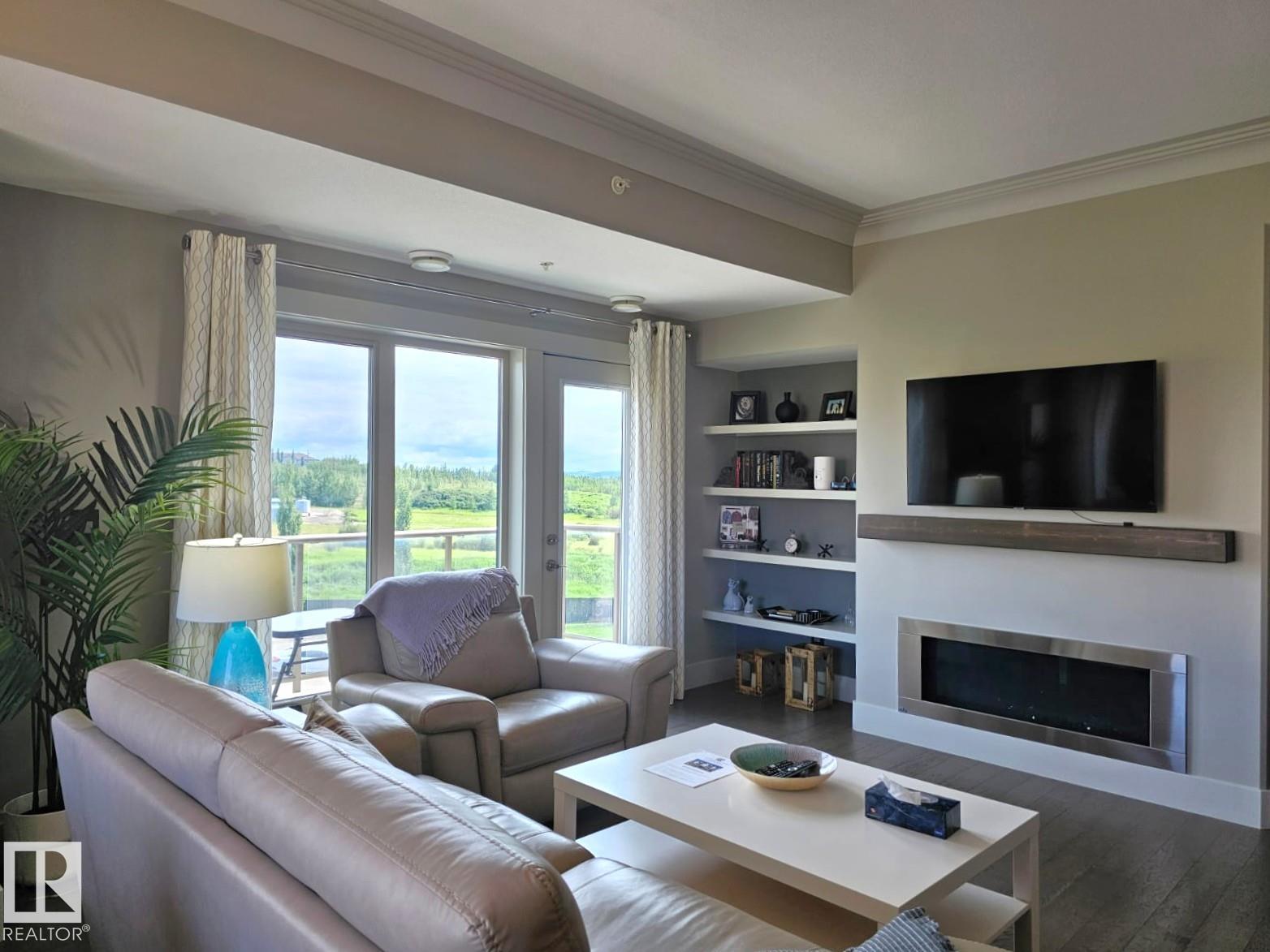 PENTHOUSE top floor unit in Ironwood Gates with southeast exposure and two spacious balconies! This large 3-bedroom, 1544 sq ft condo offers upscale living in one of Drayton Valley?s most desirable buildings. Featuring 9 ft ceilings, granite countertops, maple cabinetry, a cozy gas fireplace and crown mouldings, this home is both elegant and functional. The primary suite includes a functional ensuite with a frameless glass shower and dual body jets. Enjoy central A/C, triple-pane windows, and superior soundproofing throughout. Comes with 2 parking stalls (1 heated underground) and a 55 sq ft private storage unit. Building amenities include a fitness room, party/meeting space and outdoor terrace. Security is top-notch with gated entry and perimeter fencing. Condo fees include heat, water/sewer, reserve fund, exterior maintenance, and janitorial. A rare opportunity for space, comfort, and peace of mind in a well-managed building! EVERYTHING you see in this condo, stays!