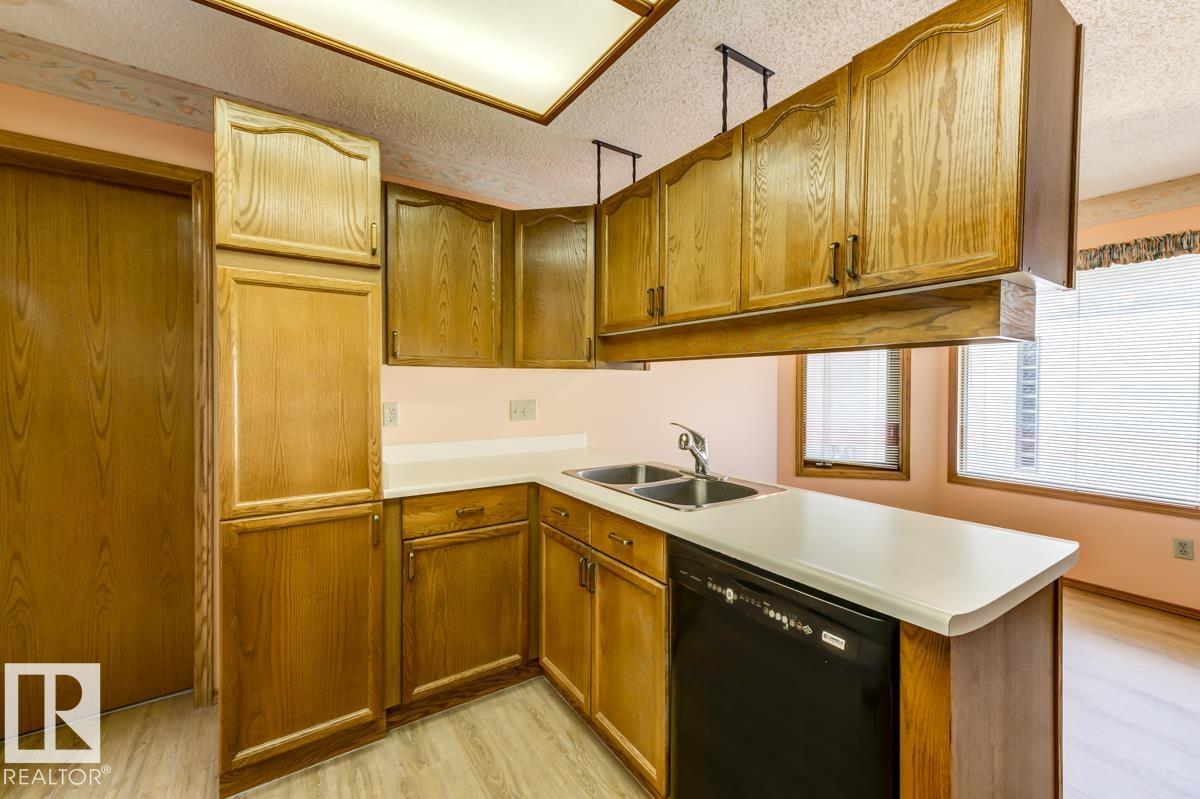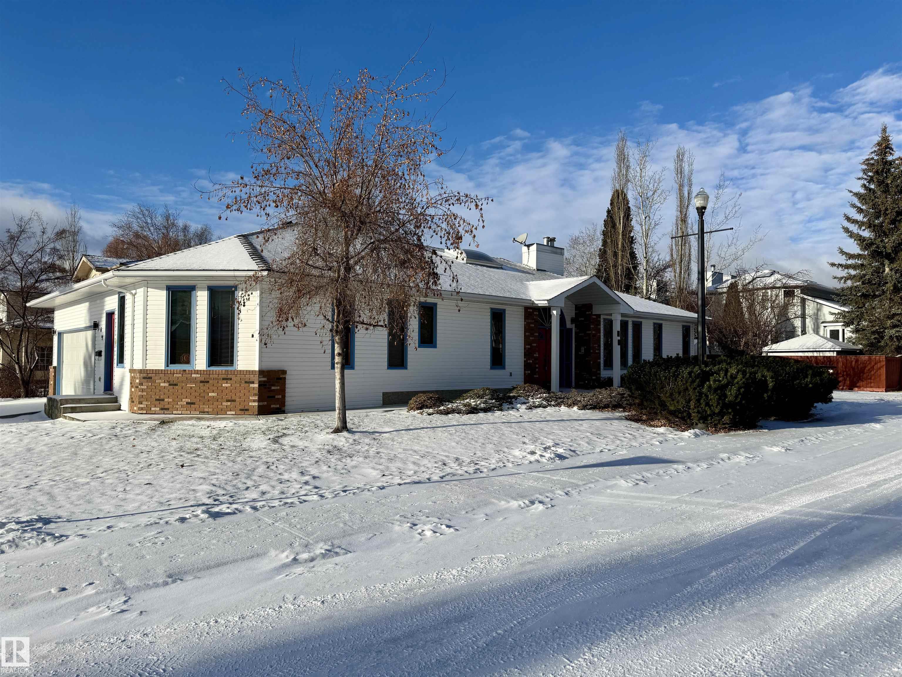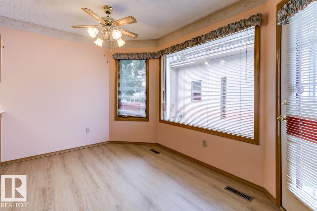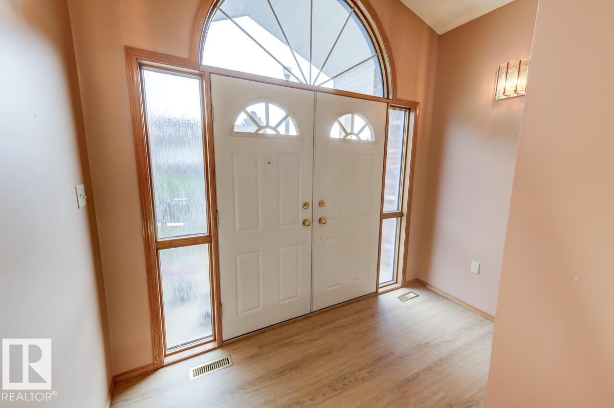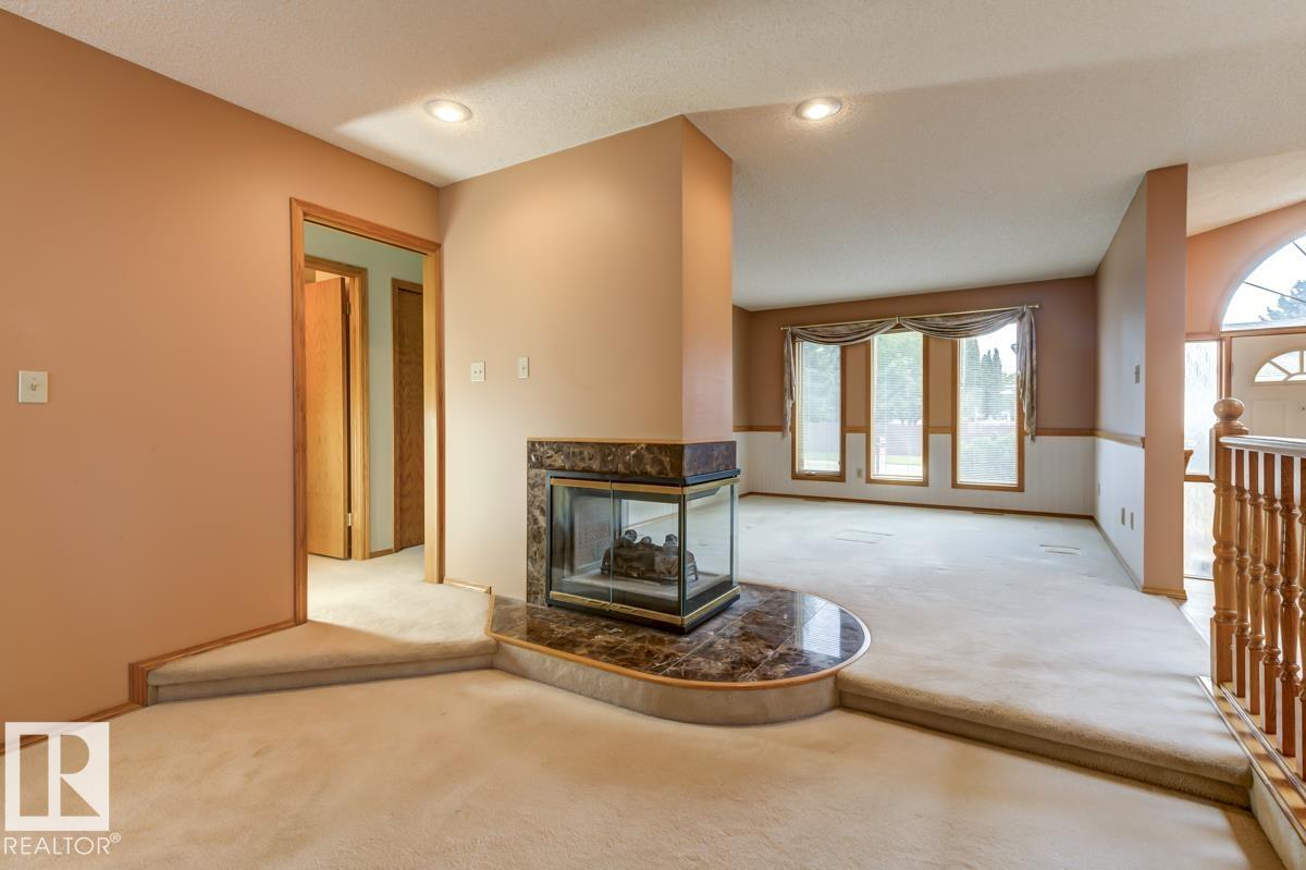 Welcome to this massive bungalow just steps from Nottingham Park, nestled in a quiet Sherwood Park cul-de-sac. Beautifully maintained by the original owner, this spacious home offers 2,200 sq ft on the main level, with 3 large bedrooms and 3 full bathrooms. The great room features both a living and family area anchored by a stunning 3-sided gas fireplace, perfect for entertaining. A skylight above the dining room fills the home with natural light, while the kitchen and breakfast nook have seamless access to the west-facing deck?ideal for outdoor dinners and evening relaxation. The main floor also includes a generous office with private exterior access, perfect for a home-based business or multi-generational living. The partly finished basement boasts a double rec room with a wet bar?ideal for a home gym, theatre, AND games room?plus an unfinished area for a workshop, storage, and mechanicals. With a double attached garage and a fully landscaped yard with mature trees and shrubs, this home is a rare find.