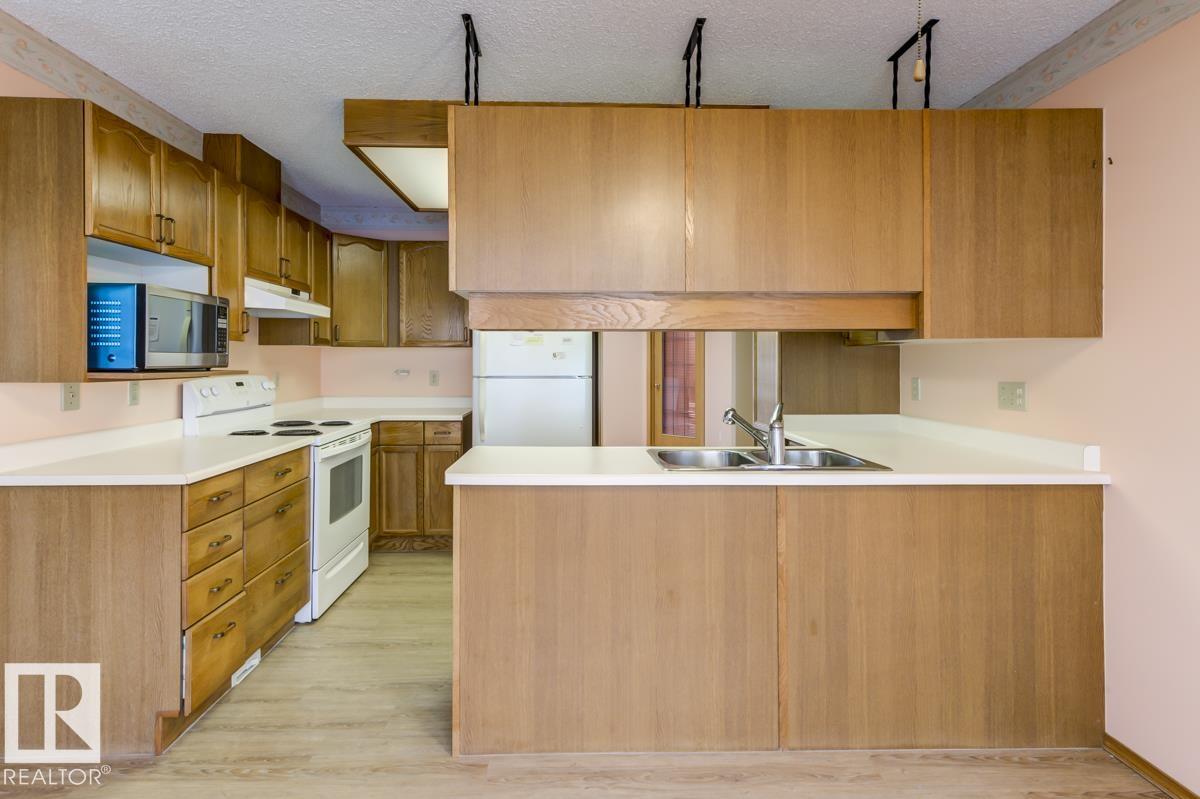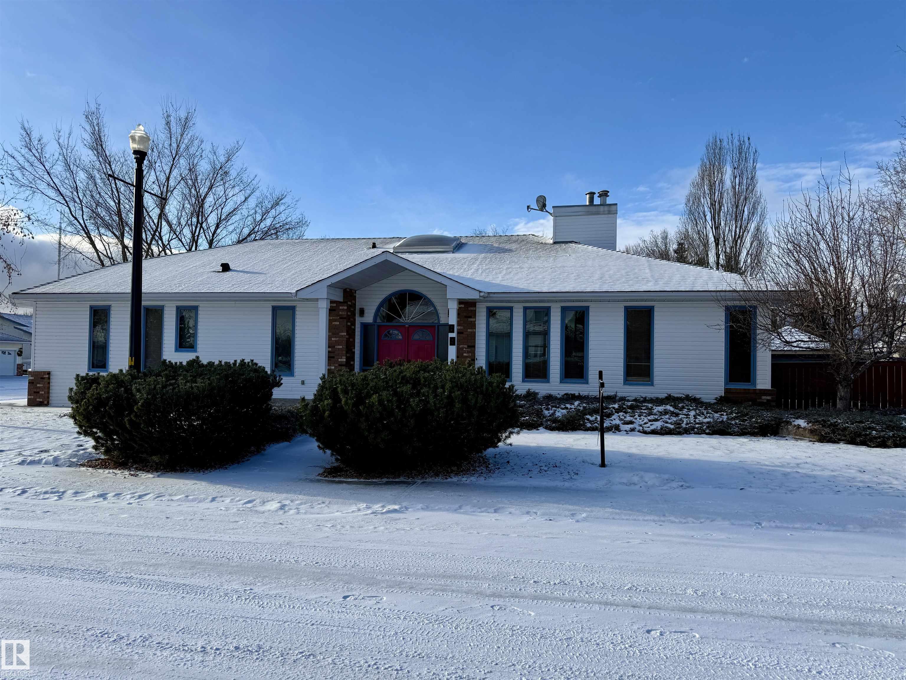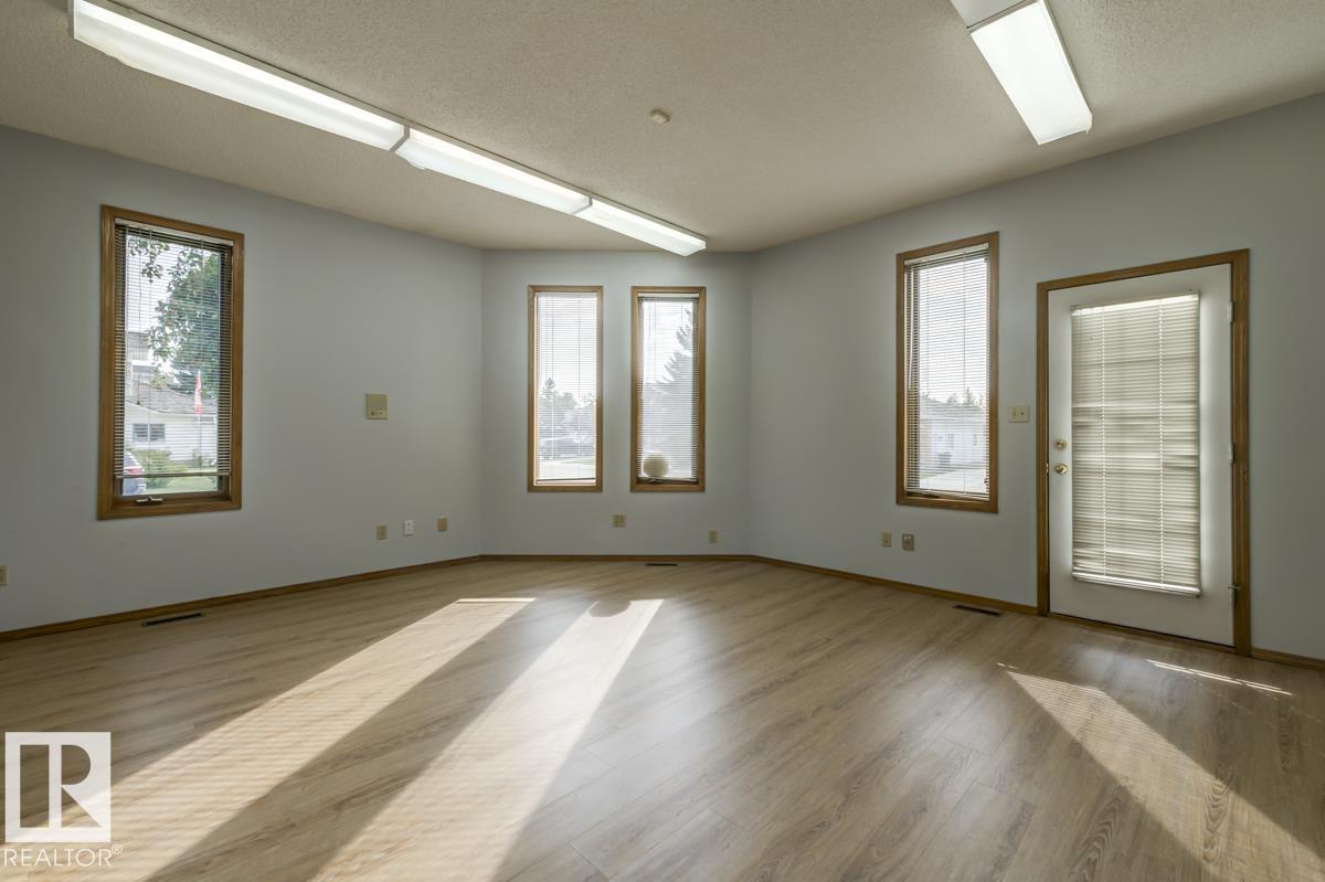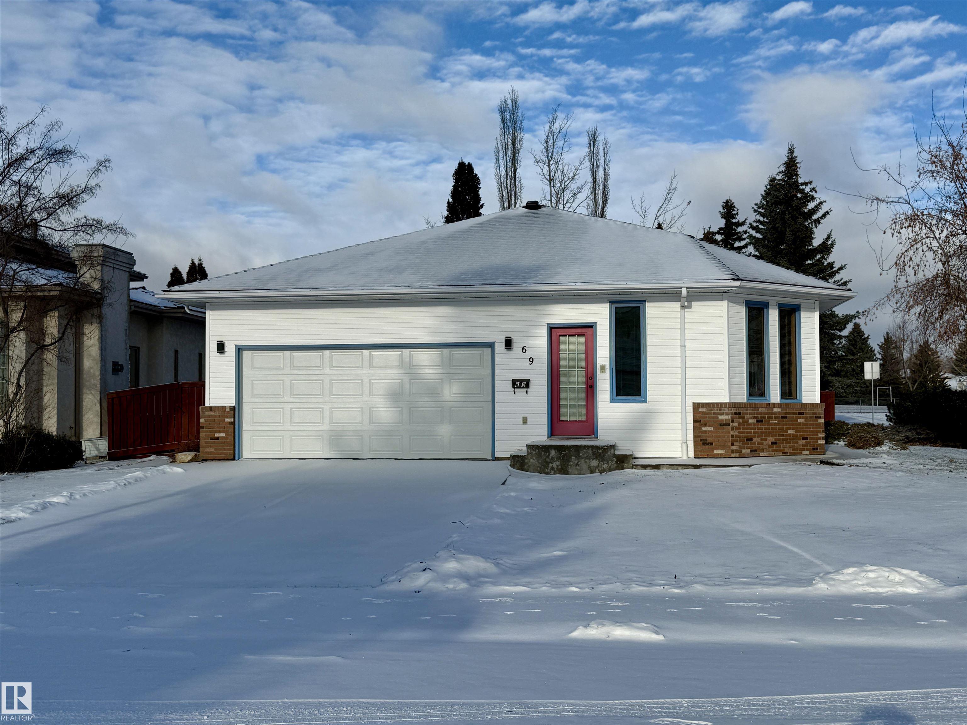 Welcome to this massive bungalow just steps from Nottingham Park, nestled in a quiet Sherwood Park cul-de-sac. Beautifully maintained by the original owner, this spacious home offers 2,200 sq ft on the main level, with 3 large bedrooms and 3 full bathrooms. The great room features both a living and family area anchored by a stunning 3-sided gas fireplace, perfect for entertaining. A skylight above the dining room fills the home with natural light, while the kitchen and breakfast nook have seamless access to the west-facing deck?ideal for outdoor dinners and evening relaxation. The main floor also includes a generous office with private exterior access, perfect for a home-based business or multi-generational living. The partly finished basement boasts a double rec room with a wet bar?ideal for a home gym, theatre, AND games room?plus an unfinished area for a workshop, storage, and mechanicals. With a double attached garage and a fully landscaped yard with mature trees and shrubs, this home is a rare find.