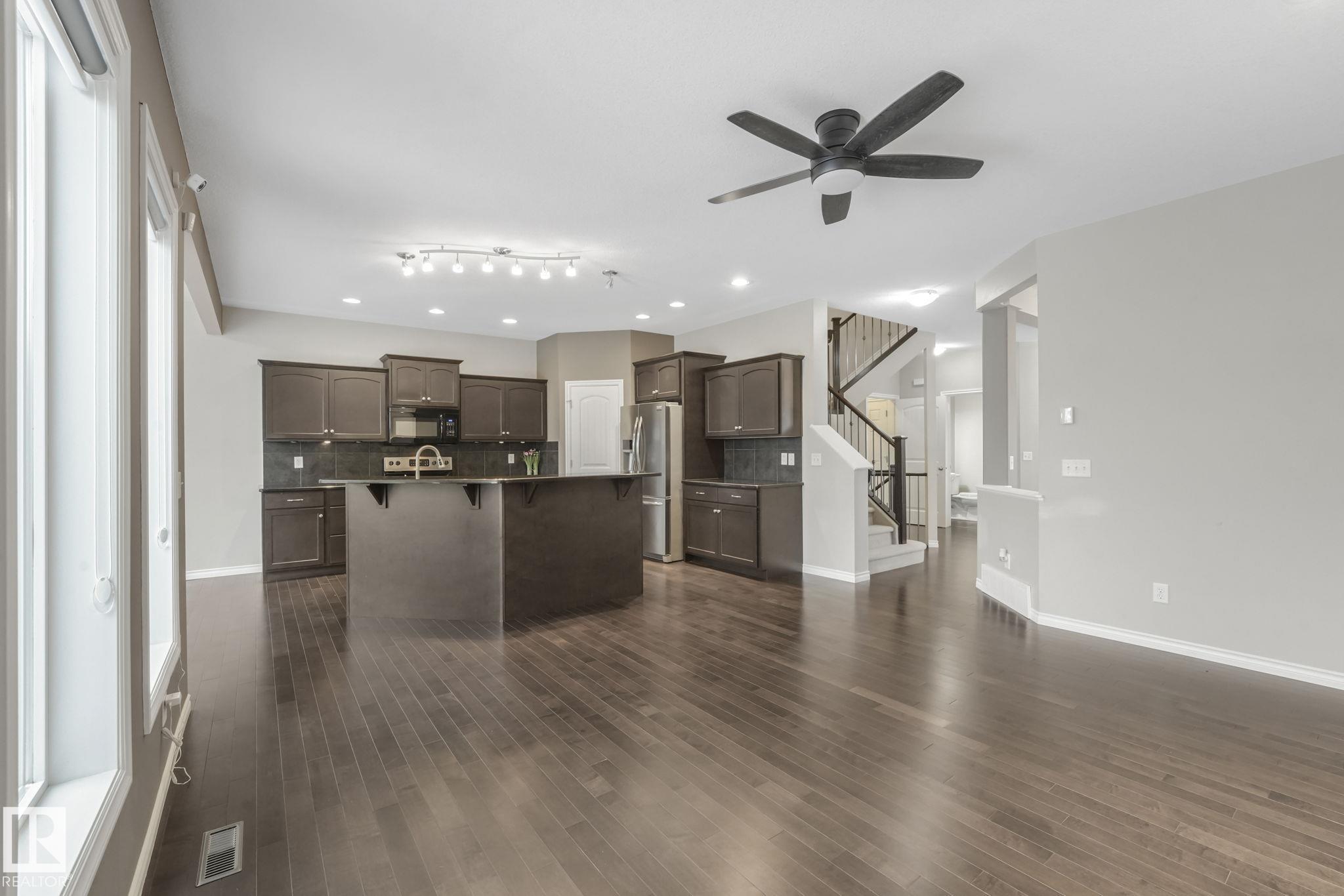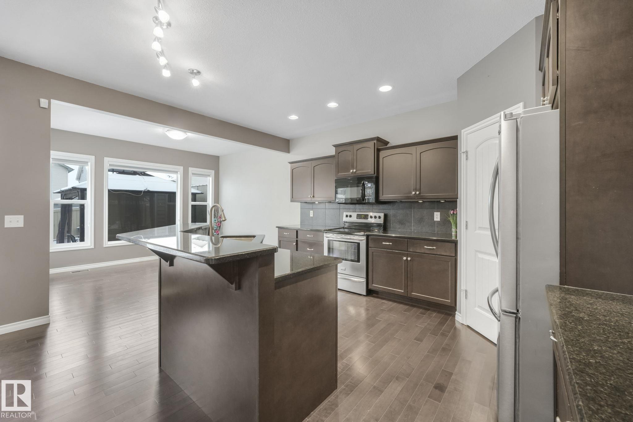 Lovingly maintained by the original owners, this bright corner lot 2-storey offers true move in comfort with no construction noise, dust, or waiting for landscaping. Enjoy a fully finished yard with a deck, two gazebos, fountains, and app-controlled Gemstone Lighting, perfect for relaxing or entertaining. Inside, hardwood floors, custom blinds, and sun-filled spaces create a welcoming feel. The main floor features a large foyer, flex room (ideal as a dining, playroom, or music room), 2-piece bath, and a walk-through pantry connecting the mudroom to a spacious kitchen with granite counters and island seating. The dining area, surrounded by windows, opens to the yard for effortless BBQs and family dinners. Cozy up by the gas fireplace with its designer wood mantle, or retreat upstairs to the bonus room, laundry, and three bedrooms including a generous primary suite with walk-in closet and 5-piece ensuite. The basement is ready for future development with 2 windows and rough-in plumbing. Central AC, Furnace