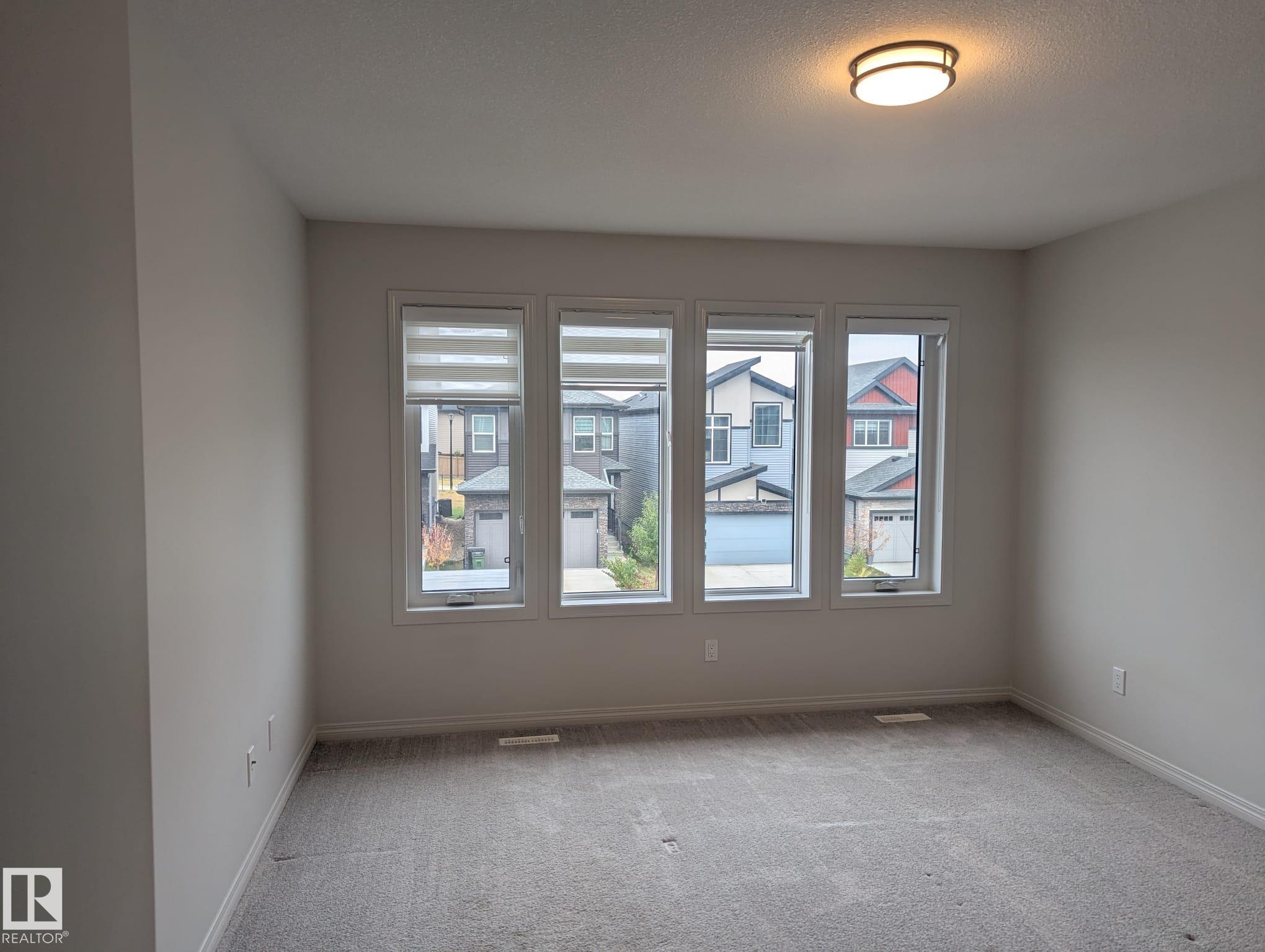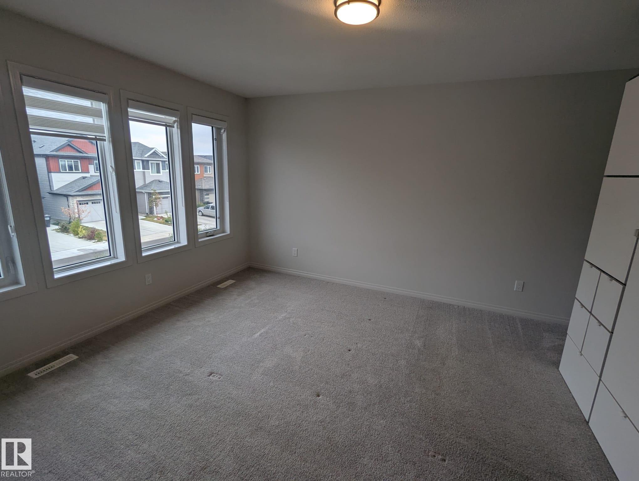 This beautifully designed home blends style and functionality, offering 3 spacious bedrooms, 2.5 bathrooms, and a main-floor den?perfect for families or professionals. A grand spiral staircase welcomes you into the open-concept layout with 9' ceilings, luxury vinyl flooring, and oversized windows that fill the space with natural light. The gourmet kitchen features quartz countertops, 42" cabinets, a walk-in pantry, and ample storage, flowing seamlessly into the dining and living areas for easy entertaining. Upstairs, generous bedrooms provide comfort and privacy. Conveniently located near Calgary Trail and Gateway Boulevard, this home offers quick access to South Common Shopping Centre, Edmonton International Airport, and the Premium Outlet Collection. Surrounded by walking trails, green spaces, and scenic water features, the community balances tranquility with accessibility. Utilities not included. No pets allowed.
