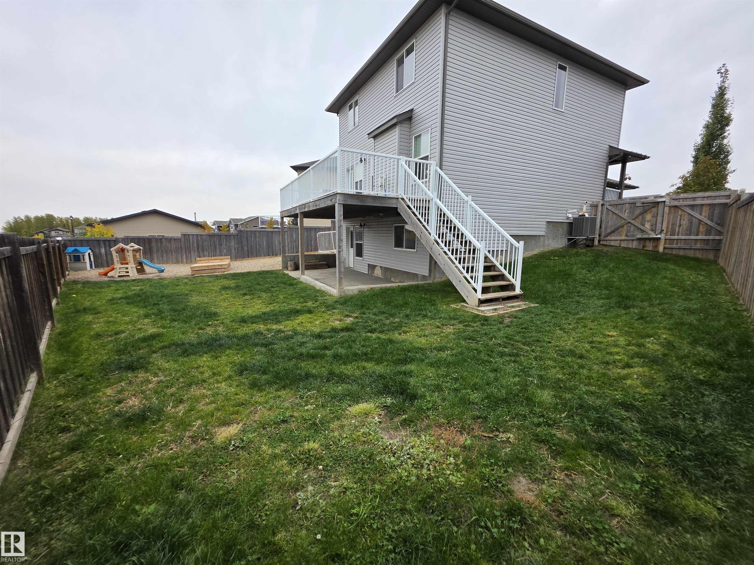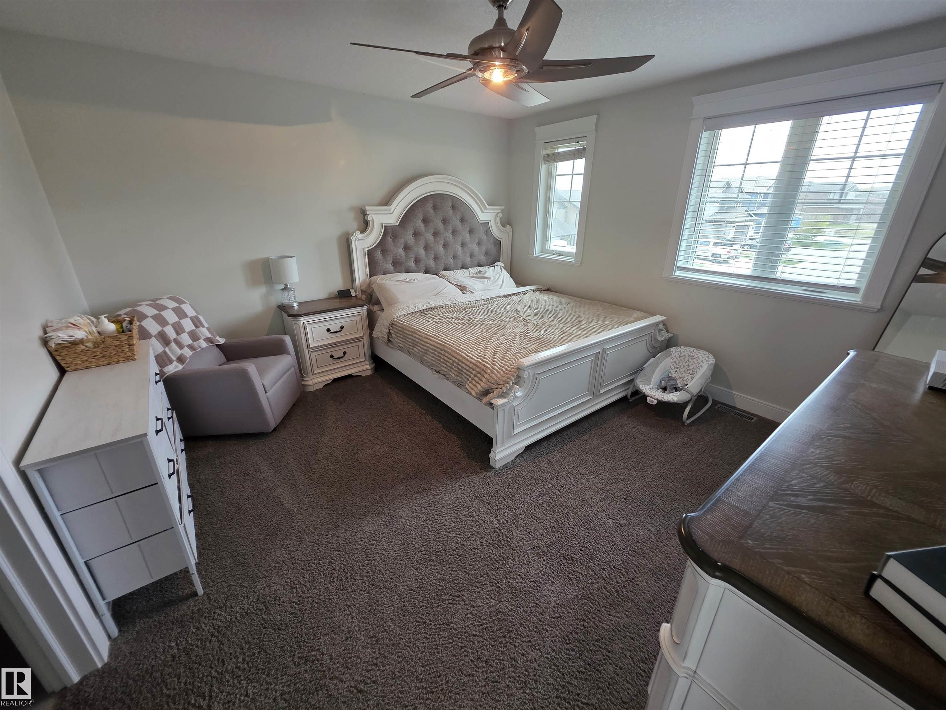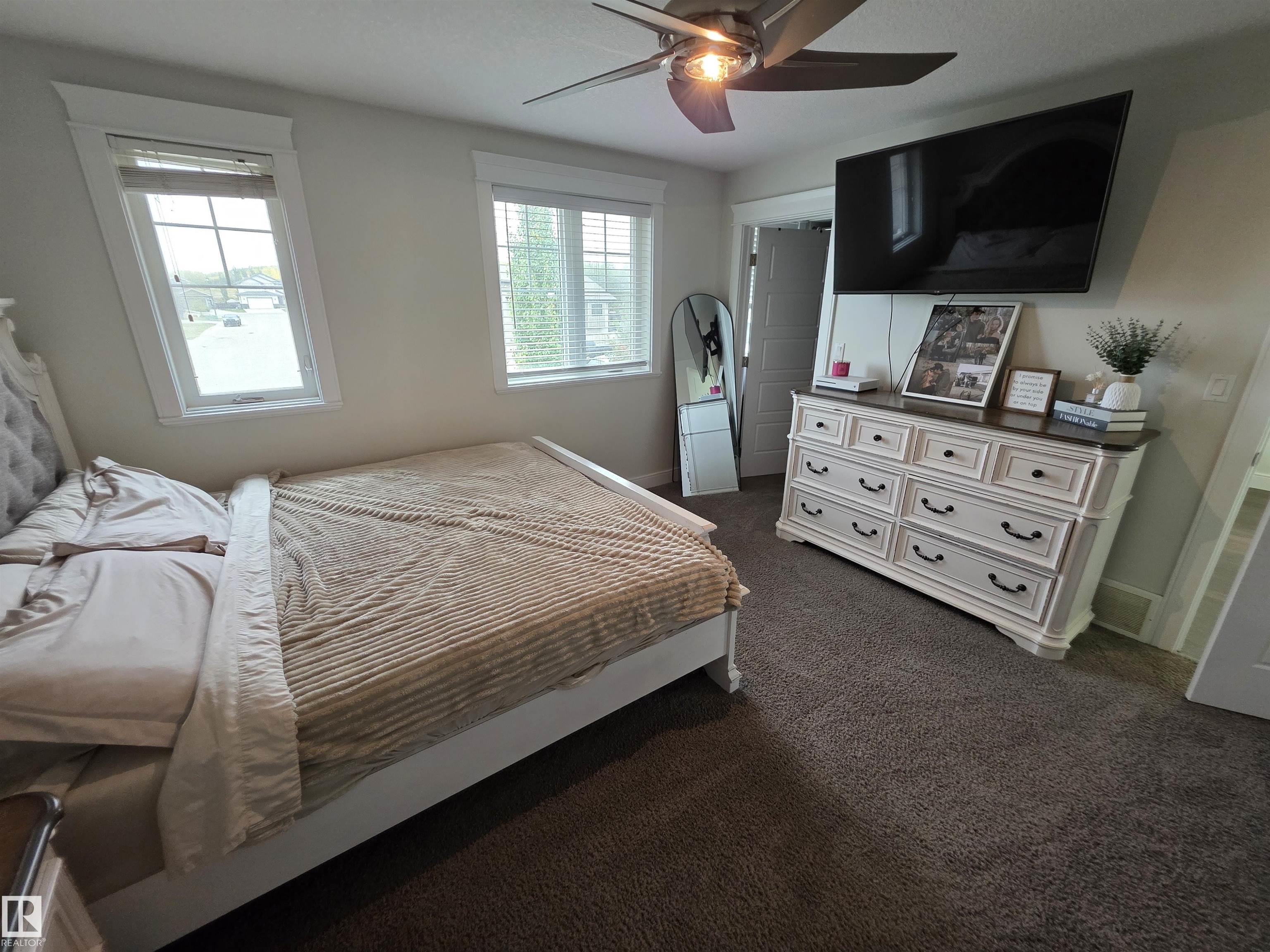 Welcome to this stunning 4-bedroom, 4-bath home in the sought-after community of Meraw Estates. The open-concept main floor features a modern kitchen with stainless steel appliances, a convenient walk-through pantry, and a bright dining area that opens onto a massive deck complete with a natural gas BBQ hookup. Upstairs offers three large sized bedrooms, including a spacious primary suite, plus the convenience of upstairs laundry and a versatile flex room that would be perfect as an office. The fully finished walkout basement, warmed with in-floor heating, also includes a comfortable fourth bedroom, a full bath, and plenty of space to entertain family or guests. Added touches such as built-in ceiling storage in the double attached garage, a high-efficiency furnace, hot water tank, and whole-home A/C ensure comfort and practicality at every turn. With its premium features, functional layout, and exceptional location, this home is ready to impress.
