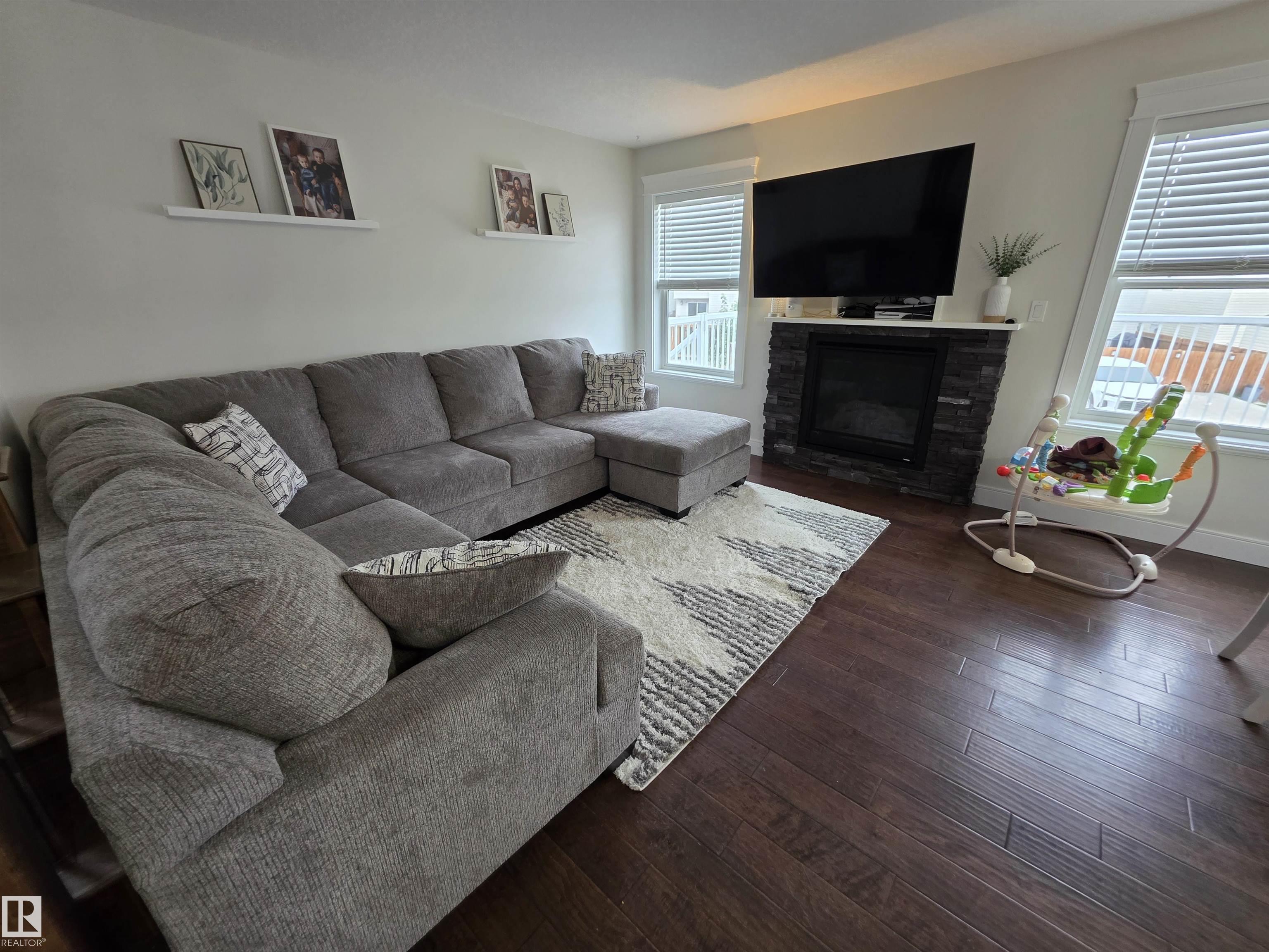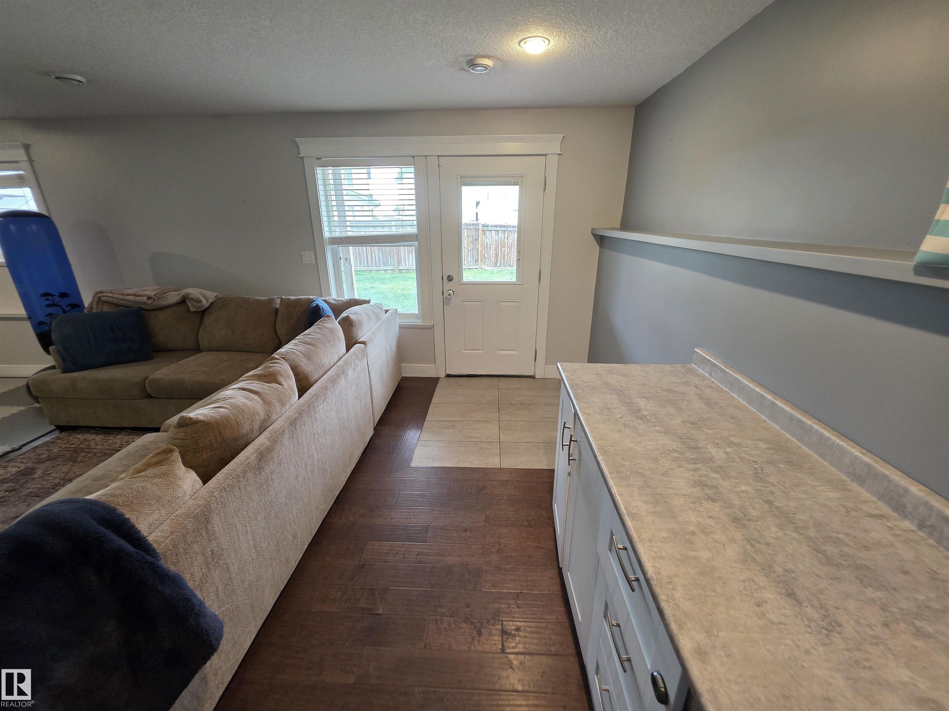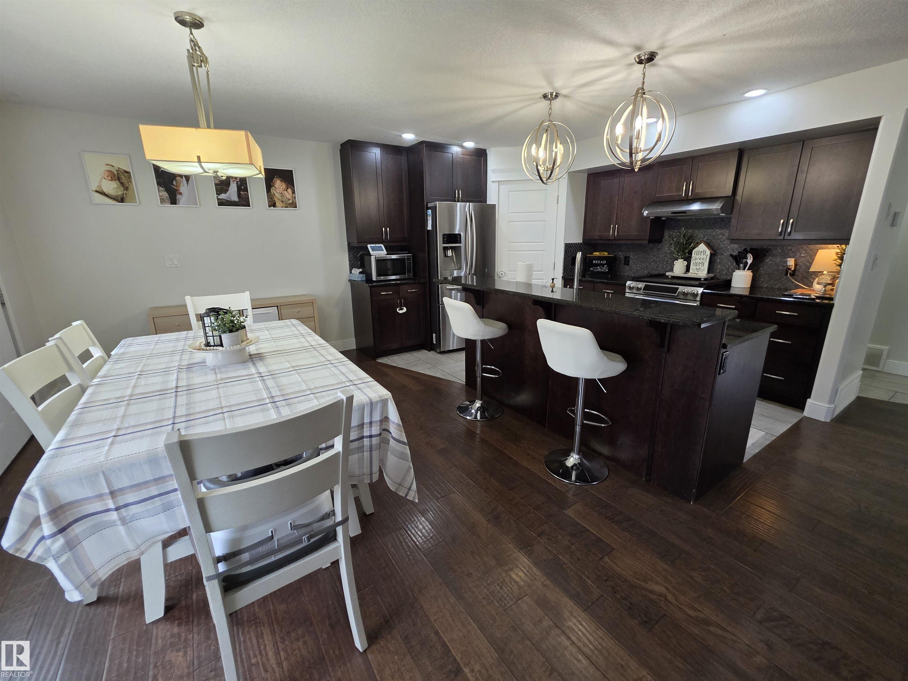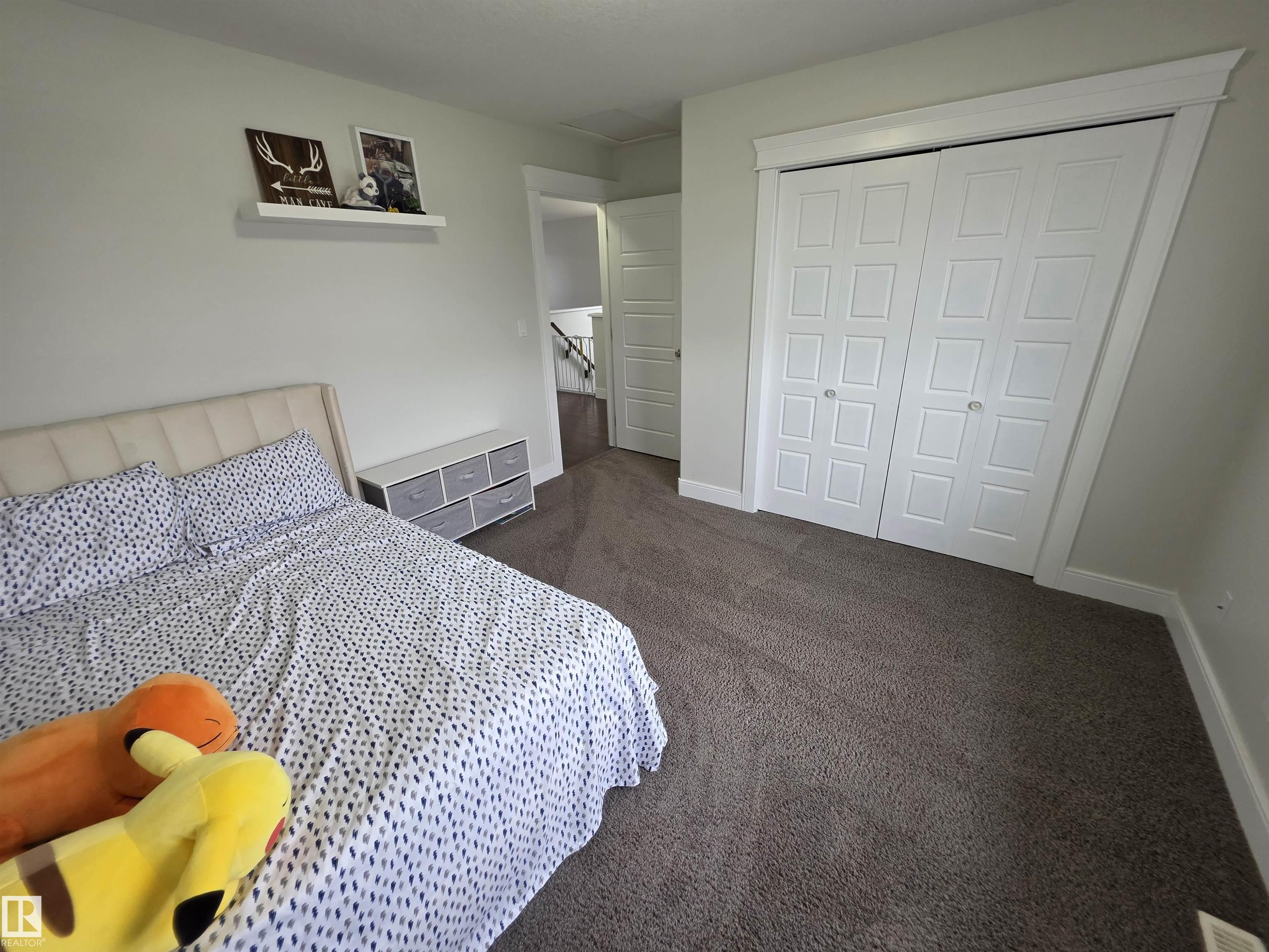Welcome to this stunning 4-bedroom, 4-bath home in the sought-after community of Meraw Estates. The open-concept main floor features a modern kitchen with stainless steel appliances, a convenient walk-through pantry, and a bright dining area that opens onto a massive deck complete with a natural gas BBQ hookup. Upstairs offers three large sized bedrooms, including a spacious primary suite, plus the convenience of upstairs laundry and a versatile flex room that would be perfect as an office. The fully finished walkout basement, warmed with in-floor heating, also includes a comfortable fourth bedroom, a full bath, and plenty of space to entertain family or guests. Added touches such as built-in ceiling storage in the double attached garage, a high-efficiency furnace, hot water tank, and whole-home A/C ensure comfort and practicality at every turn. With its premium features, functional layout, and exceptional location, this home is ready to impress.