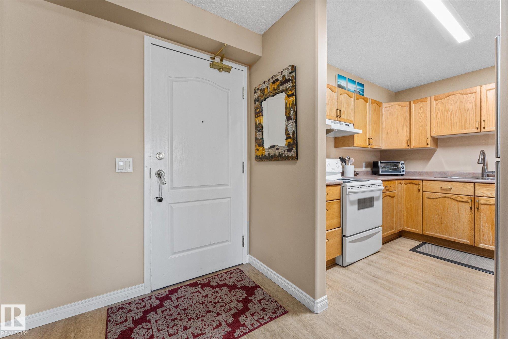 Experience comfortable, carefree living in this bright and well-kept 55+ condo in the Kingswood neighbourhood. Just minutes from the Servus Recreation Centre, scenic trails, and easy Anthony Henday access. The open-concept floor plan features vinyl plank flooring throughout, a spacious kitchen with eating bar, inviting dining area, and a bright living room with access to a private balcony w/ natural gas hookup. The large primary suite fits a king bed and is steps from the full ensuite with an oversized 6' soaker tub. You?ll also find a versatile den/office area, in-suite laundry, and the heated underground parking with storage is conveniently located near the elevator. Entire unit is outfitted to be wheel chair accessible. Residents enjoy many amenities including a party room, games area, library, and guest suite for visitors. Condo fees cover nearly everything but electricty, this is an ideal choice for those seeking comfort, convenience, and community in one of St. Albert?s most sought-after locations.